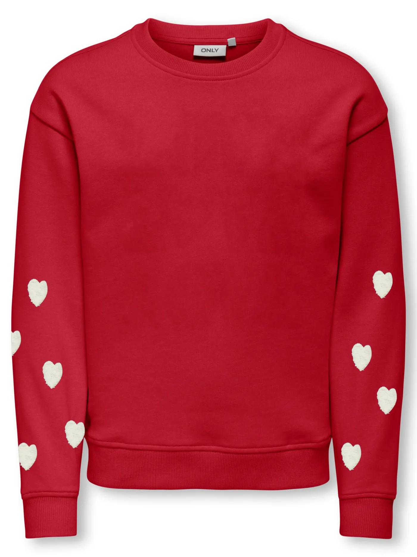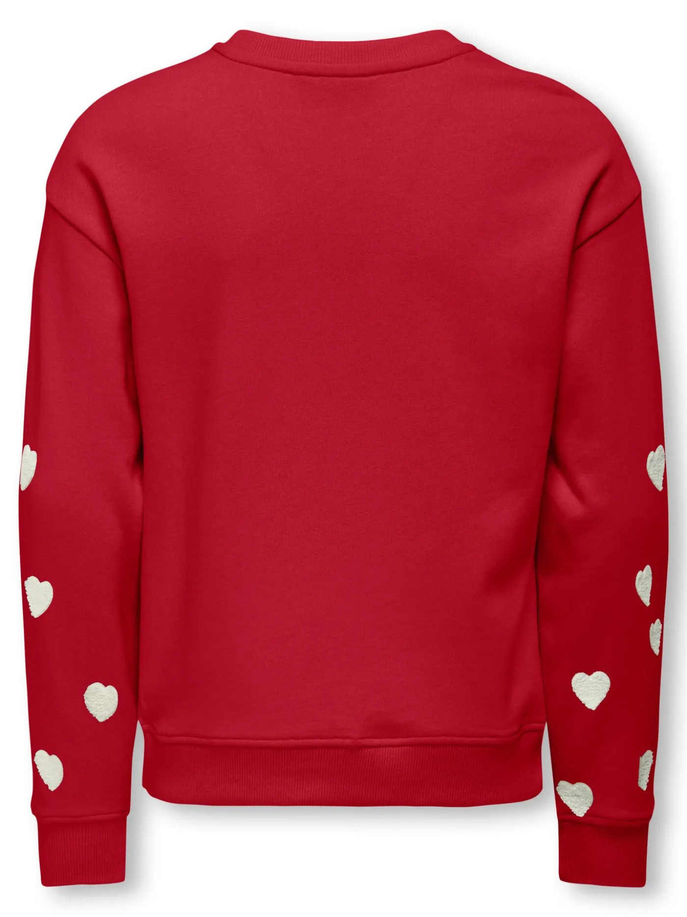 Deze rode meisjestrui is een vrolijke en comfortabele keuze voor kinderen. De schattige witte hartjes op de onderkant van de mouwen geven de trui een speels en lief detail. Gemaakt van zachte, stevige stof die prettig aanvoelt en goed bestand is tegen dagelijks spelen. De ronde hals en normale pasvorm zorgen voor veel bewegingsvrijheid en comfort. Perfect voor school, buitenspelen of een gezellige dag thuis.