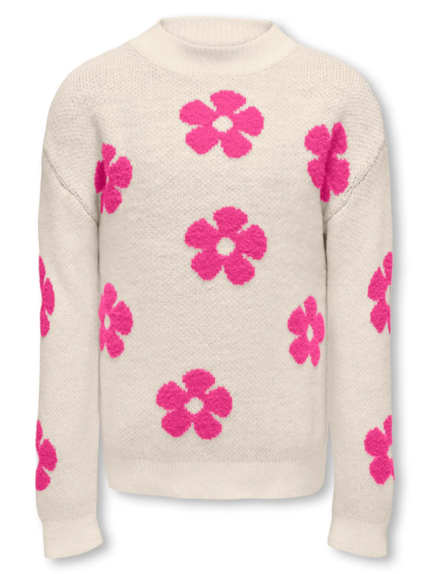 Comfy gebreide trui voor meisjes van Kids Only. Deze te leuke trui heeft een roze bloempatroon en is voorzien van een rond halsje en lange mouwen. Een heerlijk warme trui voor de koude dagen!