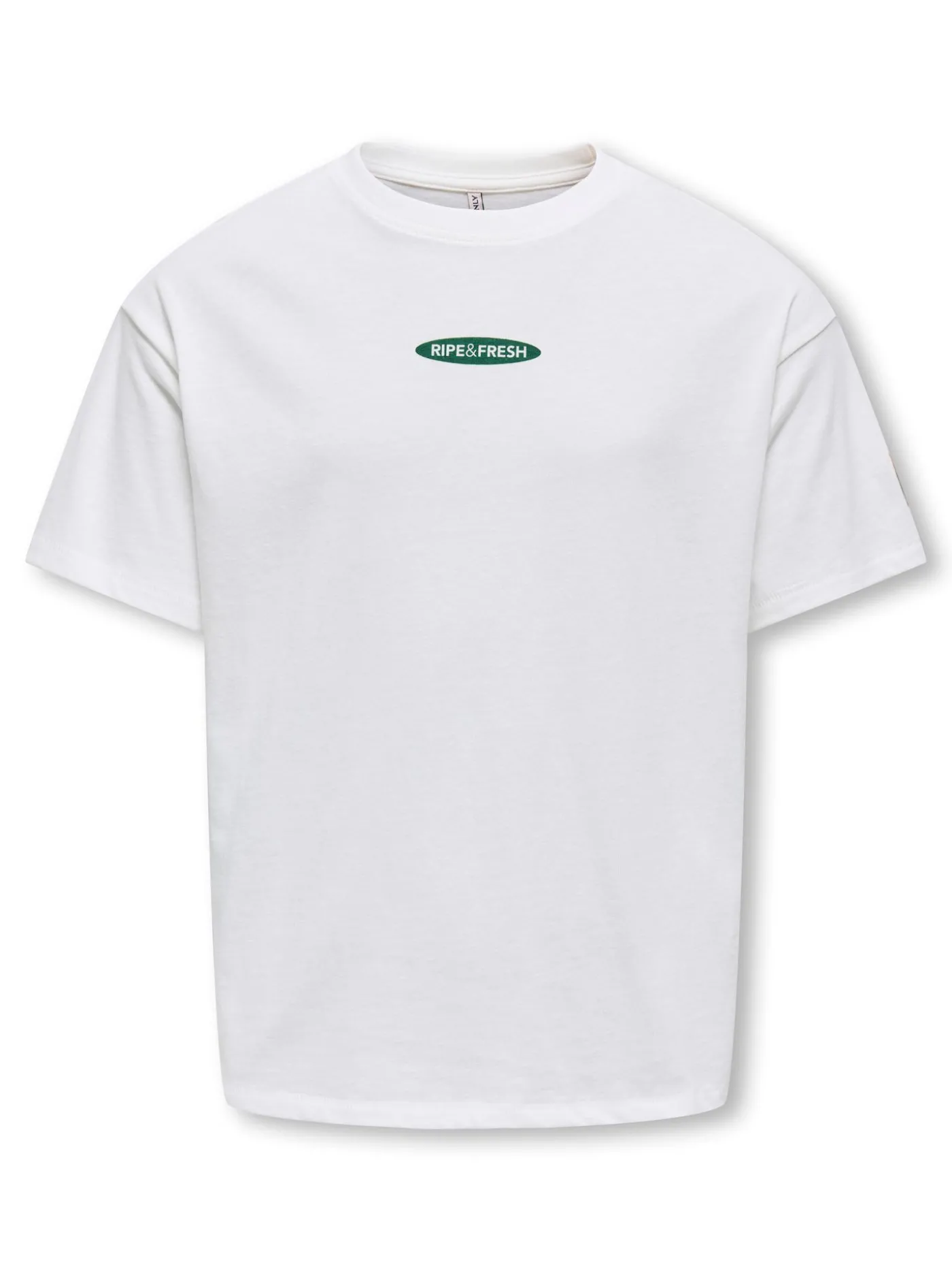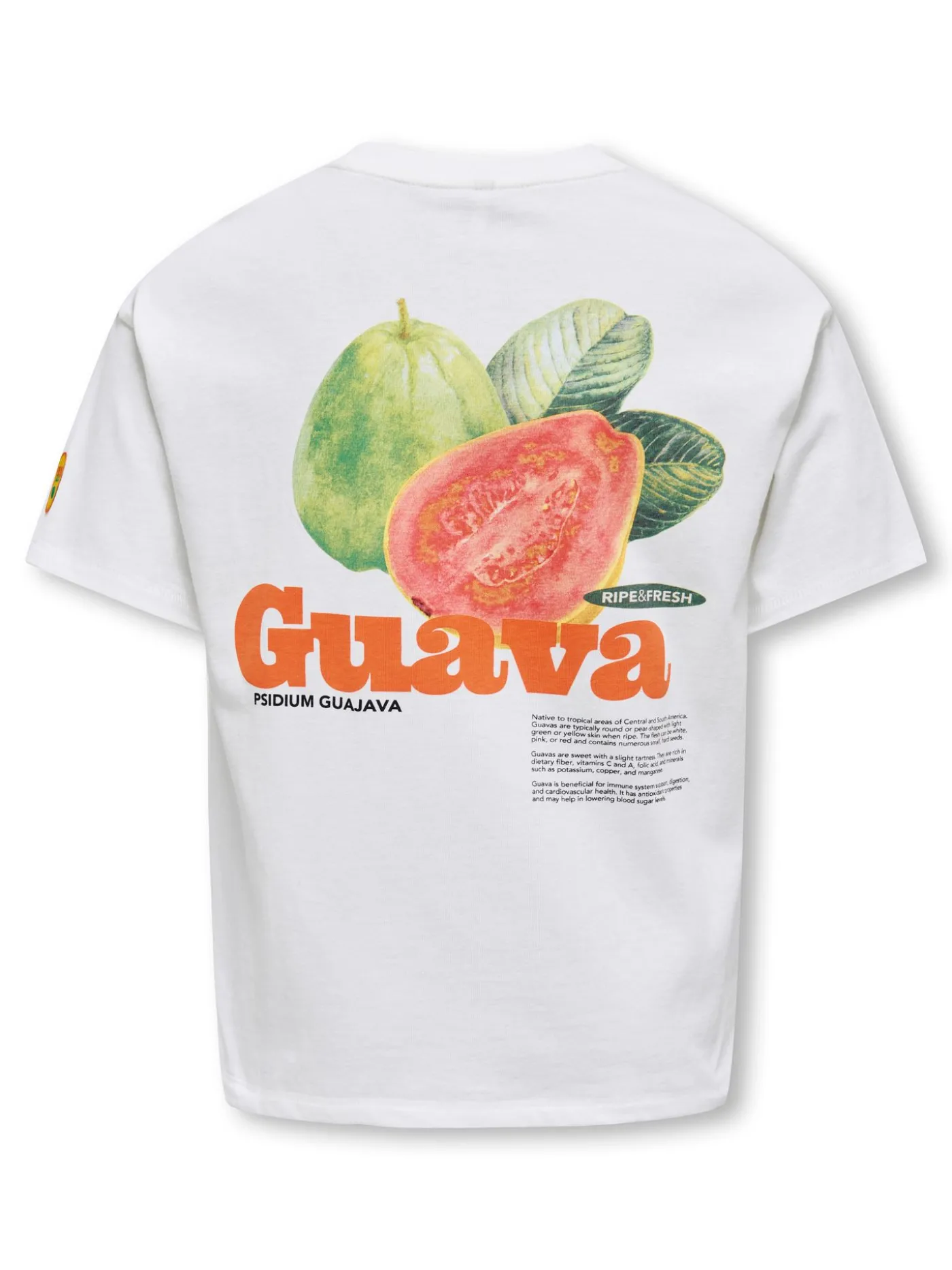 Dit leuke t-shirt van meisjes is onderdeel van de nieuwste collectie van Only. Het t-shirt heeft korte mouwen en een ronde hals. Op de achterkant van het shirt staat een guave afgebeeld. Je kunt dit t-shirt makkelijk combineren met bijvoorbeeld een jeans of jeansshort.
