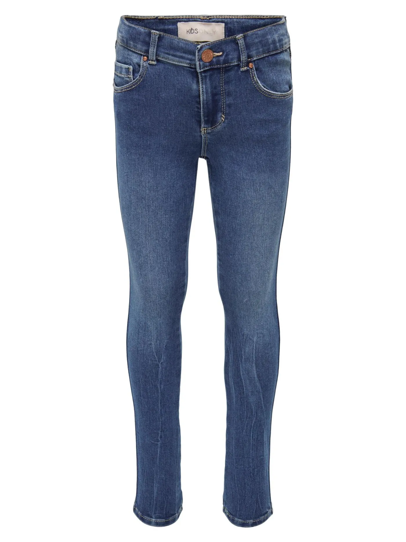 Skinny jeans van het merk Kids Only. De jeans is een 5-pocket model en heeft een medium blauwe wassing. De jeans is voorzien van een elastisch boord rondom de taille en sluit door middel van een rits- en enkele knoopsluiting. Combineer de jeans eens met bijvoorbeeld onzeKOGWEEKDAY REG L/S CIRCLE BOX SWT of één van onze andere toffe items uit de kids collectie.