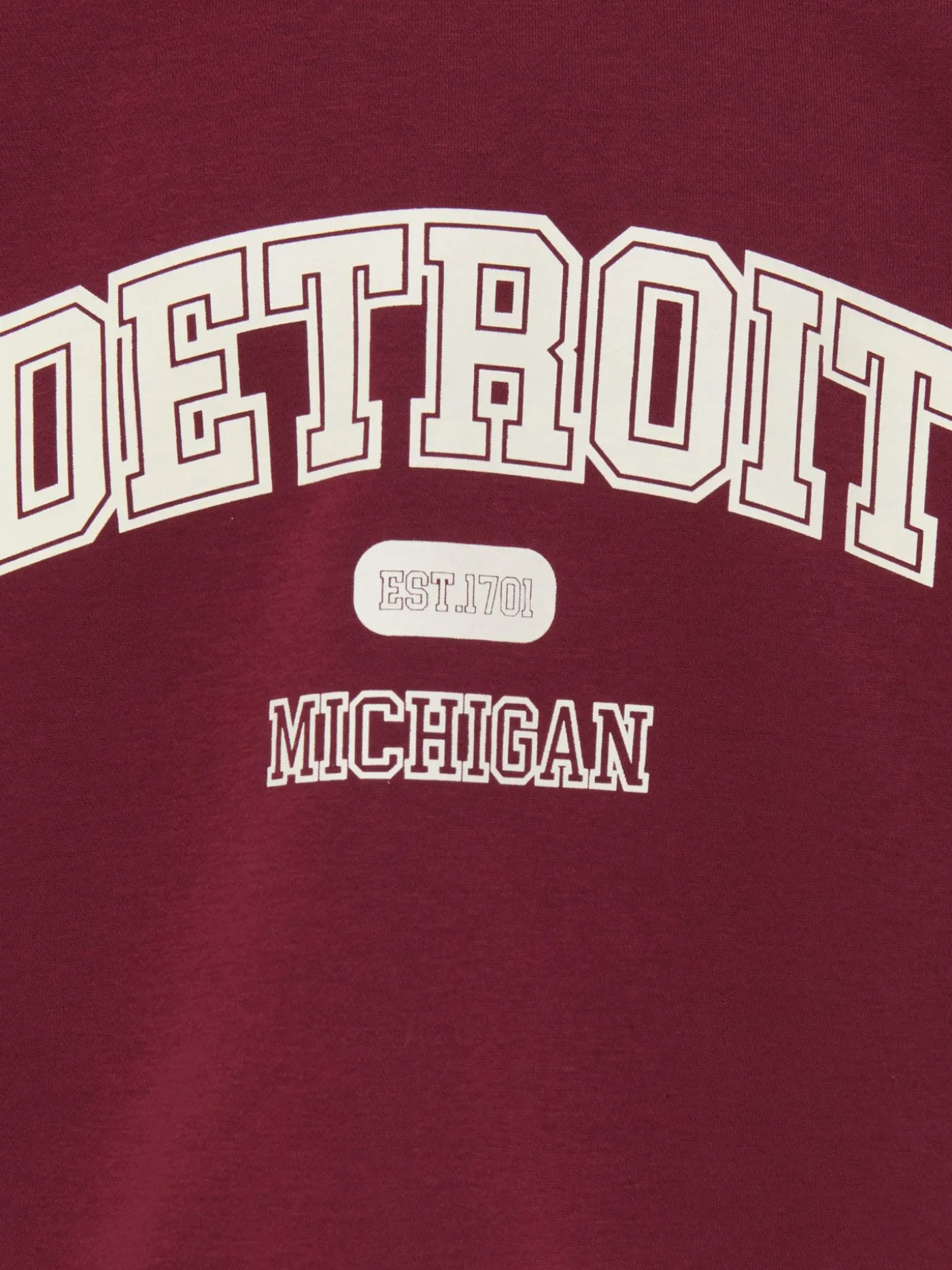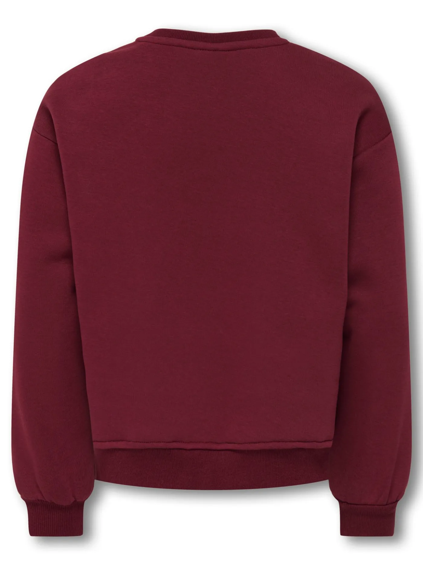 Deze sweater in bordeauxrood is afgewerkt met een opvallende print op de voorkant en heeft een comfortabele pasvorm. Dankzij de ronde hals en lange mouwen is het de perfecte keuze voor een casual en trendy look.