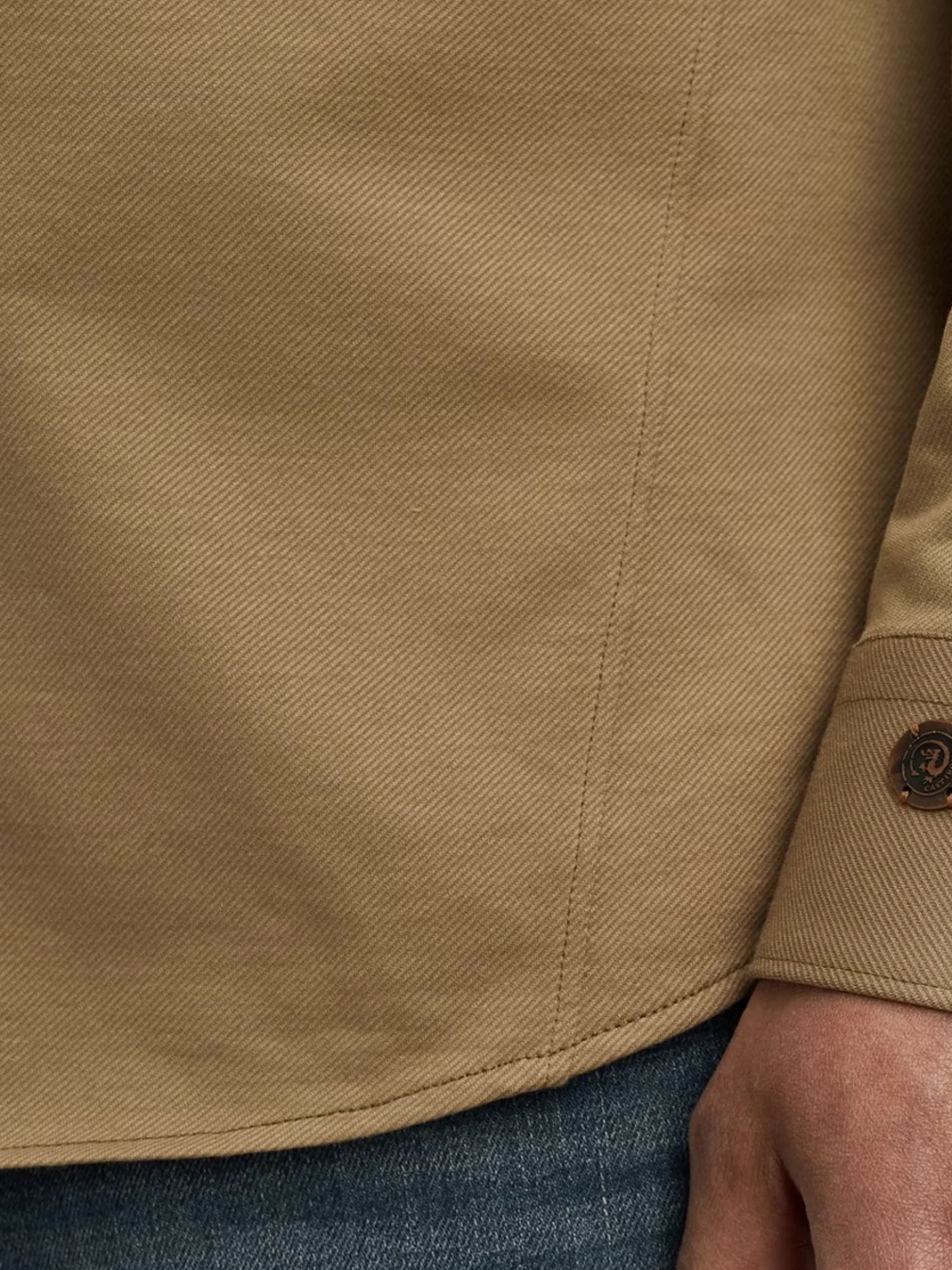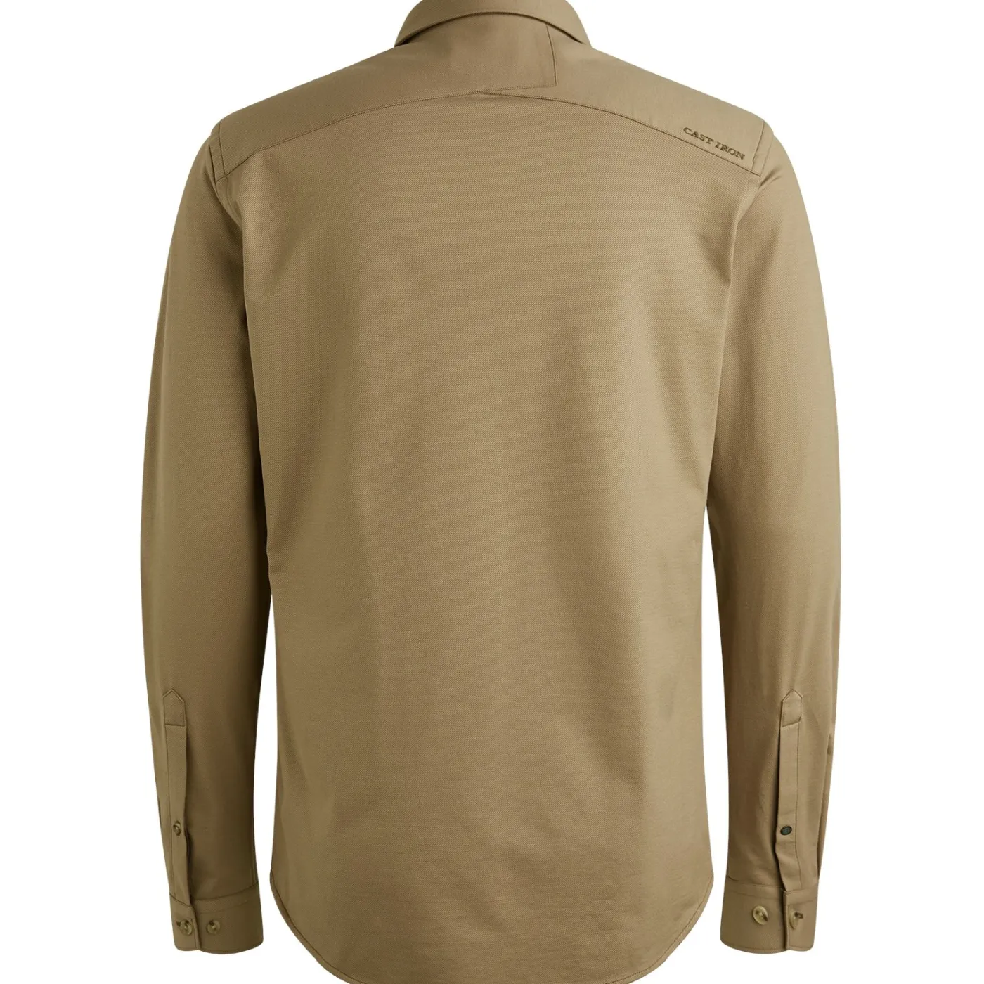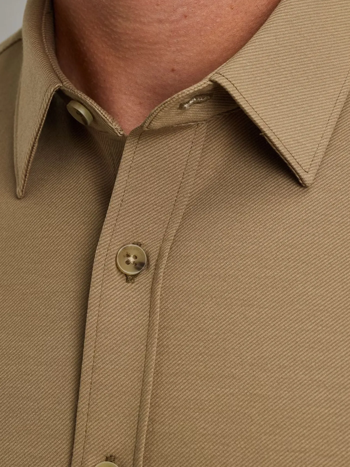 Dit stijlvolle overhemd in een licht bruine tint is een moderne essential voor elke garderobe. Gemaakt van een zachte, soepele stretchende stof biedt het de perfecte balans tussen het uiterlijk van een net overhemd en het comfort van een T-shirt. De minimalistische afwerking en subtiele details zorgen voor een verfijnde look die zowel formeel als casual gedragen kan worden.