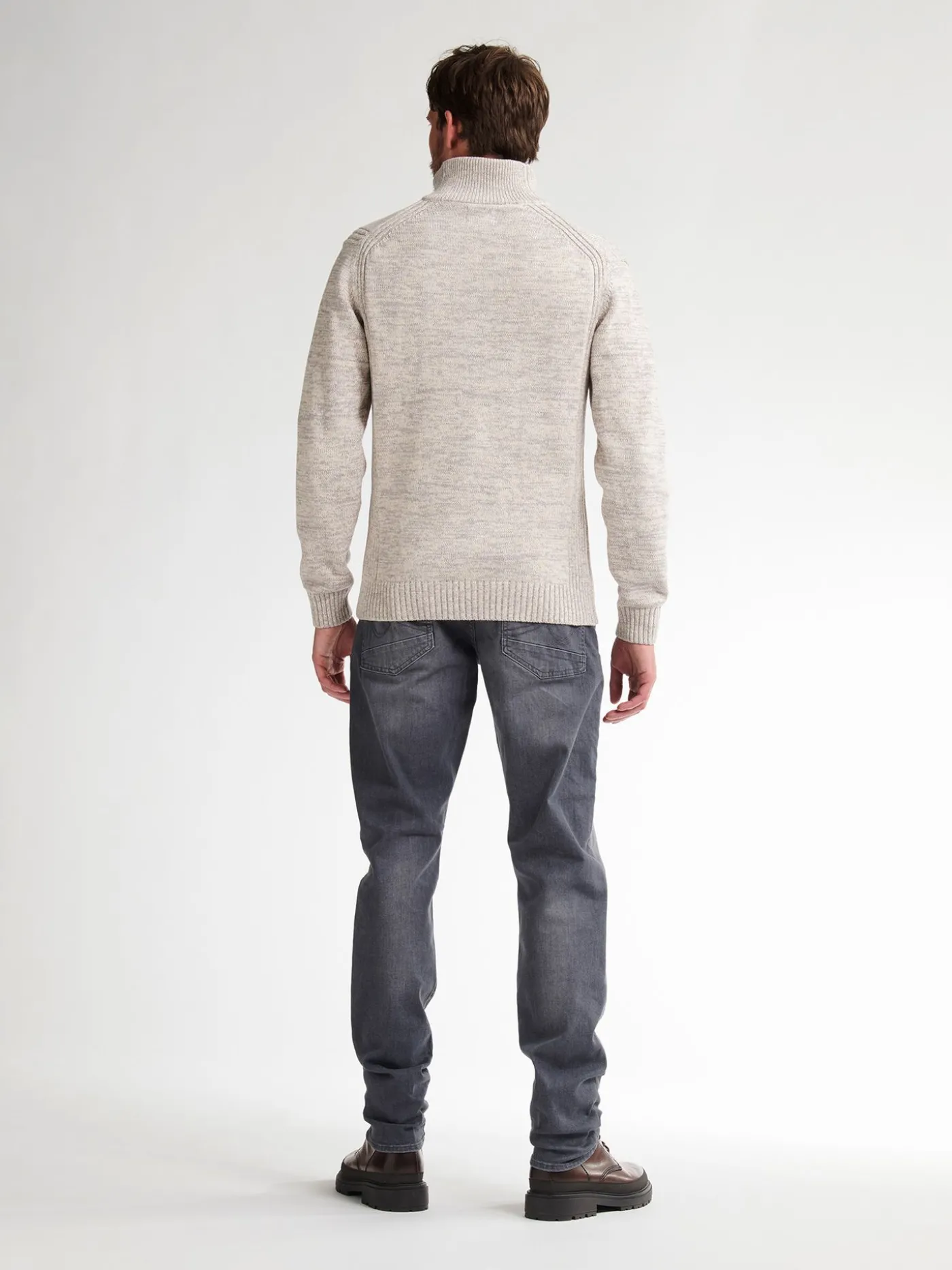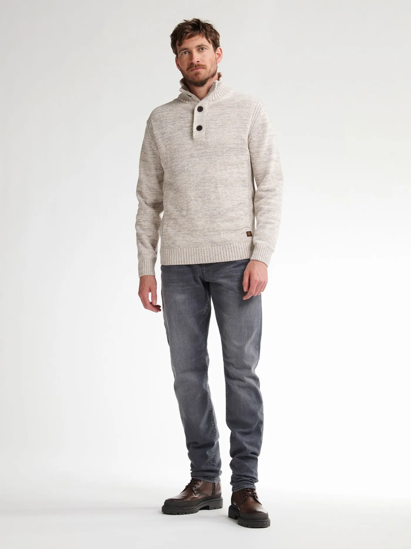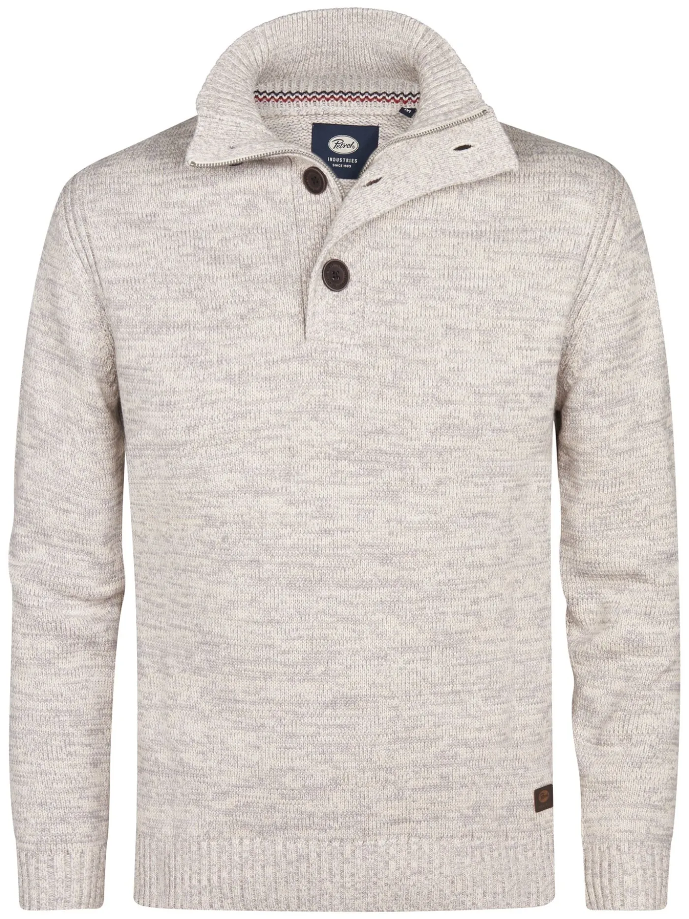 Deze trui van Petrol Industries is een comfortabele en stijlvolle keuze voor koelere dagen. Uitgevoerd in eengemêleerdebeige/grijze kleur met een fijngebreide structuur. De opstaande kraag met knoopsluiting geeft de trui een klassieke en toch moderne uitstraling. Gemaakt van een warme en ademende stof die heerlijk draagt. Ideaal om solo te dragen of als extra laag onder een jas of blazer.
