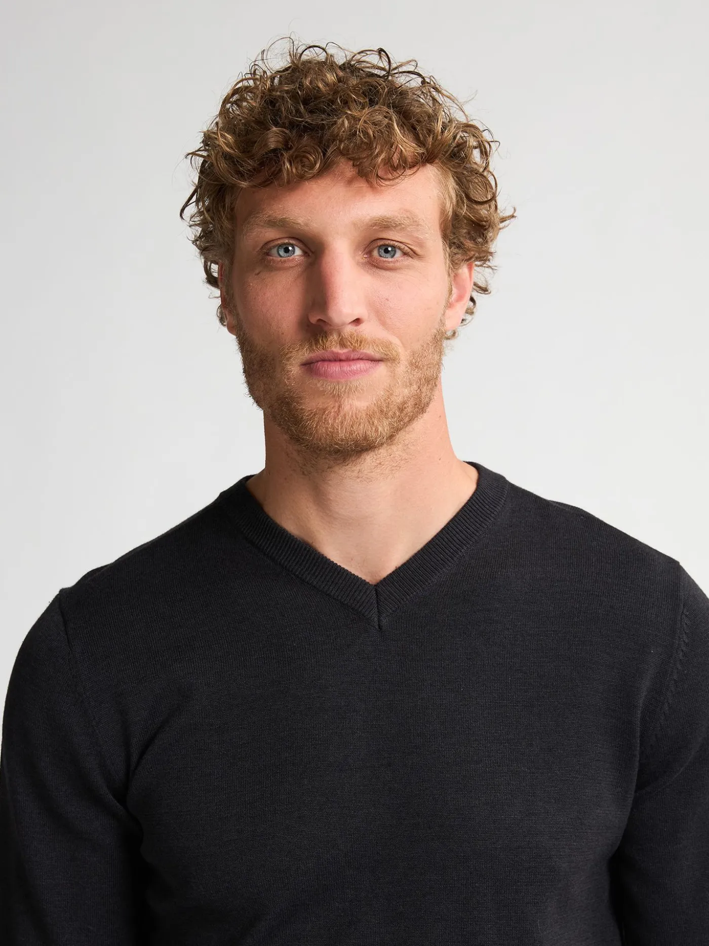 Strakke zwarte V-hals trui, gemaakt van zacht en comfortabel materiaal. Een tijdloze basic die gemakkelijk te combineren is met zowel casual als nette looks.