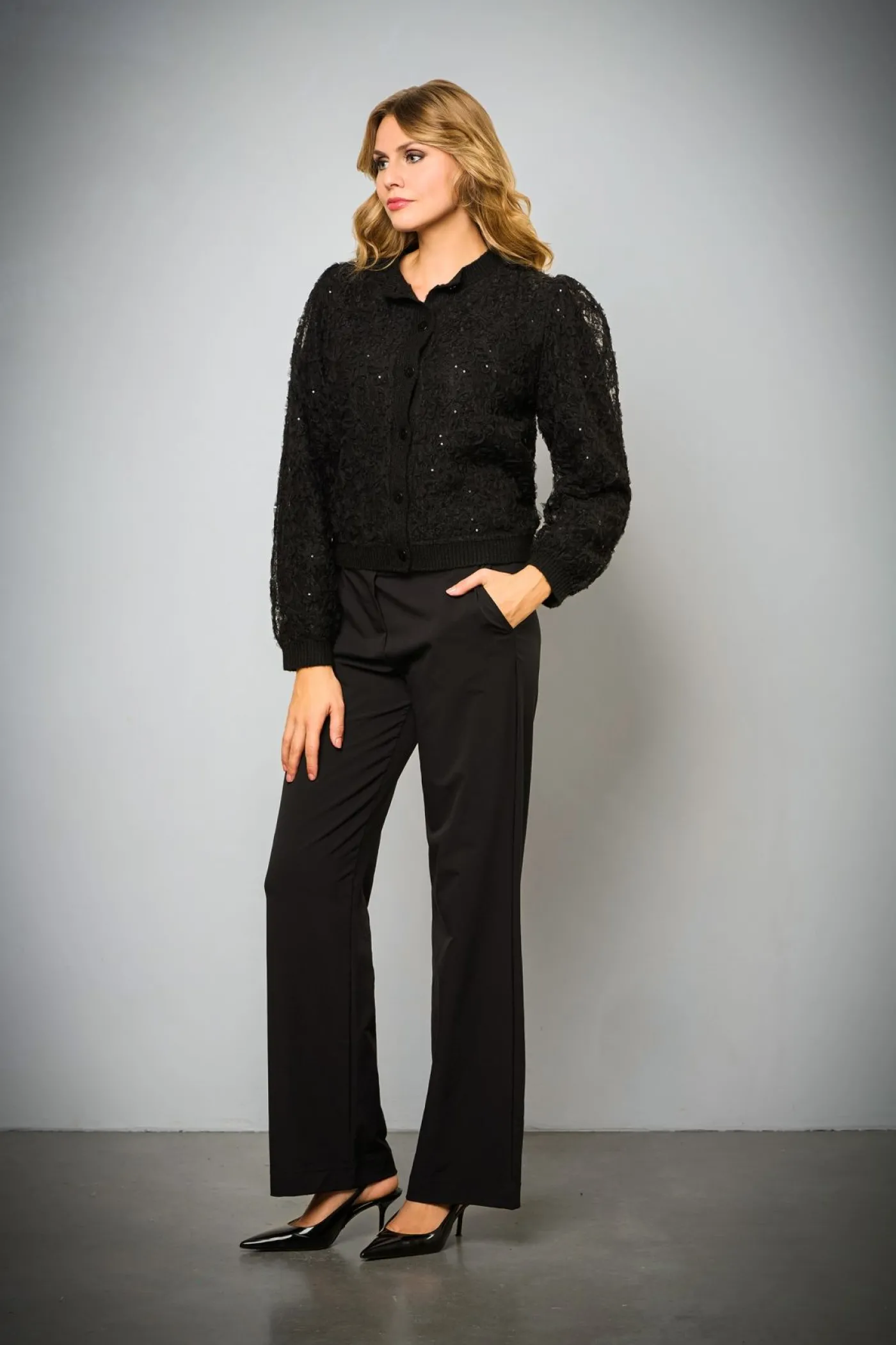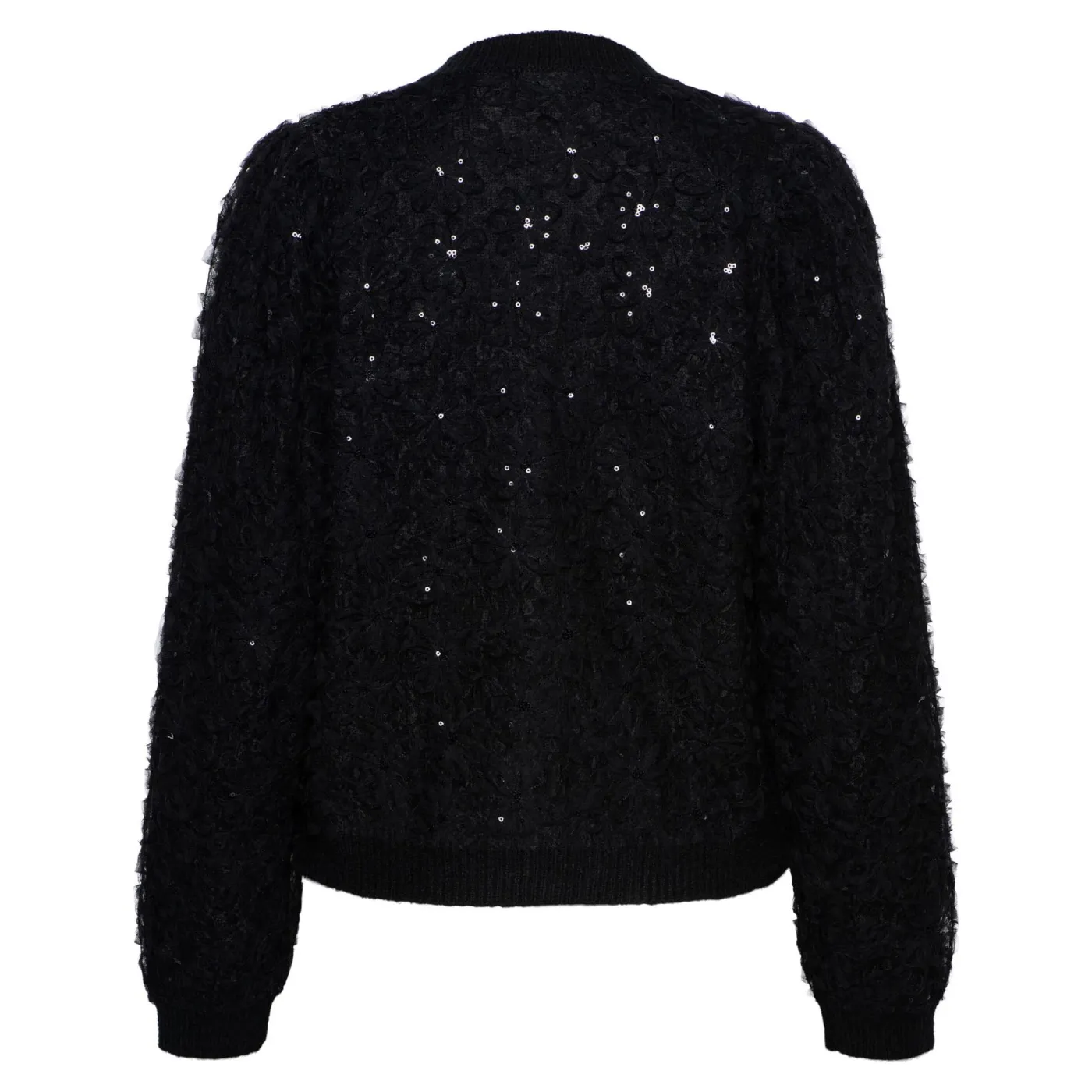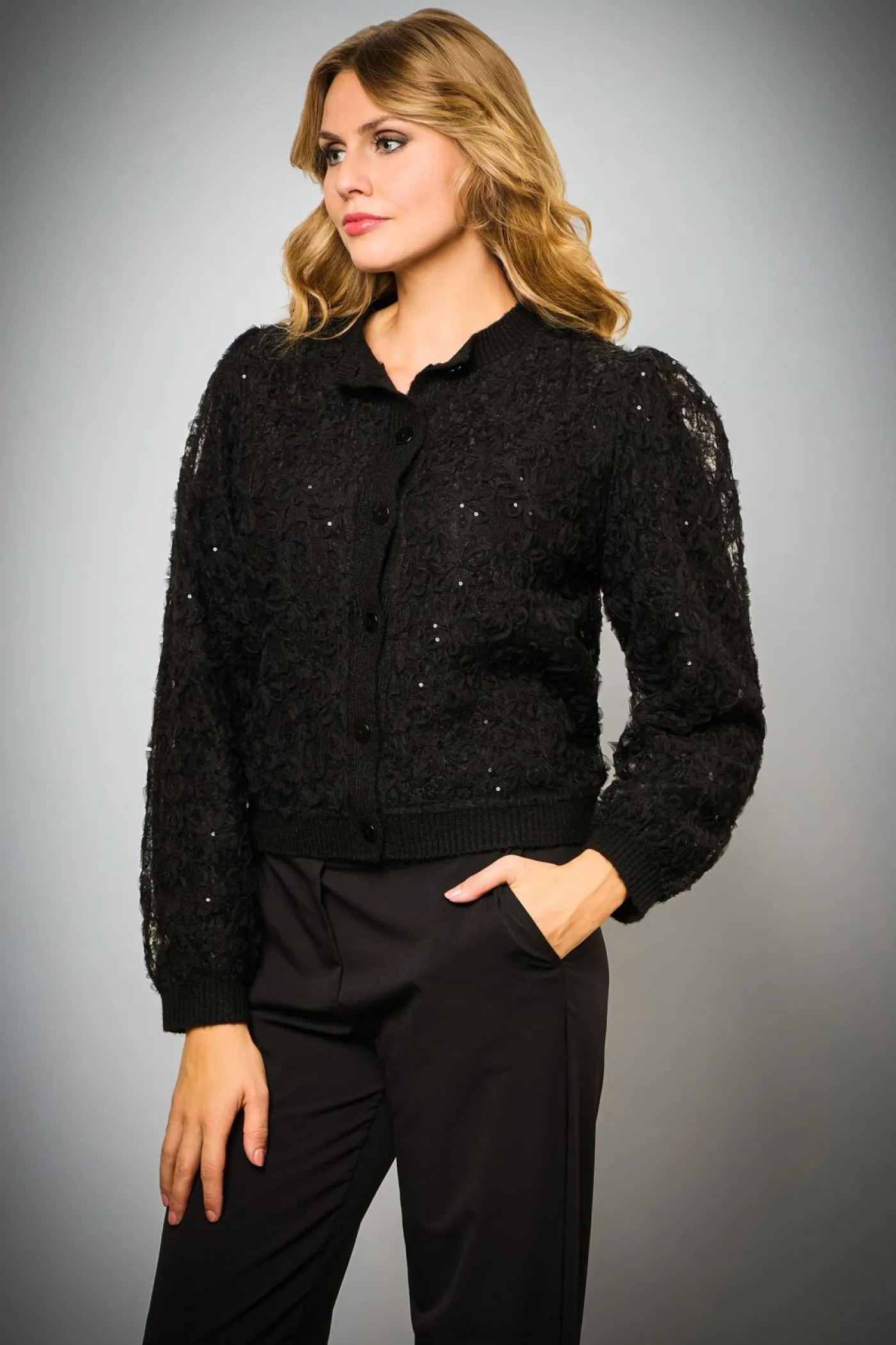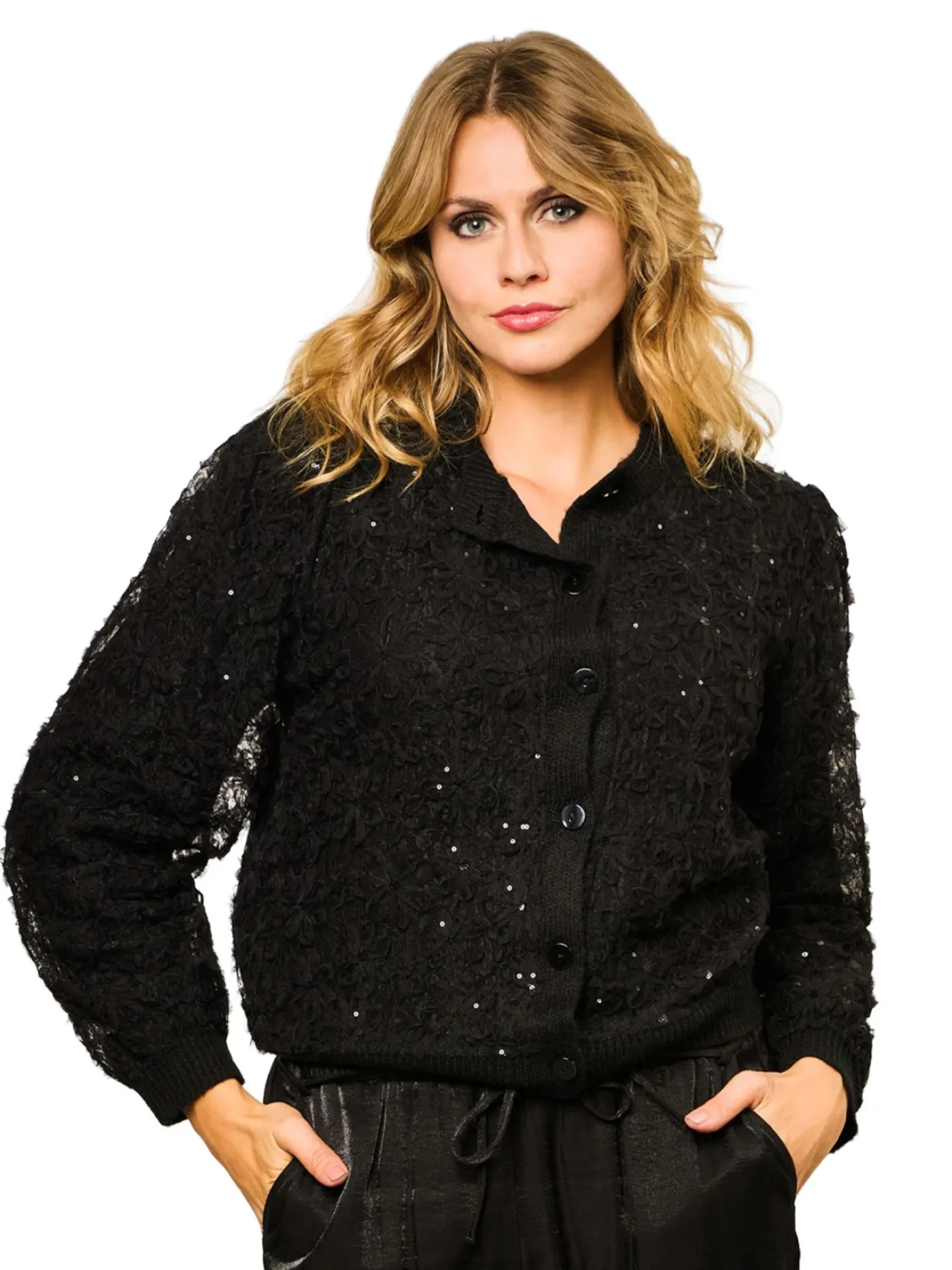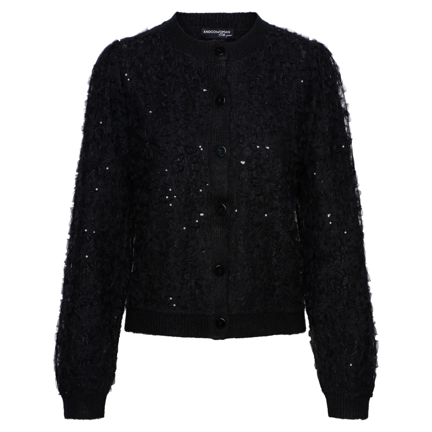 Dit zwarte korte vestje van &Co Woman is een echte eyecatcher met zijn subtiele bloemetjes en glinsterende details. De zachte stof voelt comfortabel aan en geeft een chique uitstraling. Dankzij de knoopsluiting kun je het vestje open of dicht dragen, afhankelijk van je look. Perfect te combineren met een blouse of jurk voor een vrouwelijke, feestelijke outfit. Een stijlvol item dat elegantie en comfort moeiteloos samenbrengt.