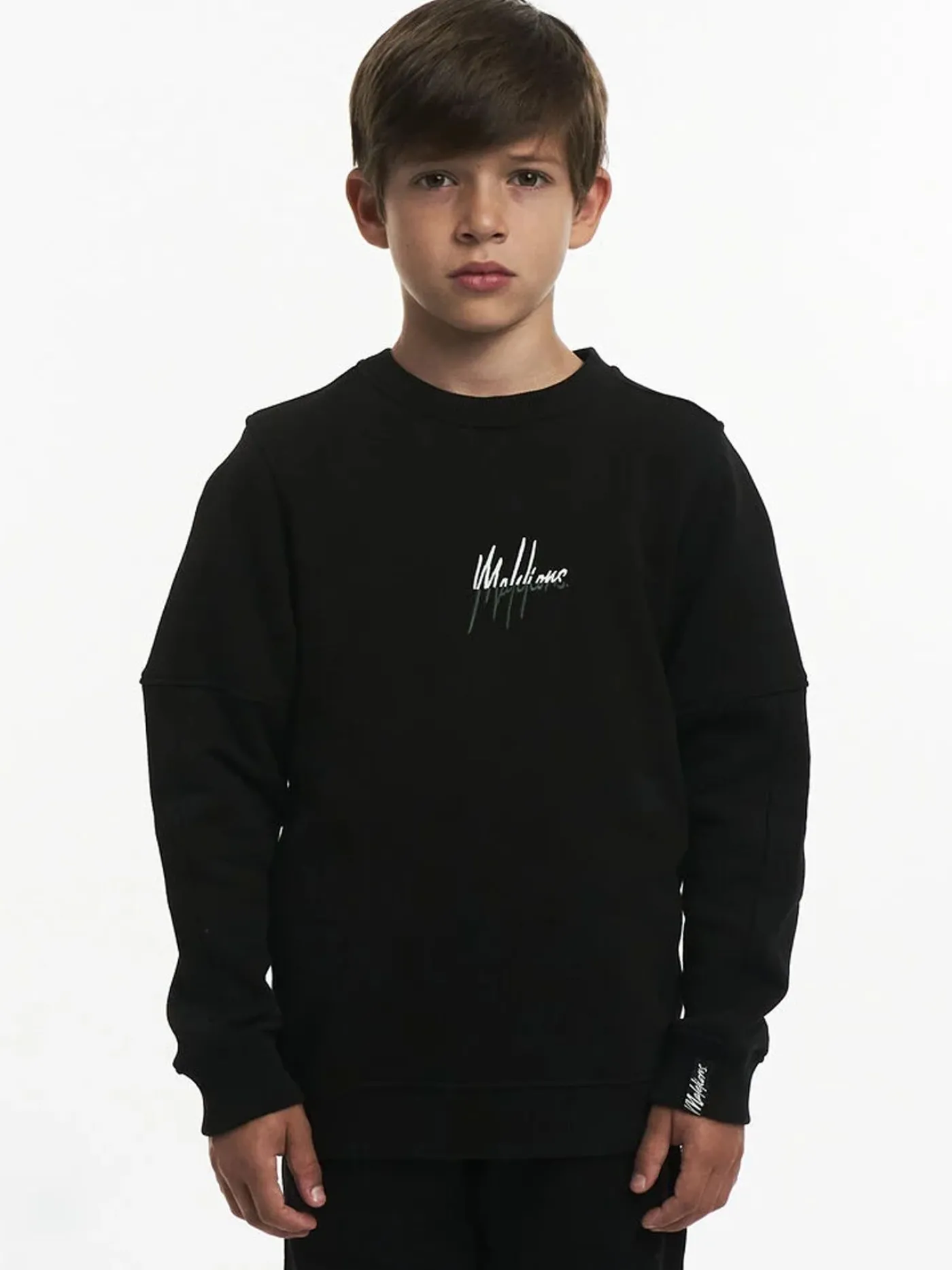 Zwarte sweater voor jongens van Malelions. De trui is uitgevoerd met een ronde hals en heeft lange mouwen. Aan de voor- en achterzijde voorzien van het merklogo. De trui is leuk te combineren met een lichte jeans.