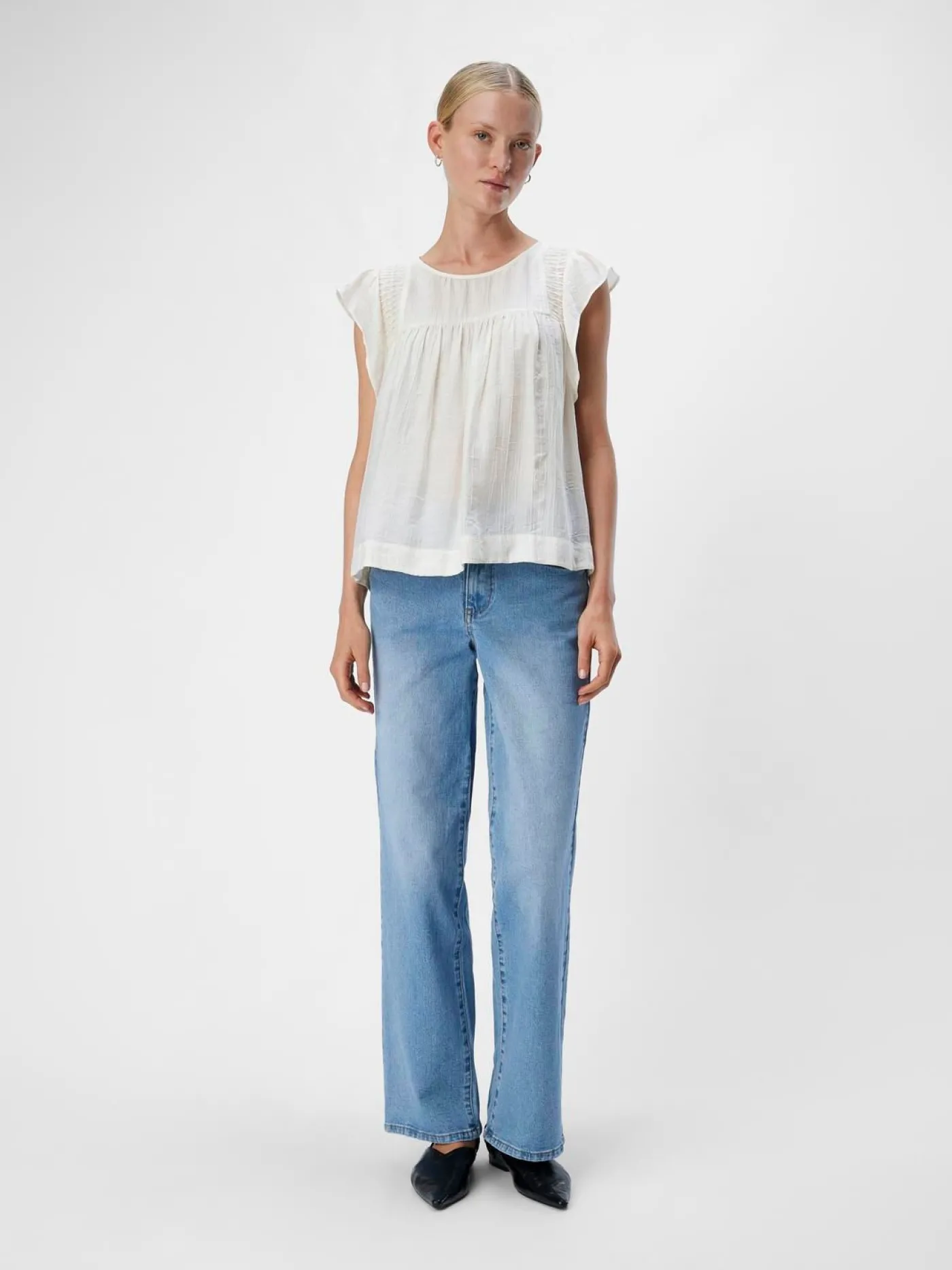 Beige blouse van het merk Object. De blouse heeft korte kapmouwtjes, details op de schouders en een knoopsluiting aan de achterkant. Deze vrolijke blouse is een echte musthave in je kledingkast en bovendien verkrijgbaar in verschillende kleuren.
