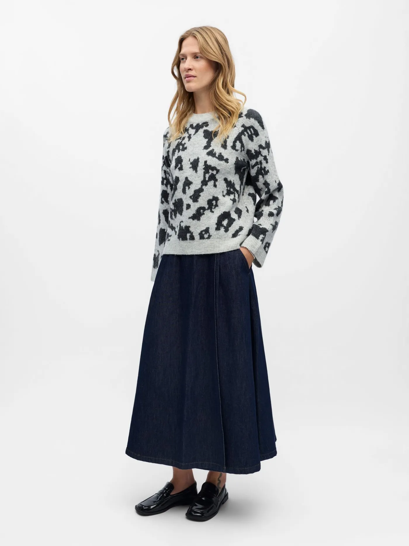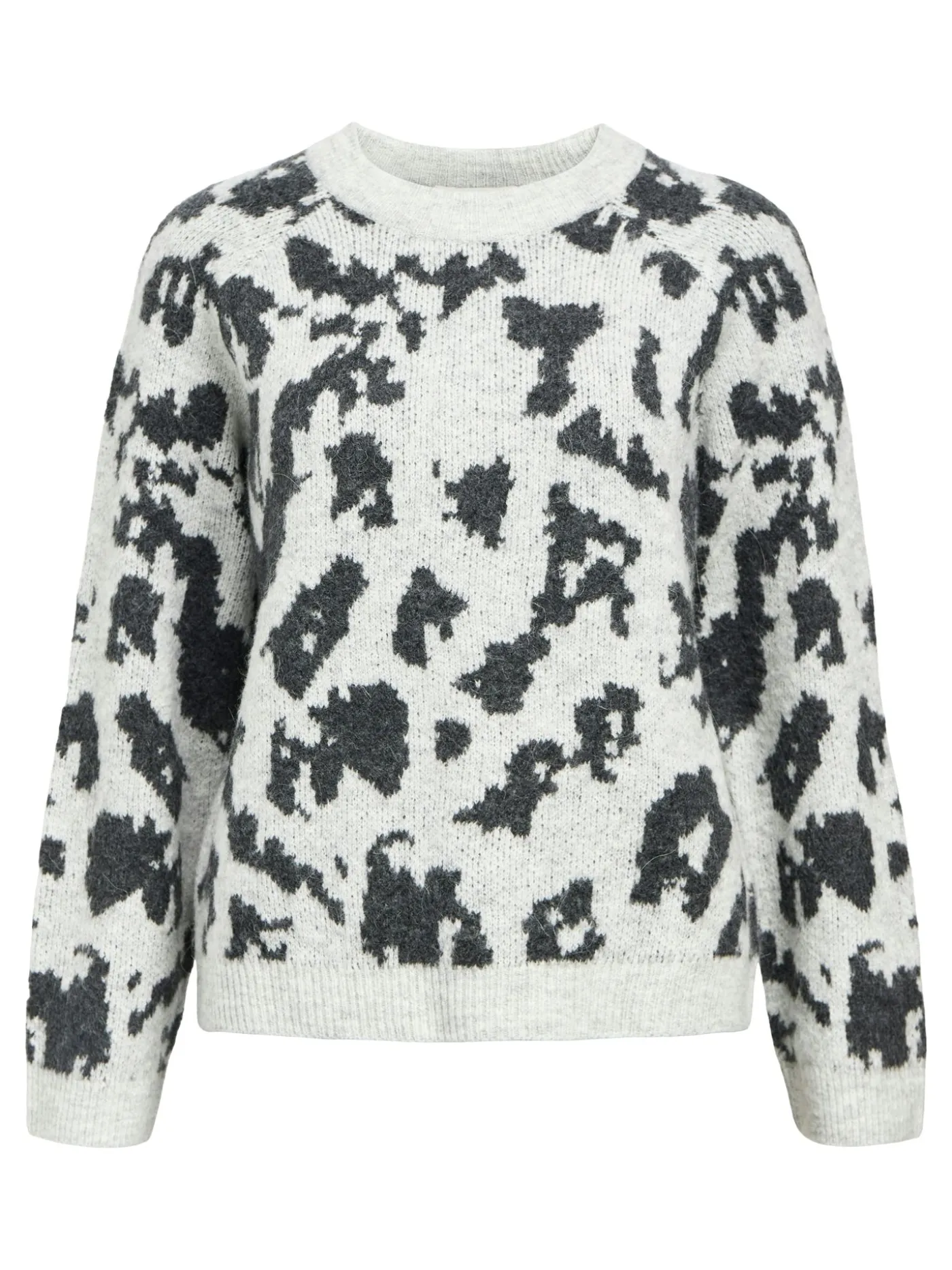 Deze lichtgrijze sweater van Object krijgt een speelse en moderne uitstraling door de zwarte vlekjes die subtiel over de stof verdeeld zijn. De ronde halslijn houdt het ontwerp tijdloos en gemakkelijk te combineren met zowel casual als nette outfits. Dankzij de lange mouwen biedt de trui een comfortabel en warm draaggevoel, perfect voor iedere dag. Een veelzijdige sweater die moeiteloos stijl en comfort samenbrengt.