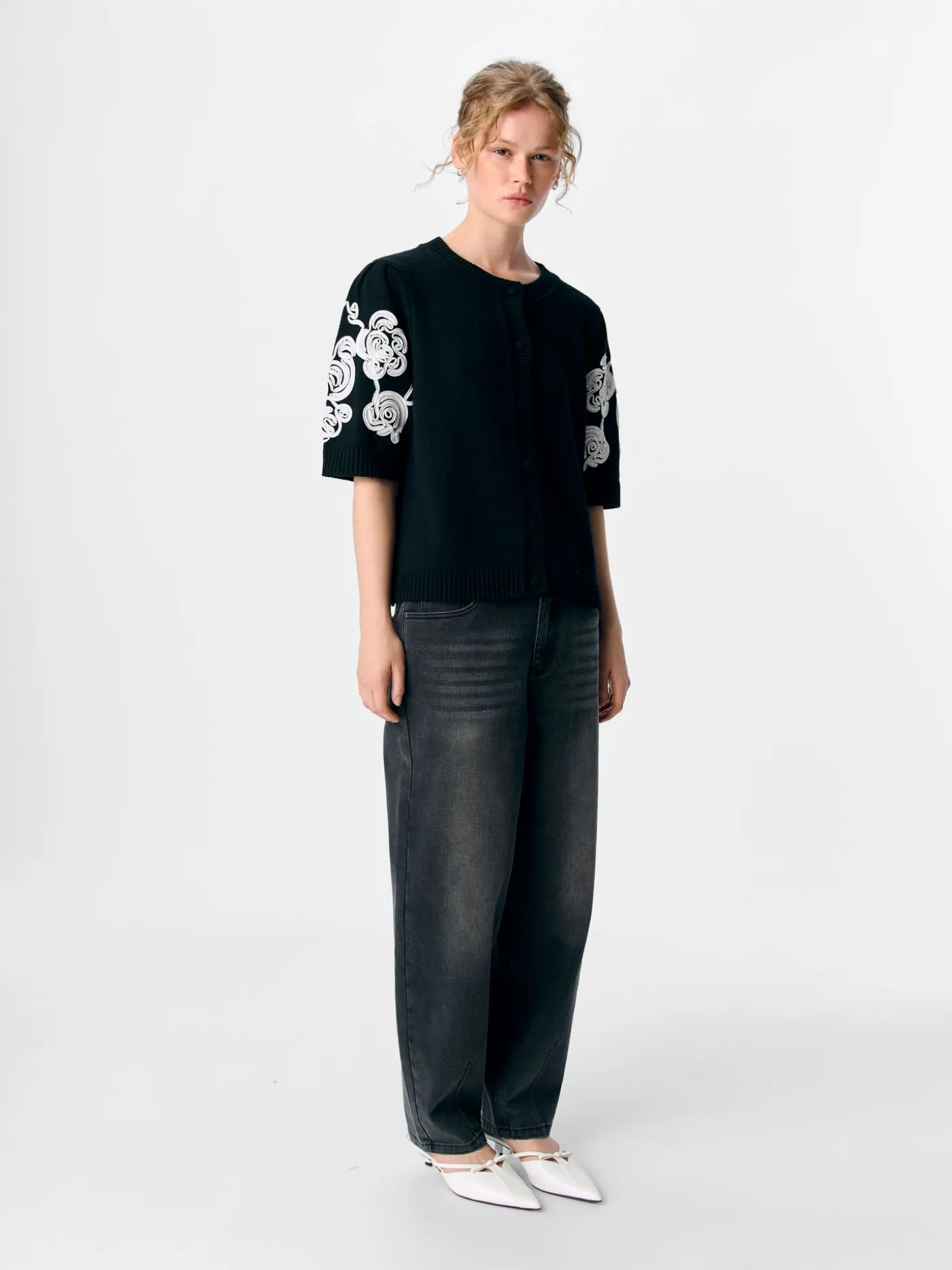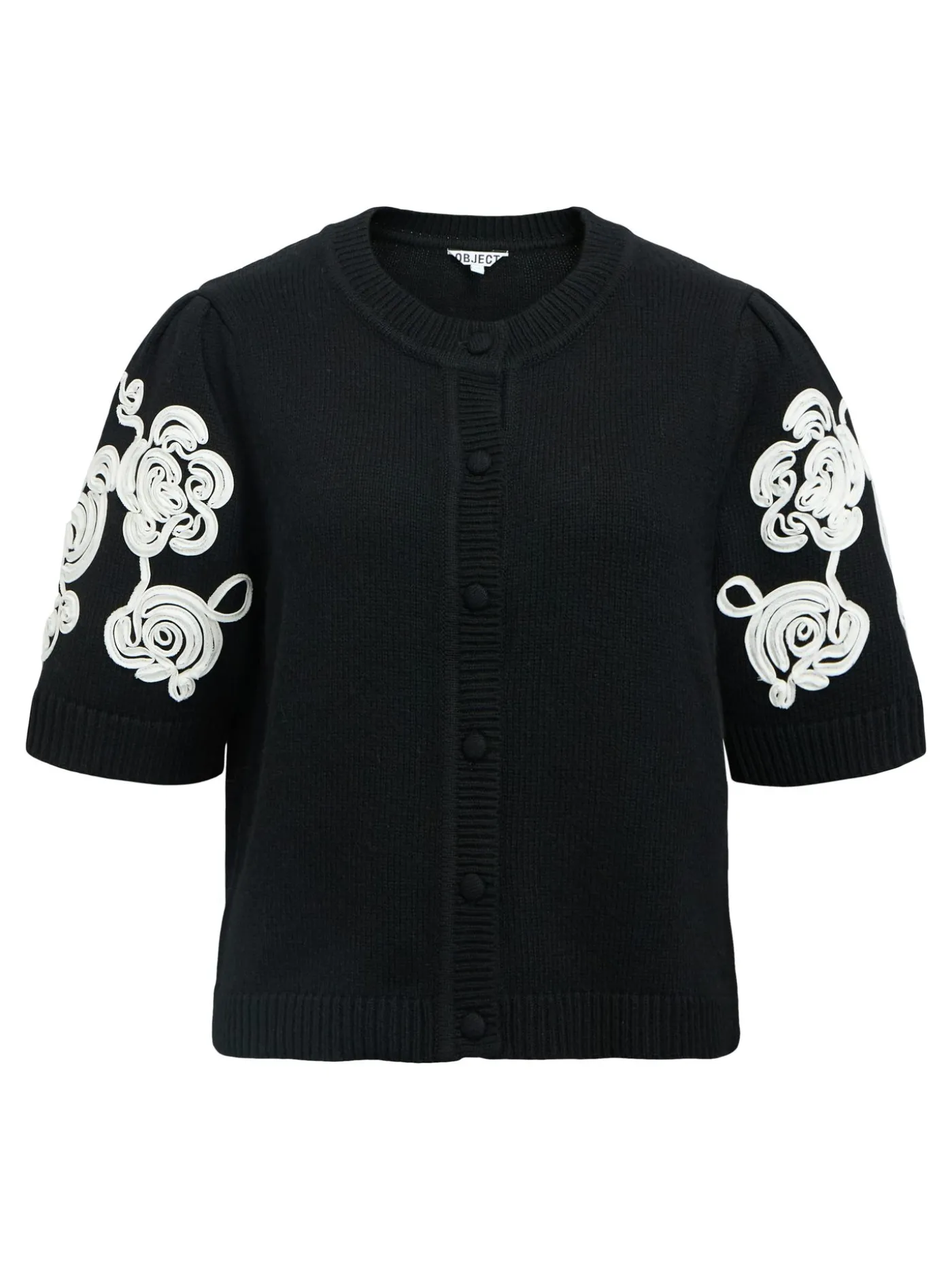 Dit zwarte vest van Object voor dames heeft halflange mouwen en een comfortabele regular fit. Op de mouw staat een subtiele witte roos die het vest een stijlvol en vrouwelijk accent geeft. Het zachte materiaal en de relaxte pasvorm maken het vest perfect voor casual of iets nettere looks. Een veelzijdig item dat makkelijk te combineren is.