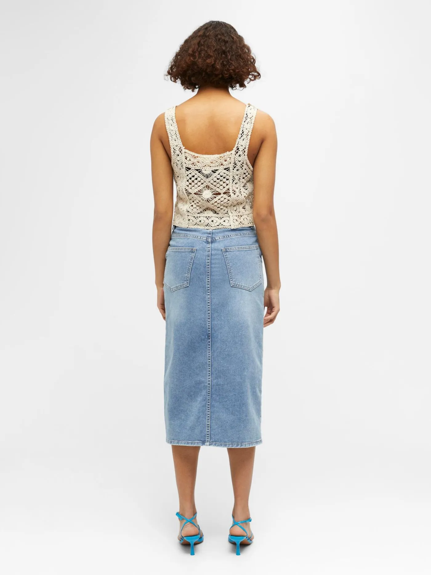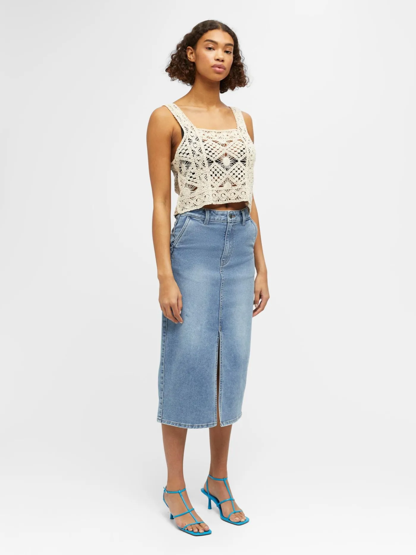 Open gebreide beige top van het merk Object. Dit item is mouwloos en cropped fit. Combineer hem op een stoere jeans met sneakers of hakken.