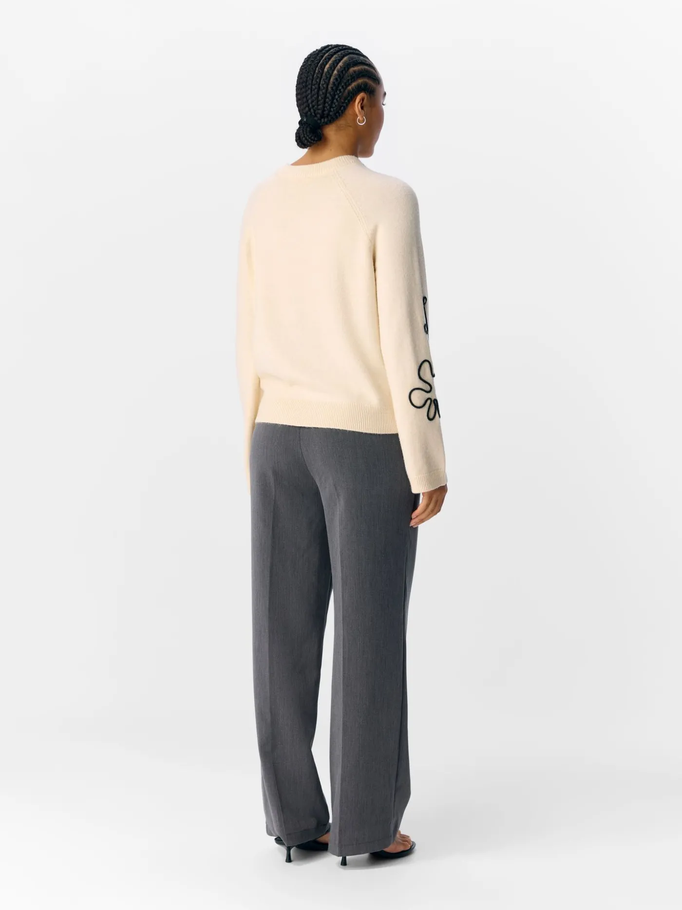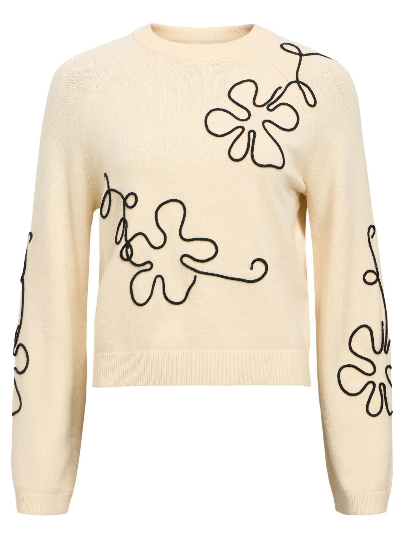 Deze witte sweater van Object voor dames is losvallend, zacht en comfortabel. Over de trui lopen zwarte strepen die subtiel bloemmotieven vormen, wat een speels en stijlvol accent geeft. Perfect te combineren met jeans, pantalons of rokken voor een casual-chique look.