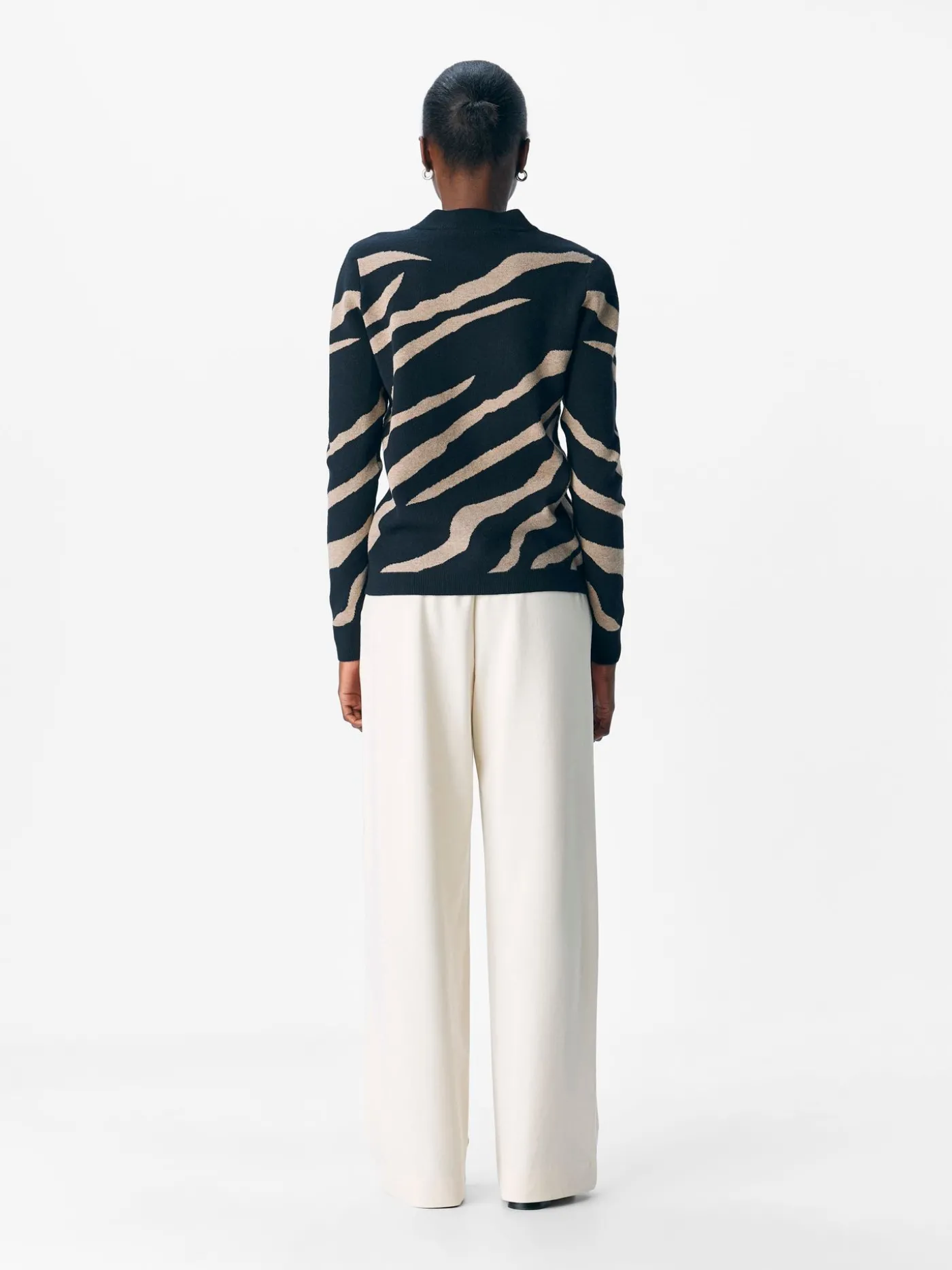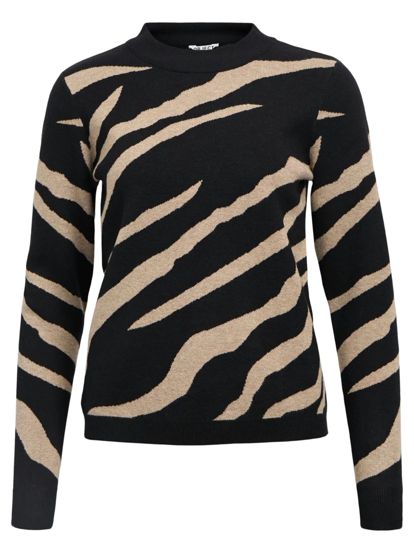 Deze zwarte sweater van OBJECT is voorzien van een speelse beige zebra-achtige print die zorgt voor een stoere en trendy uitstraling. De trui heeft een rechte pasvorm met een ronde hals en voelt zacht en comfortabel aan op de huid. Dankzij het grafische patroon geef je elke outfit in één keer een modieuze boost. Combineer hem met een jeans voor een casual look of draag hem op een rok voor een vrouwelijke twist. Ideaal voor dagelijks gebruik, maar zeker ook geschikt voor een opvallende weekendoutfit. Een echte eyecatcher voor je garderobe.