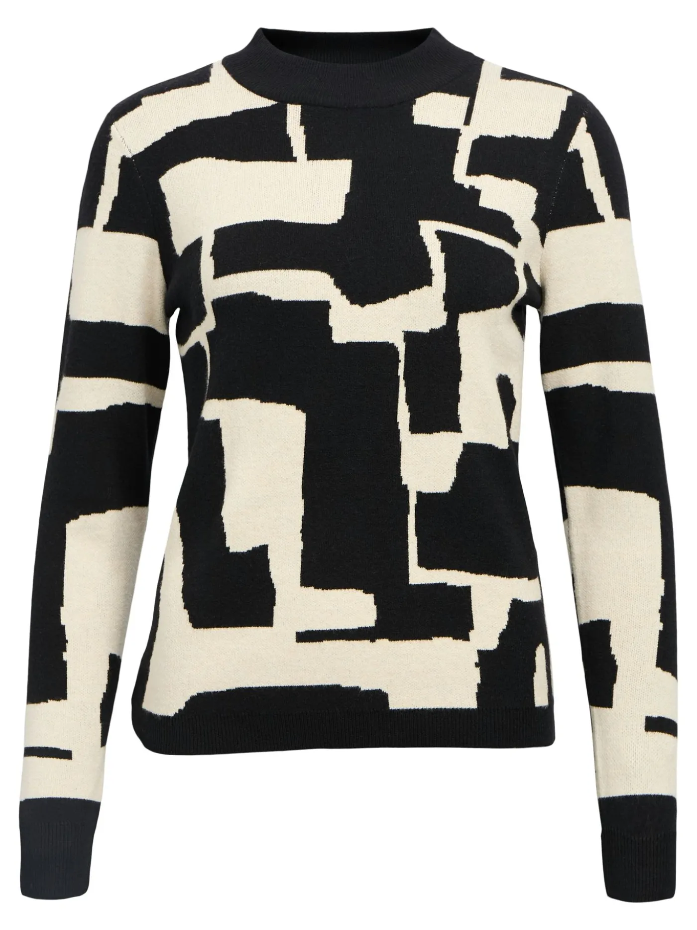 Deze zwart-beige sweater van OBJECT is een echte statement knit met een grafisch patroon dat direct in het oog springt. De aangesloten pasvorm en ronde hals zorgen voor een vrouwelijke en moderne uitstraling. Gemaakt van een zachte, rekbare stof die comfortabel draagt en mooi in model blijft. Perfect te combineren met een zwarte pantalon of een denim voor een eigentijdse look. Een ideale trui voor wie houdt van prints met karakter zonder in te leveren op draagcomfort.
