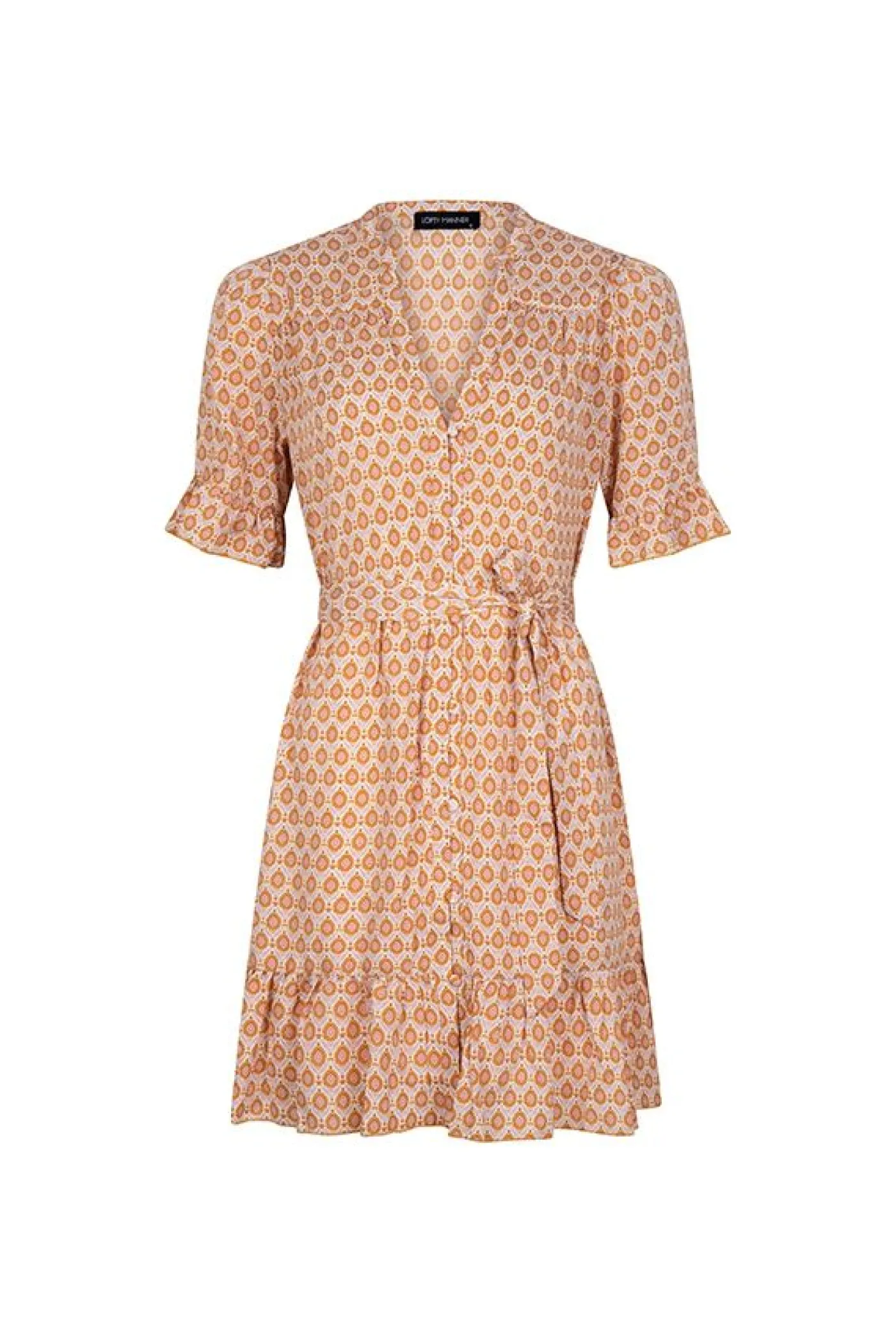 Jurkje van Lofty Manner met een vrolijke zomerse print. De jurk heeft knoopjes en is leuk te combineren met sneakers of laarjes.
