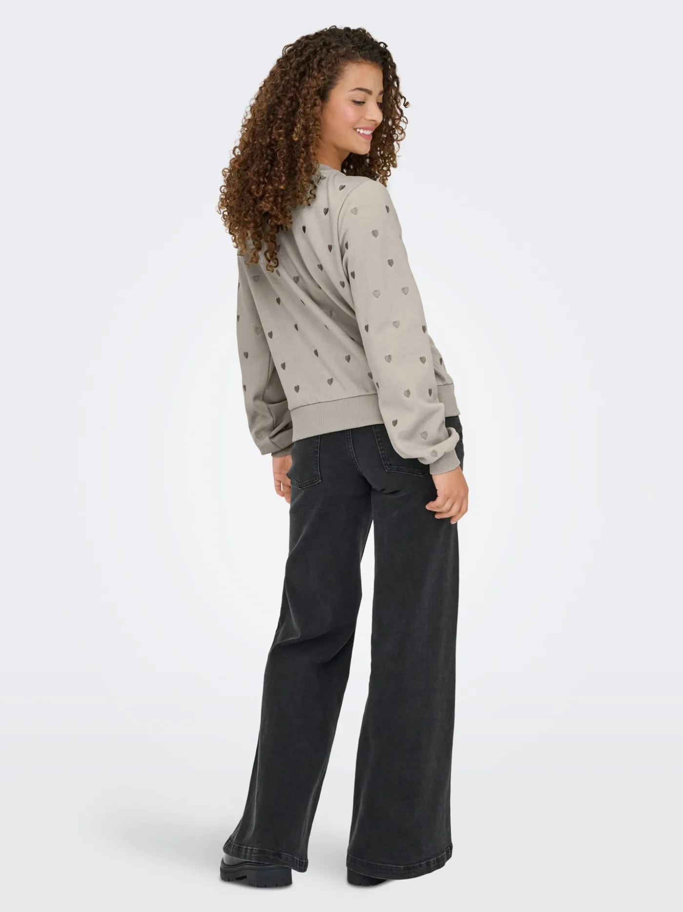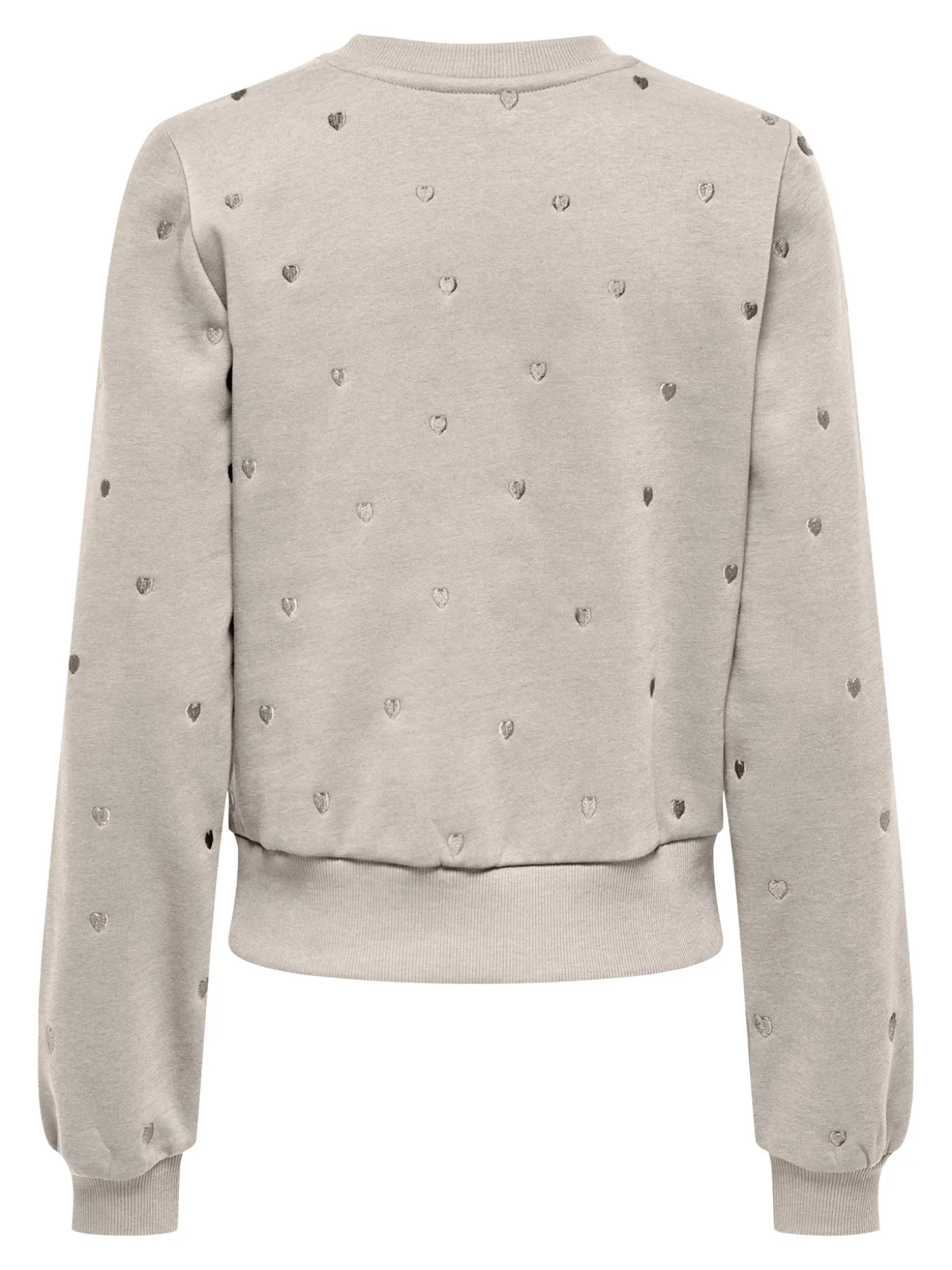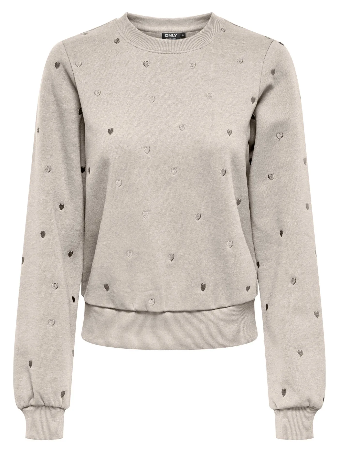 Deze beige sweater van Only is lief en casual met subtiele beige hartjes over de stof. Het regular fit model zorgt voor een comfortabele pasvorm die ideaal is voor dagelijks gebruik. Gemaakt van een zachte katoenmix die prettig aanvoelt op de huid. Combineer hem met jeans of een rok voor een speelse, moderne look. Een charmante sweater die eenvoudig elke outfit een extra touch geeft.