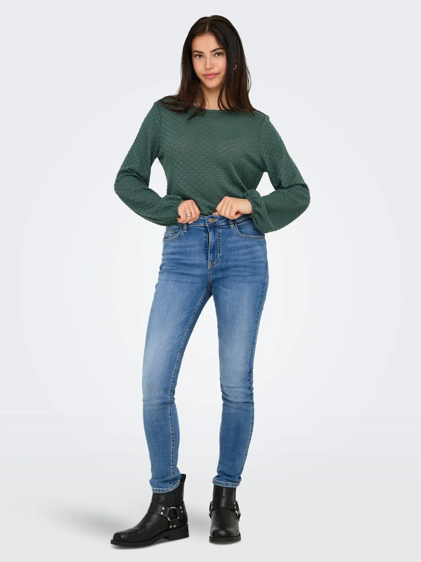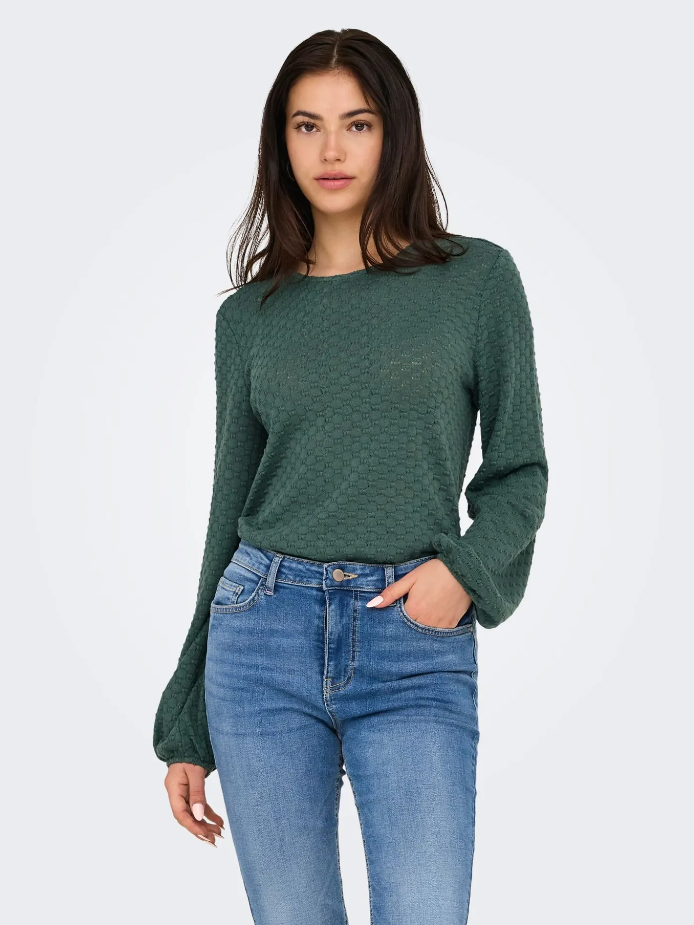 Deze groene longsleeve van Only is een speelse en vrouwelijke toevoeging aan je garderobe. De kleine strikjes op het shirt zorgen voor een unieke en charmante uitstraling. De zachte stof voelt comfortabel aan en beweegt soepel met je mee. Dankzij de aansluitende pasvorm komt je silhouet mooi tot zijn recht. Perfect om casual te dragen of te combineren met een nette broek voor een stijlvolle look.