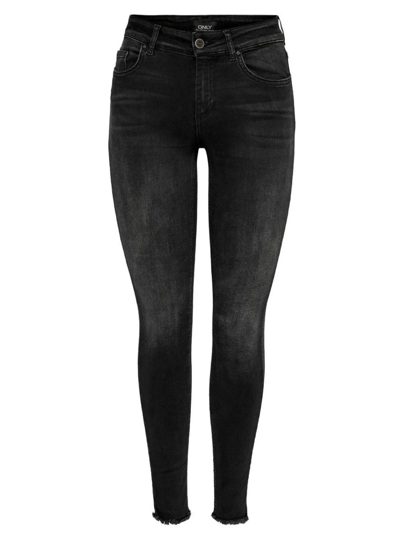 Deze mooie zwarte ankle jeans van het merk Only is een skinny model met mid waist en sluit door middel van een knoop en rits. De jeans heeft leuke accenten, zoals een rafeltje onder aan de broekspijpen.