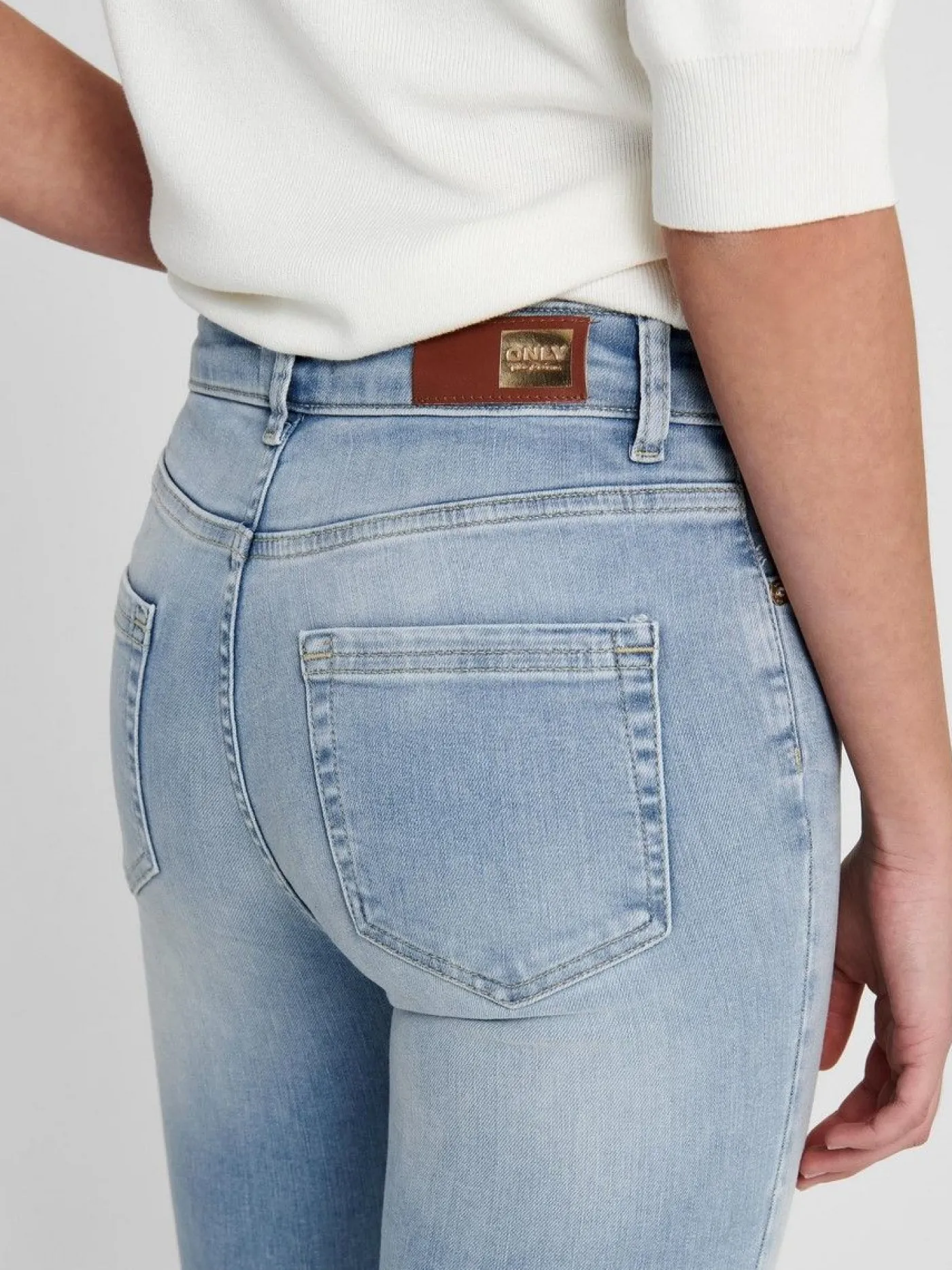 Lichtblauwe skinny jeans van Only voor dames. De jeans heeft een mid waist model en door de lichte kleur ideaal om te dragen tijdens zonnige dagen. De broek is voorzien van een rits- en knoopsluiting en riemlussen.