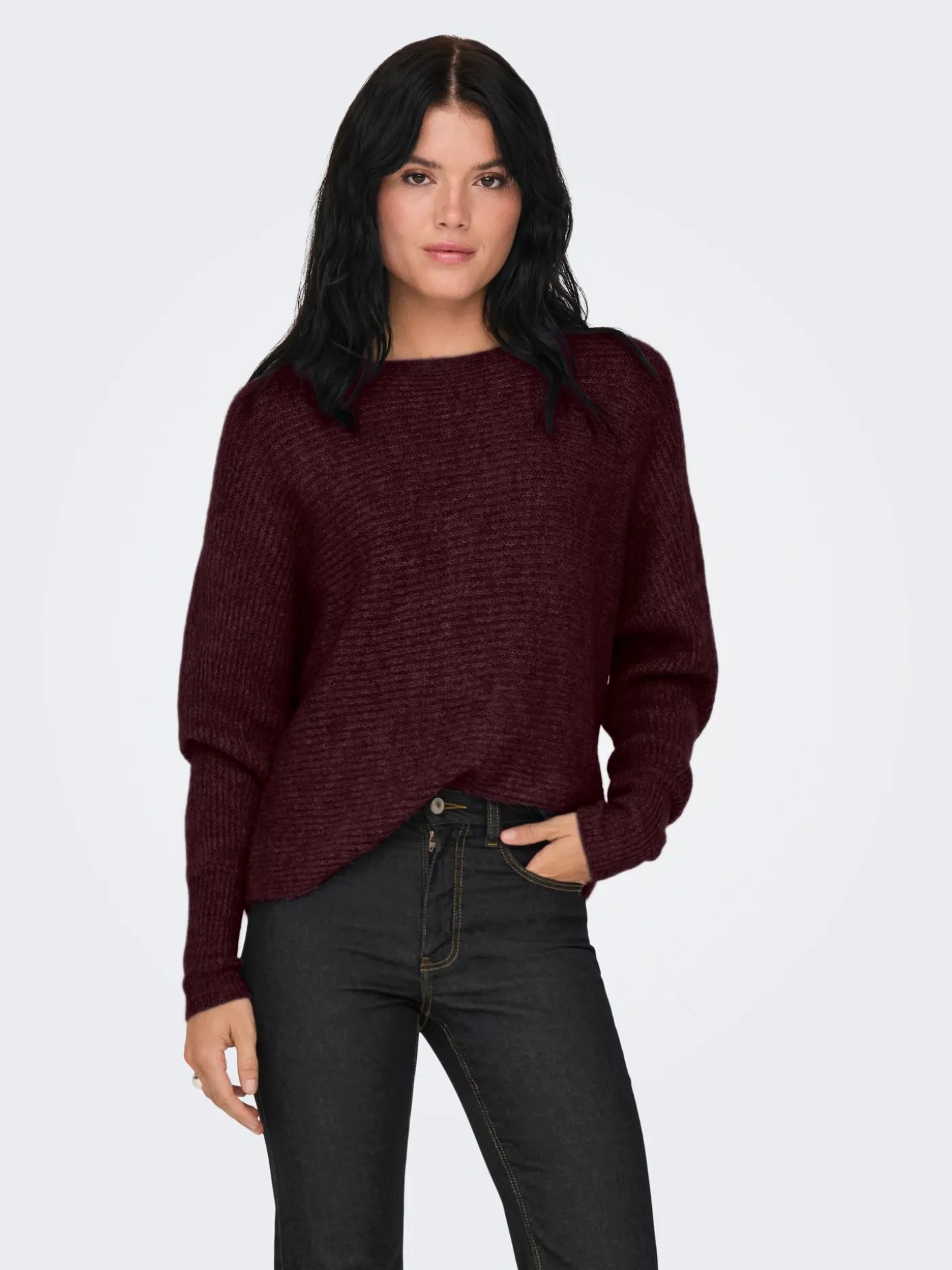 Een superzachte, harige damestrui in een diepe donkerpaarse kleur. De trui heeft een relaxed silhouet met een ronde halslijn en lange mouwen, waardoor hij perfect is voor cozy dagen. De fluffy textuur geeft een warme, luxe uitstraling en zorgt voor ultiem draagcomfort. Ideaal om casual te stylen met een jeans of als knusse laag op koudere dagen.