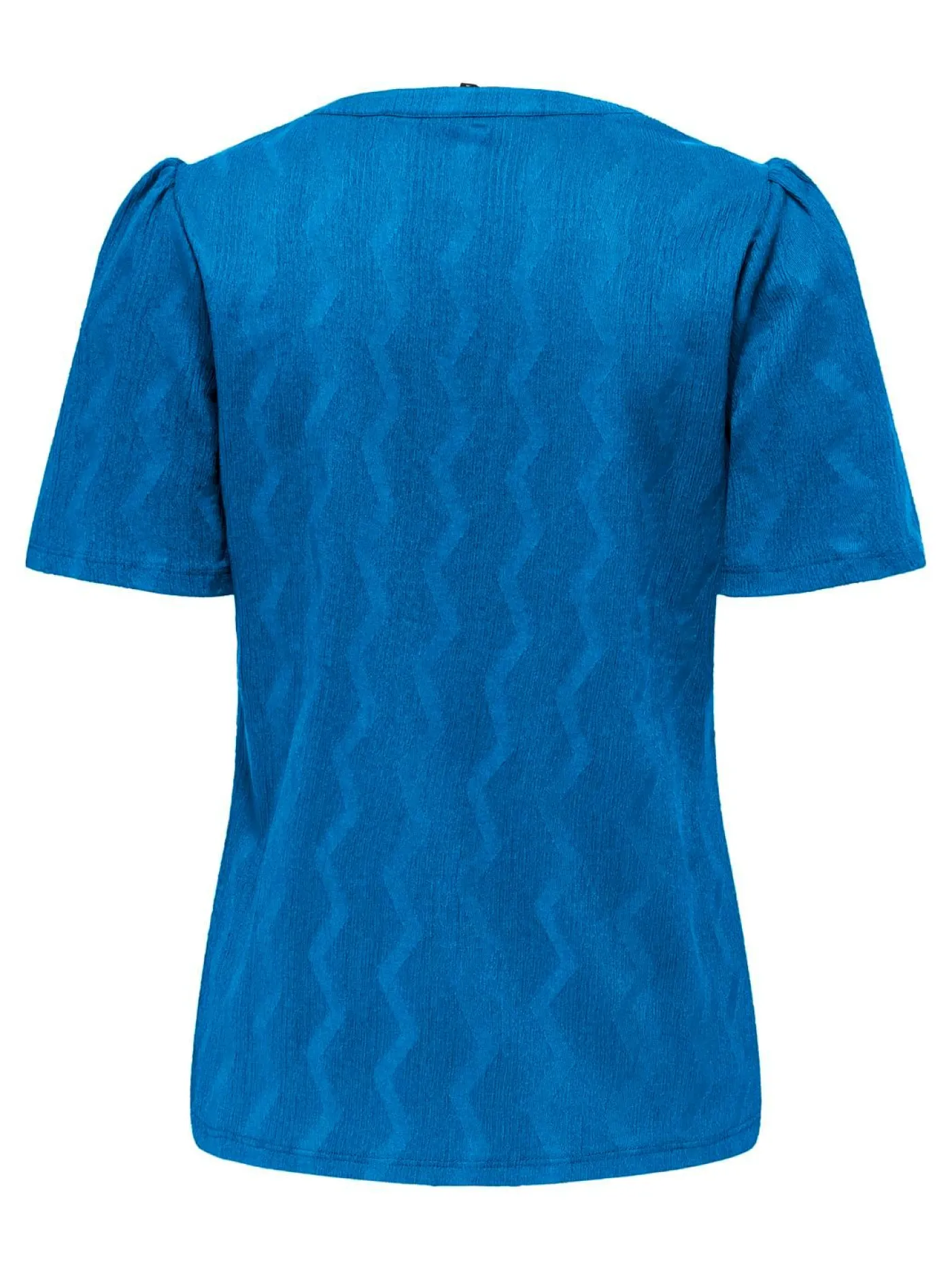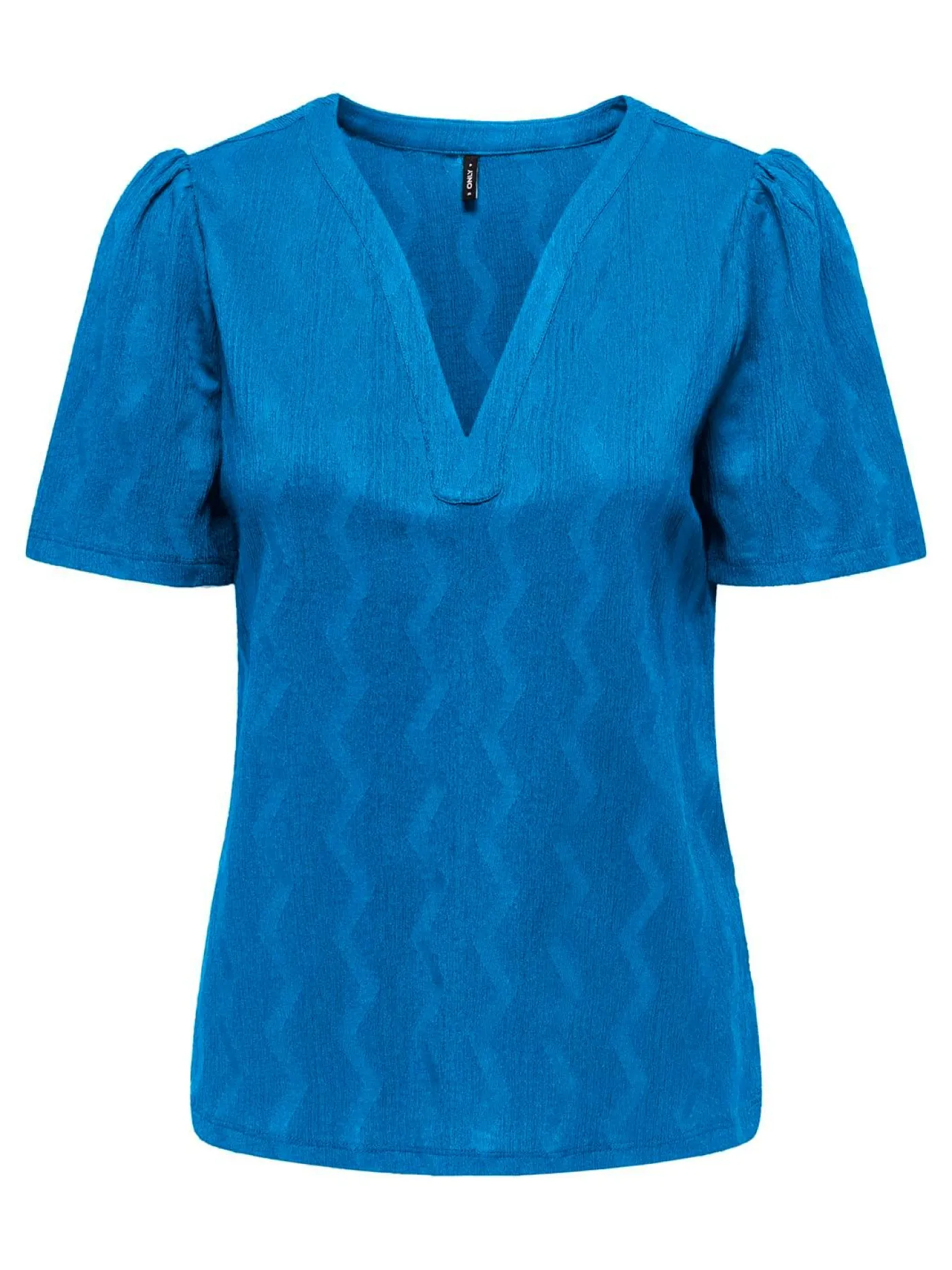 Kobalt blauwe top van het merk Only. Dit item heeft een diep v-hals en korte pofmouwen. Hij is voorzien van een zigzag patroon en is effen van kleur. Ook verkrijgbaar in het zwart.