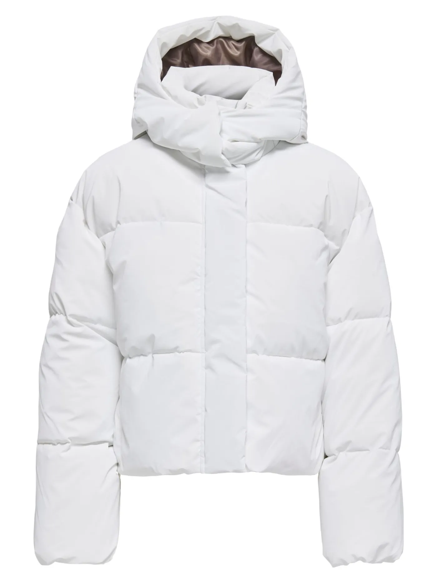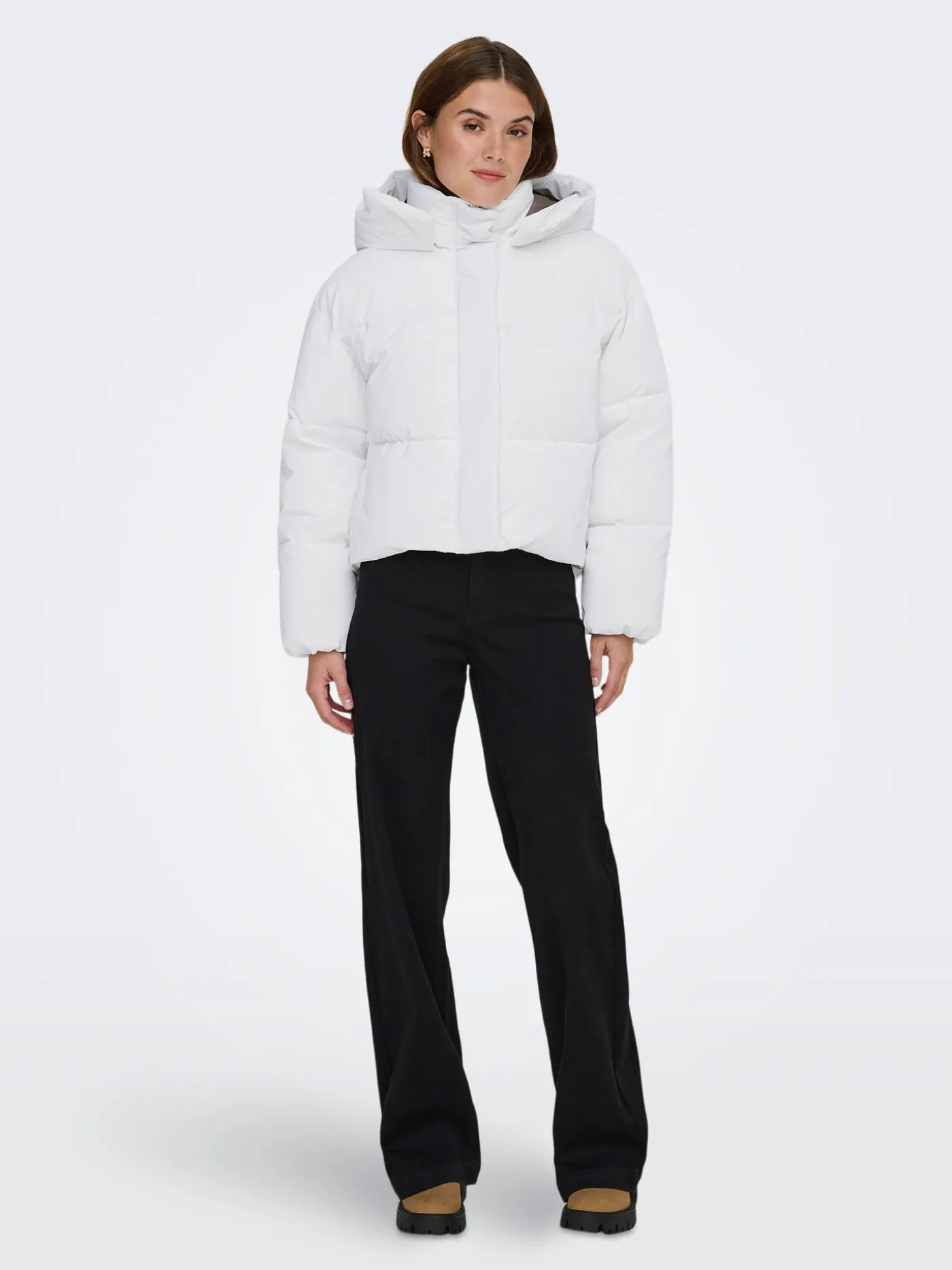 Witte puffer jas van Only. De jas is uitgevoerd in een frisse, helderwitte kleur die direct de aandacht trekt.Door de neutrale tint combineer je de jas moeiteloos met elke outfit, van casual tot sportief.De jas is voorzien van een comfortabele capuchon die aan de binnenzijde is afgewerkt met een bruine voering voor een subtiel contrast.Dankzij het tijdloze ontwerp en de neutrale kleur is dit een veelzijdig item dat je gemakkelijk kunt dragen. Perfect voor dagelijks gebruik tijdens de wintermaanden.