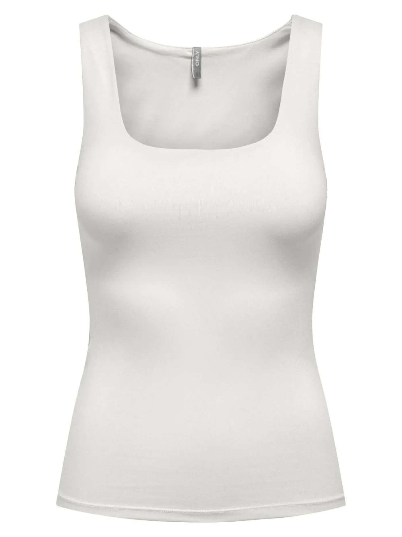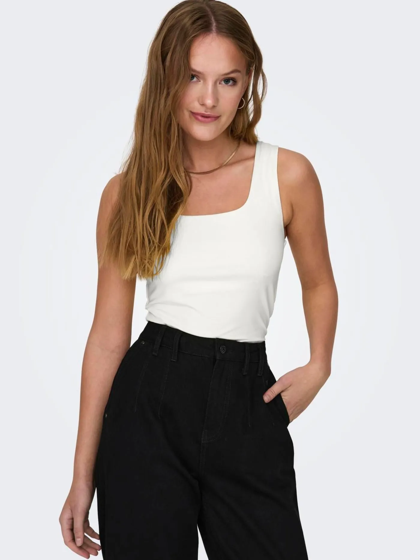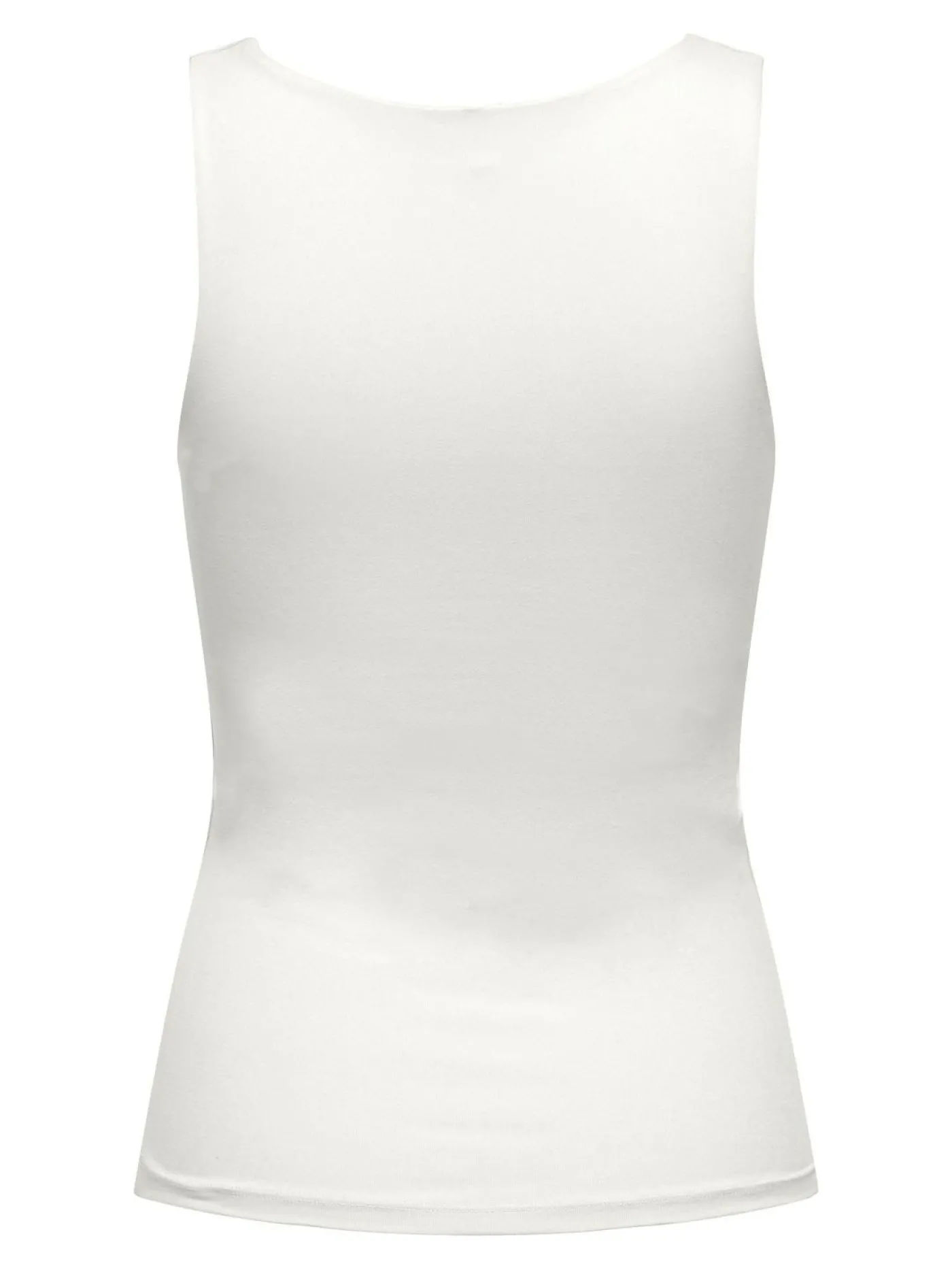 Witte mouwloze top van Only voor dames. Dit item is gemaakt van elastisch materiaal wat ervoor zorgt dat de top erg zacht en fijn aanvoelt en ook nog eens comfortabel dragt. Een voordeel van deze top is dat hij aan beide kanten te dragen is.