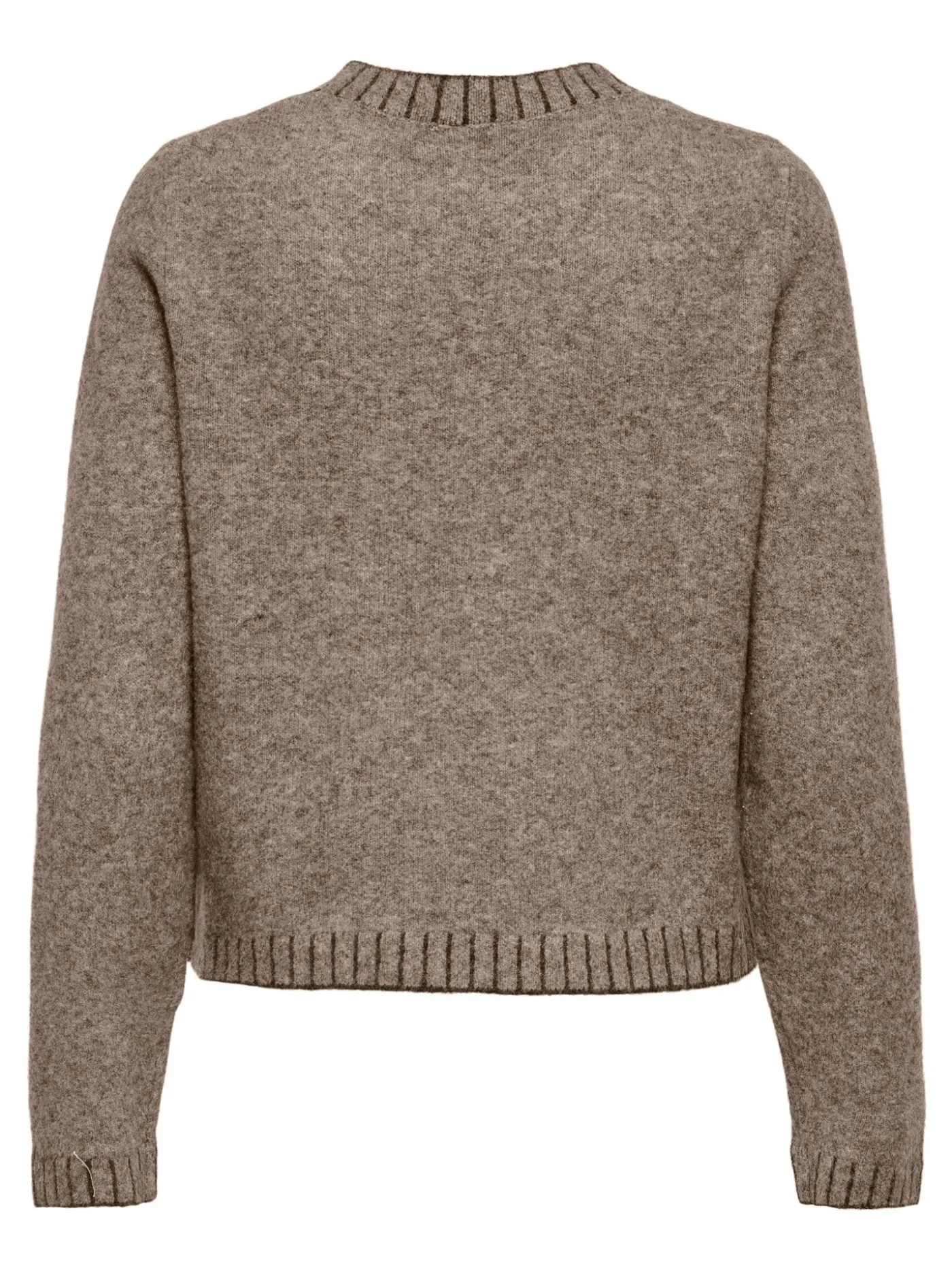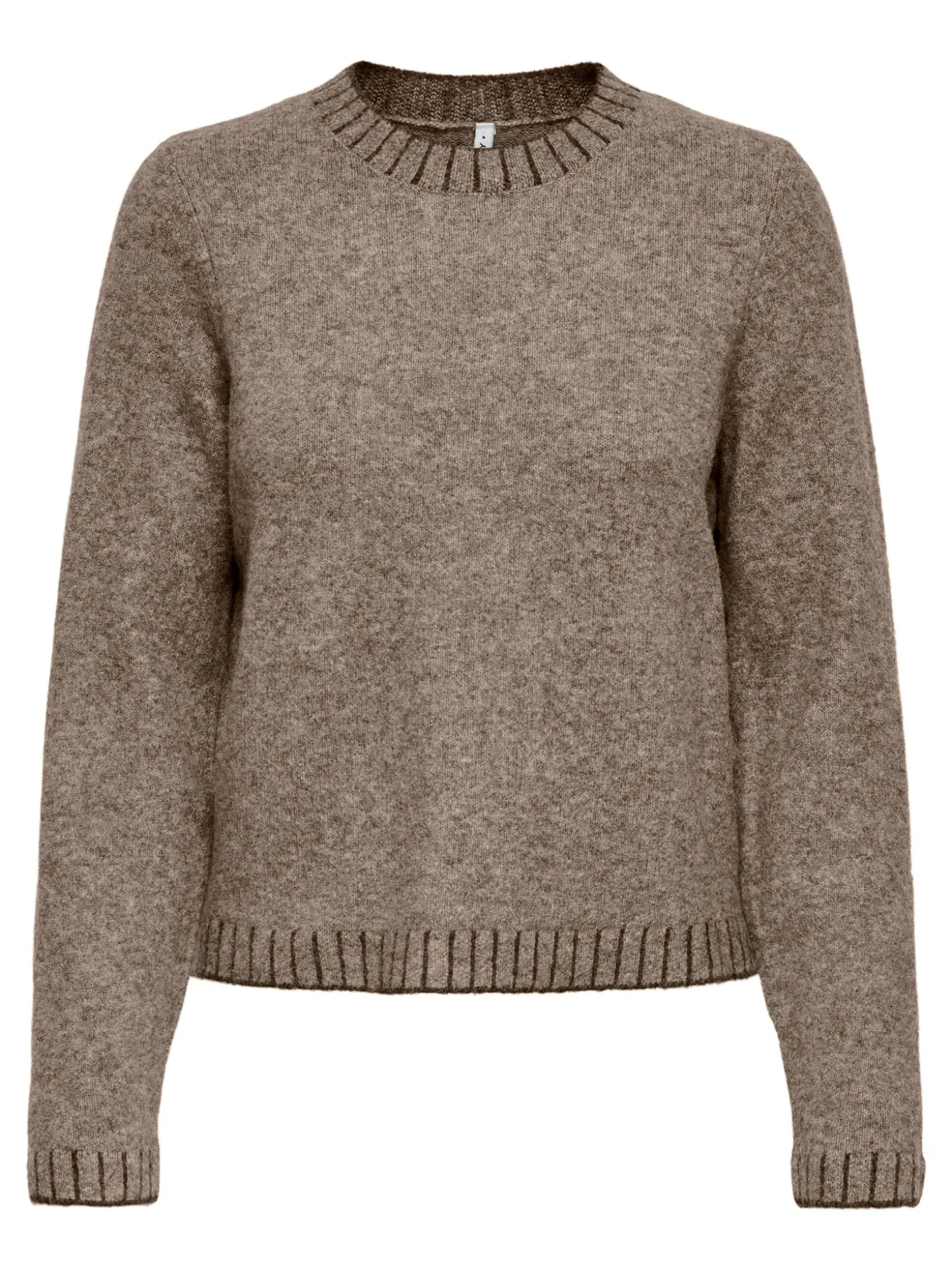 Deze warme en zachte knitwear trui van ONLY heeft een stijlvolle taupe-achtige kleur die perfect past bij elk seizoen. De trui is ontworpen met een klassieke ronde halslijn en fijne ribdetails langs de hals, mouwen en zoom, wat zorgt voor een subtiel contrast en een nette afwerking. Dankzij het comfortabele, licht pluizige breisel voelt hij heerlijk cozy aan en draagt hij moeiteloos de hele dag. Een tijdloos item dat ideaal is voor zowel casual outfits als een meer geklede look.