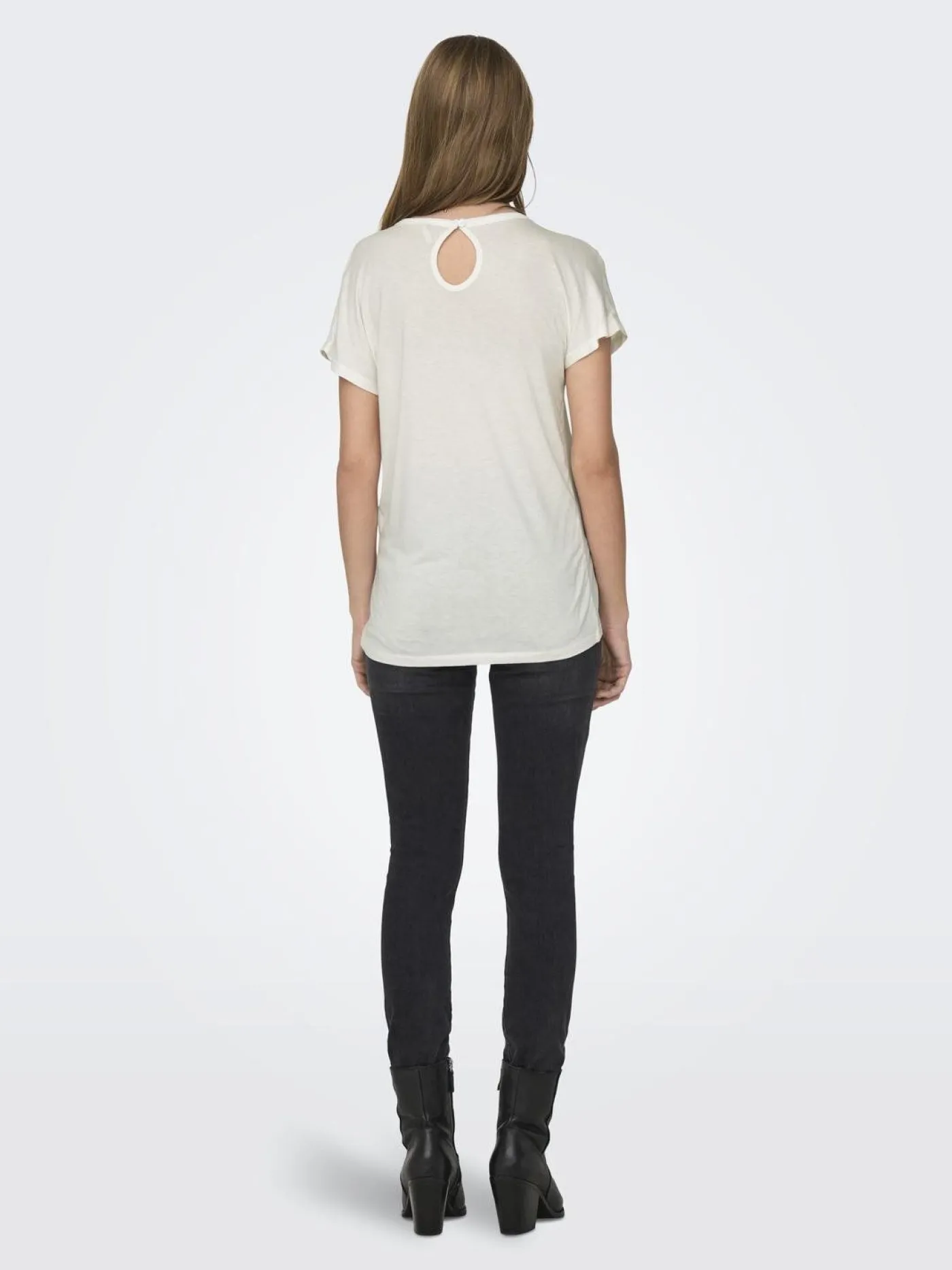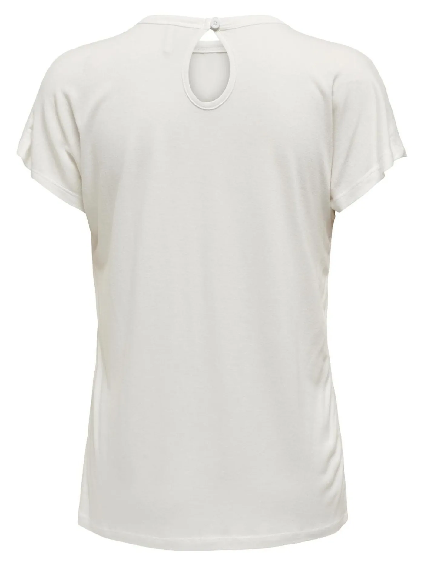 Wit T-Shirt van het merk Only voor dames. Dit item heeft korte mouwen, een ronde hals met in de nek een knoopje en dit item heeft een loose fit model. Aan de voorzijde van dit shirt staat een print.