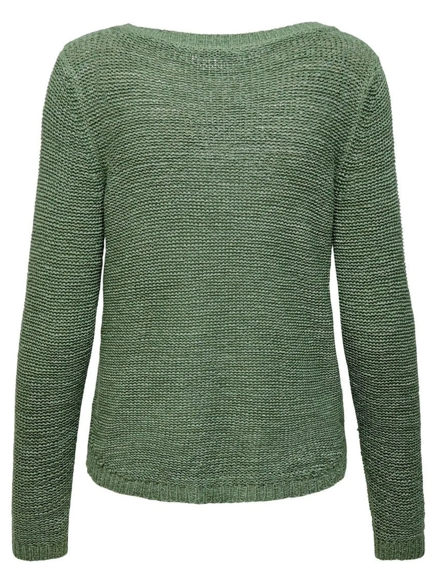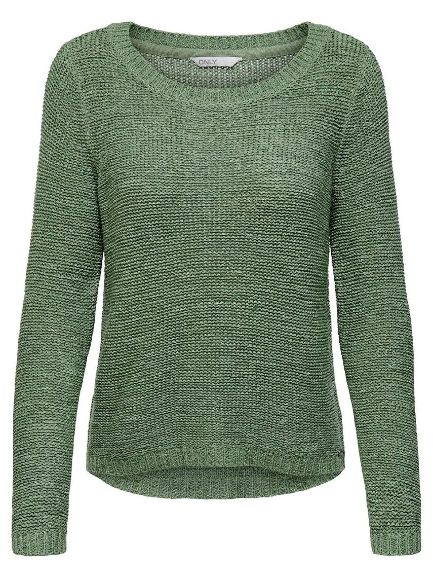Olijfgroene gebreide trui van Only. Deze trui valt wat losser en is beschikbaar in diverse kleuren. De sweater is voorzien van lange mouwen en een ronde halslijn. De achterkant valt net iets langer, dit geeft een leuk effect.