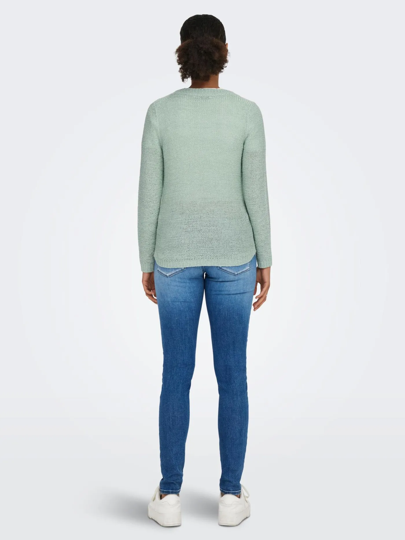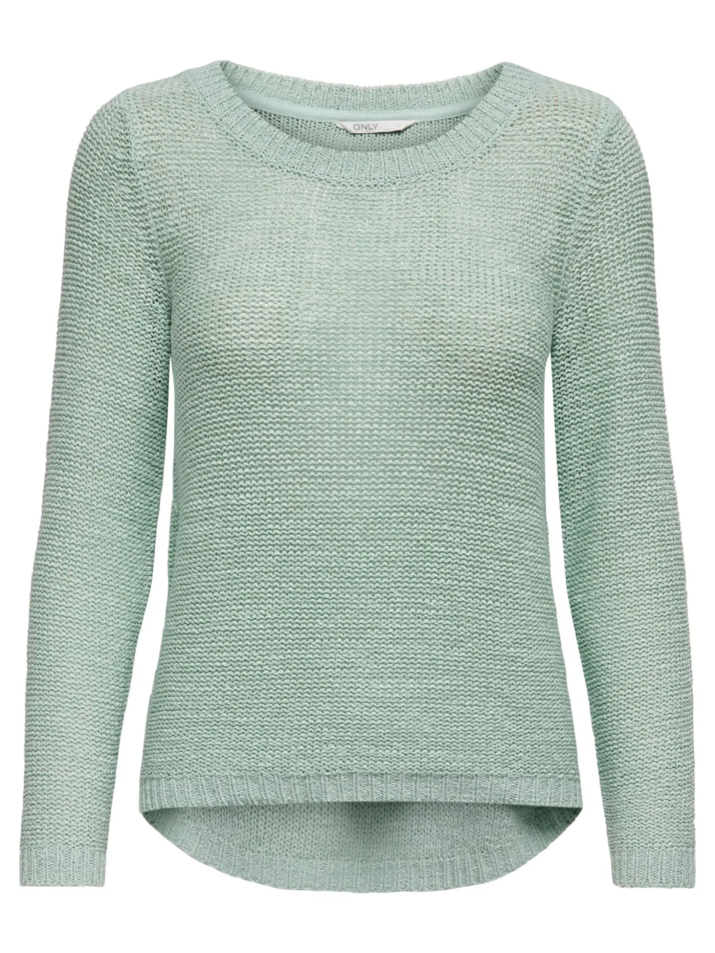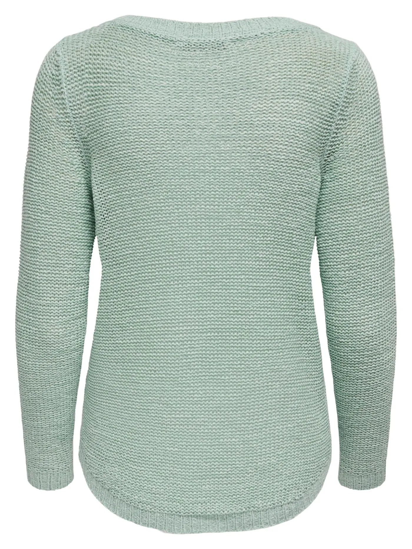 Mintgroene gebreide trui van Only. Deze trui valt wat losser en is beschikbaar in diverse kleuren. De sweater is voorzien van lange mouwen en een ronde halslijn. De achterkant valt net iets langer, dit geeft een leuk effect.