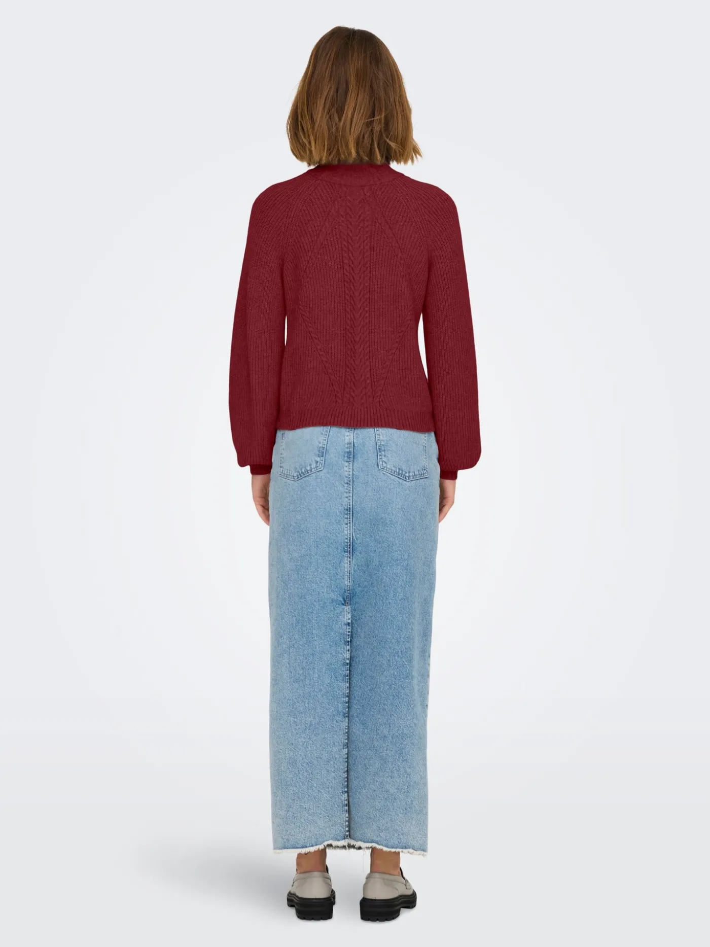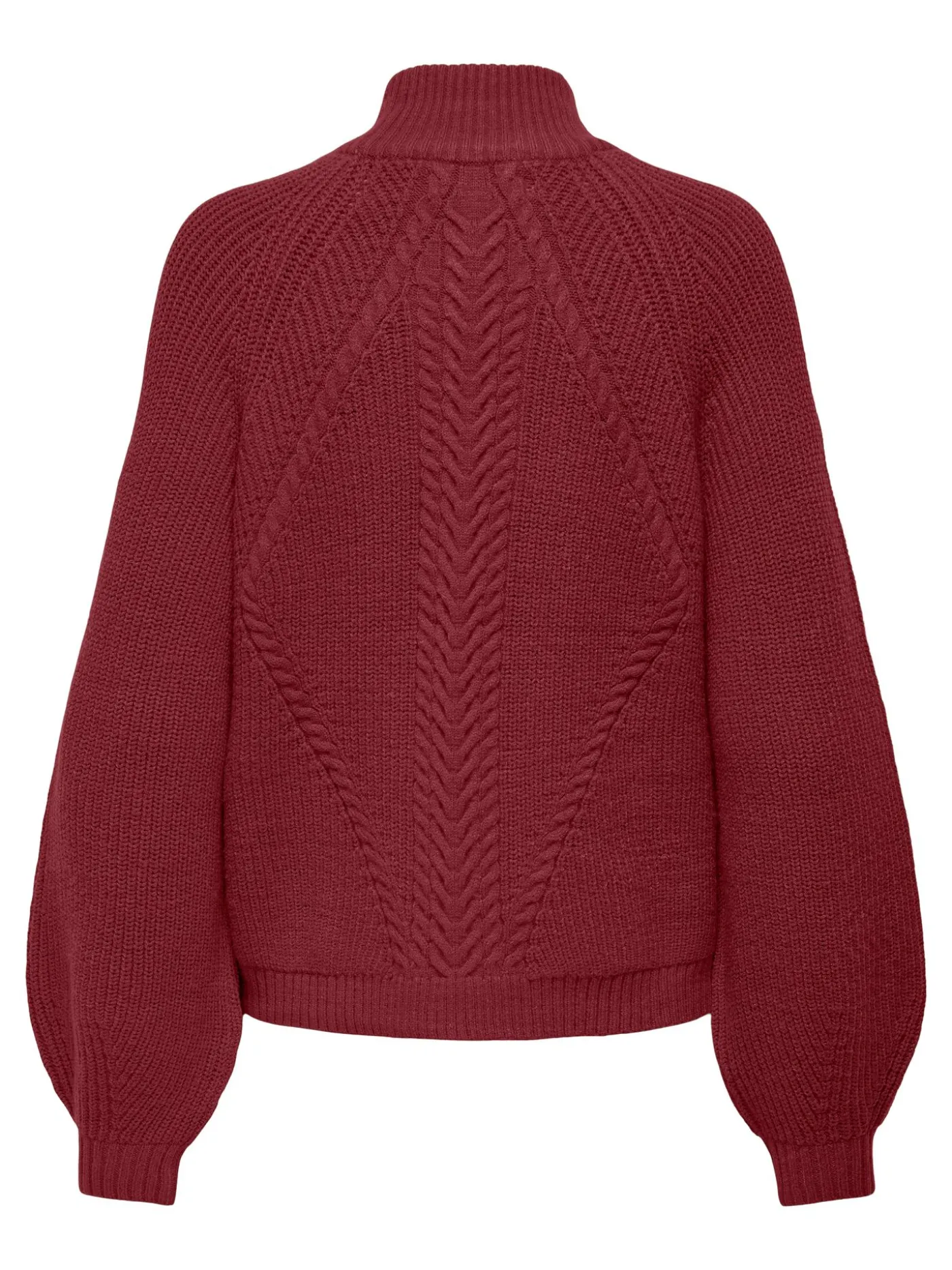 Deze rode sweater van Only voor dames heeft een iets hogere kraag en een mooie, gestructureerde stof die de trui een stijlvolle uitstraling geeft. Het zachte materiaal en de losvallende pasvorm zorgen voor optimaal draagcomfort. Perfect te combineren met een zwarte jeans voor een casual-chique look. Een warme en trendy basic voor je garderobe.