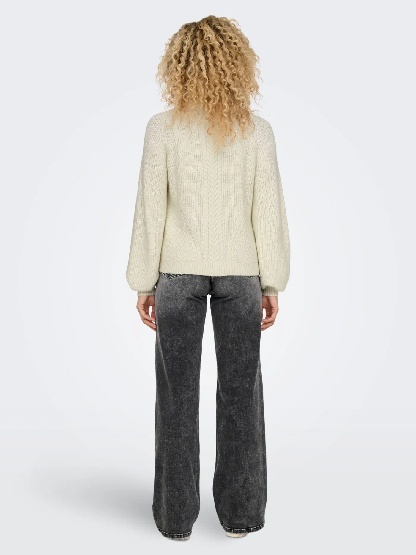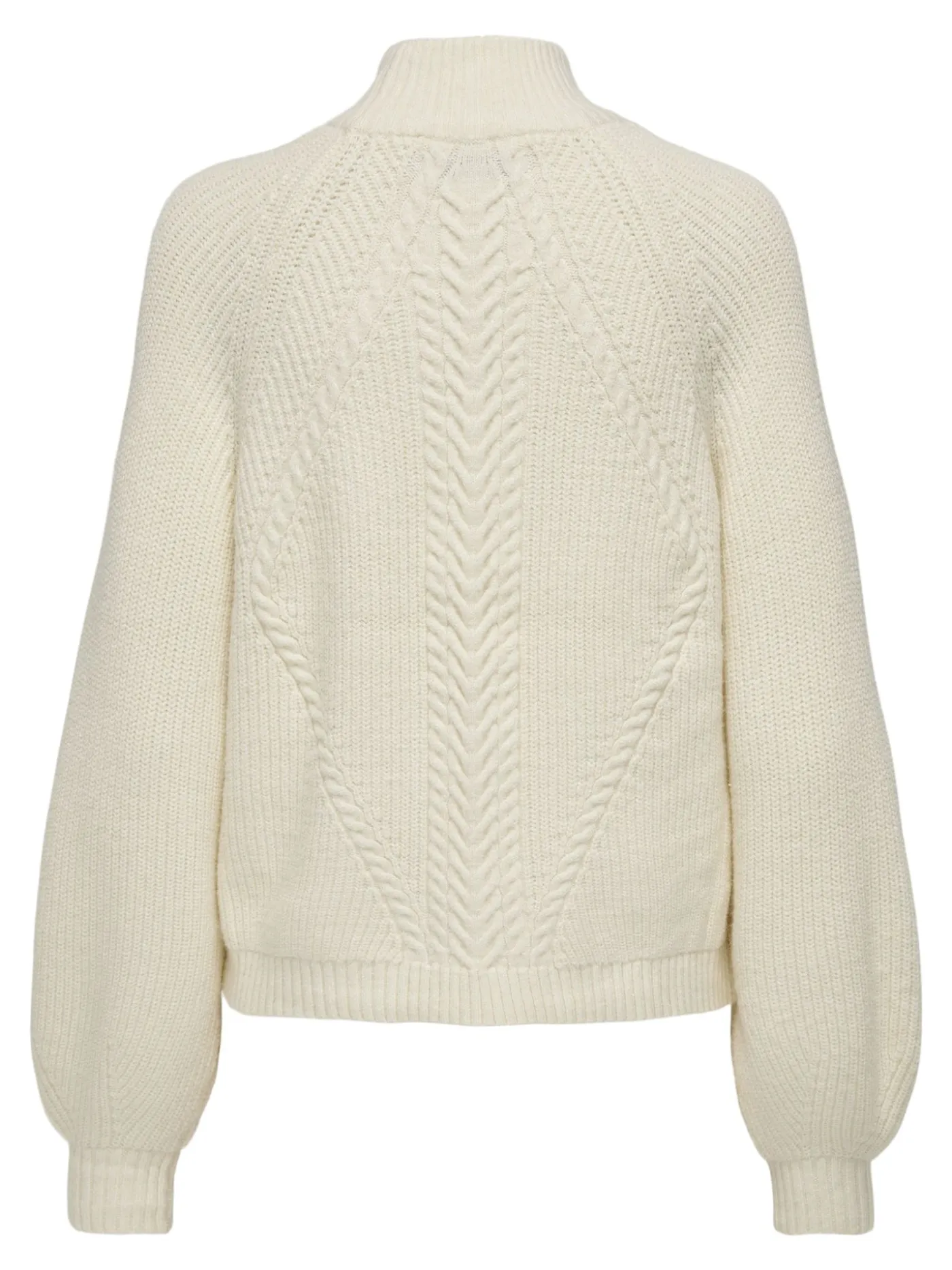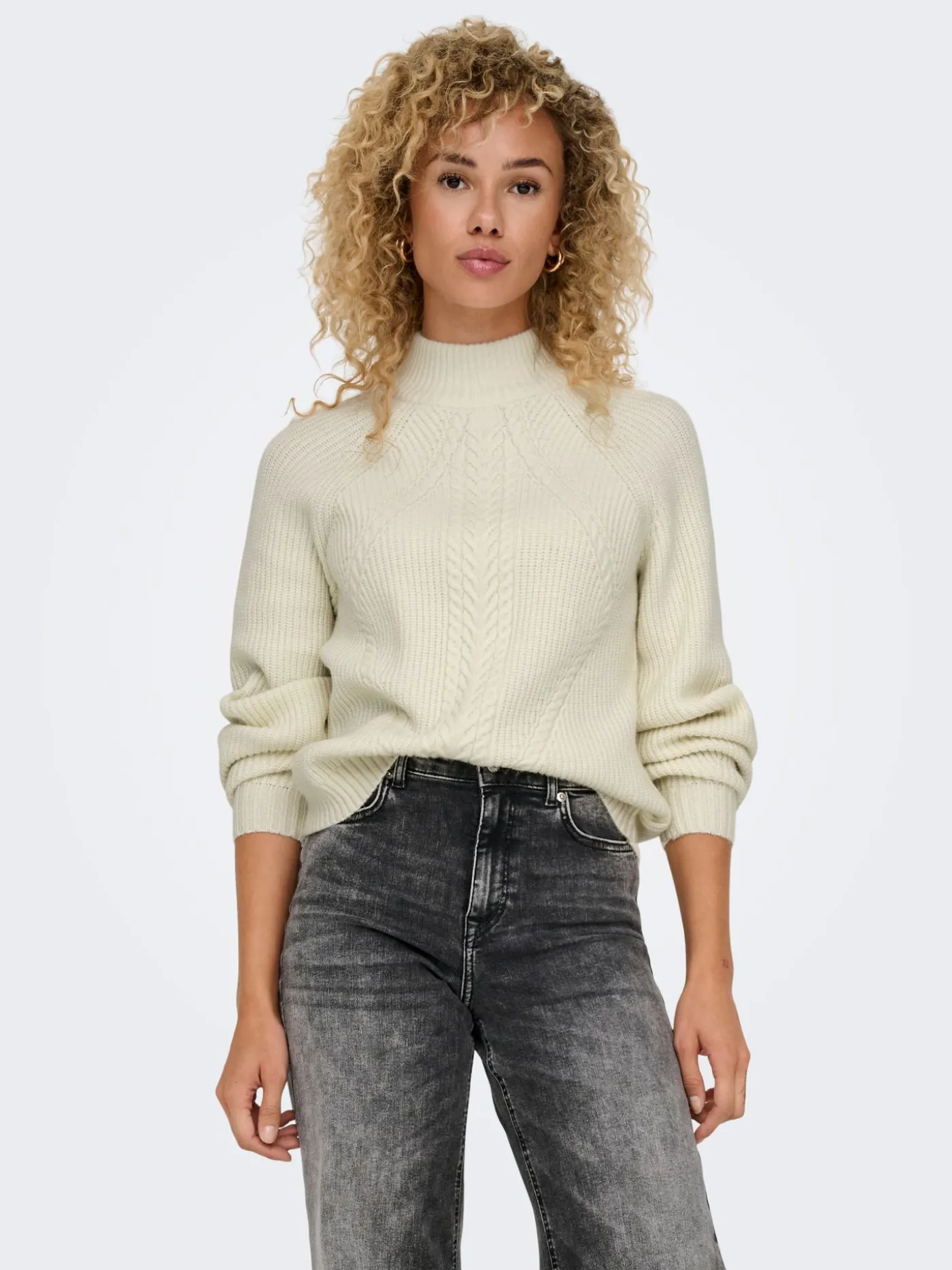 Deze witte sweater van Only voor dames heeft een iets hogere kraag en een mooie, gestructureerde stof die de trui een stijlvolle uitstraling geeft. Het zachte materiaal en de losvallende pasvorm zorgen voor optimaal draagcomfort. Perfect te combineren met een zwarte jeans of andere casual items voor een frisse, chique look. Een veelzijdige en warme basic voor je garderobe.