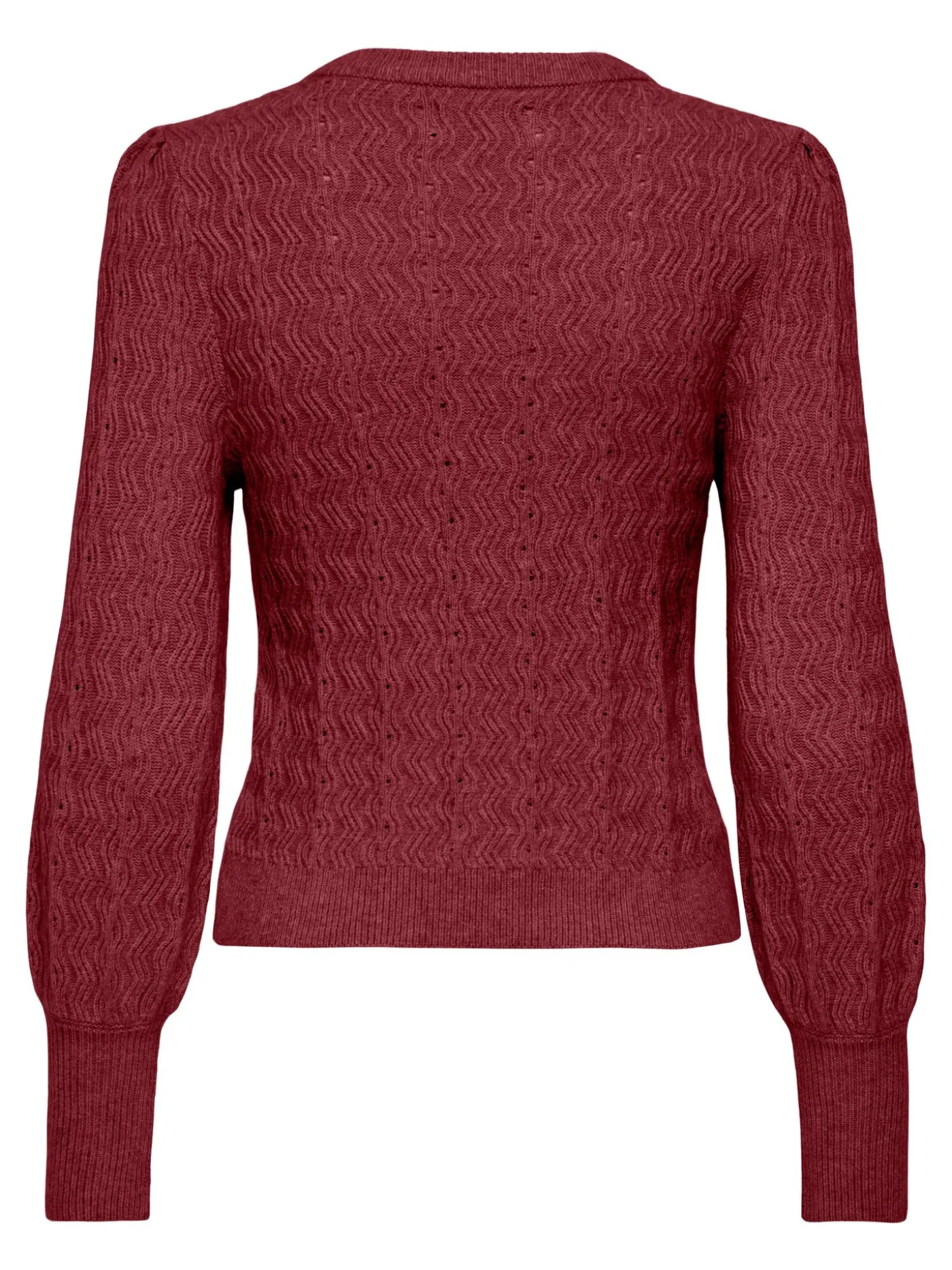 Deze korte rode sweater van Only is een echte blikvanger voor elke outfit. De mooie structuur in de stof geeft een stijlvolle en moderne uitstraling. Het zachte materiaal voelt comfortabel aan en is perfect voor dagelijks gebruik. Dankzij de cropped pasvorm combineer je hem moeiteloos met een hoge jeans of rok. Een trendy en veelzijdig item dat kleur en karakter toevoegt aan je garderobe.