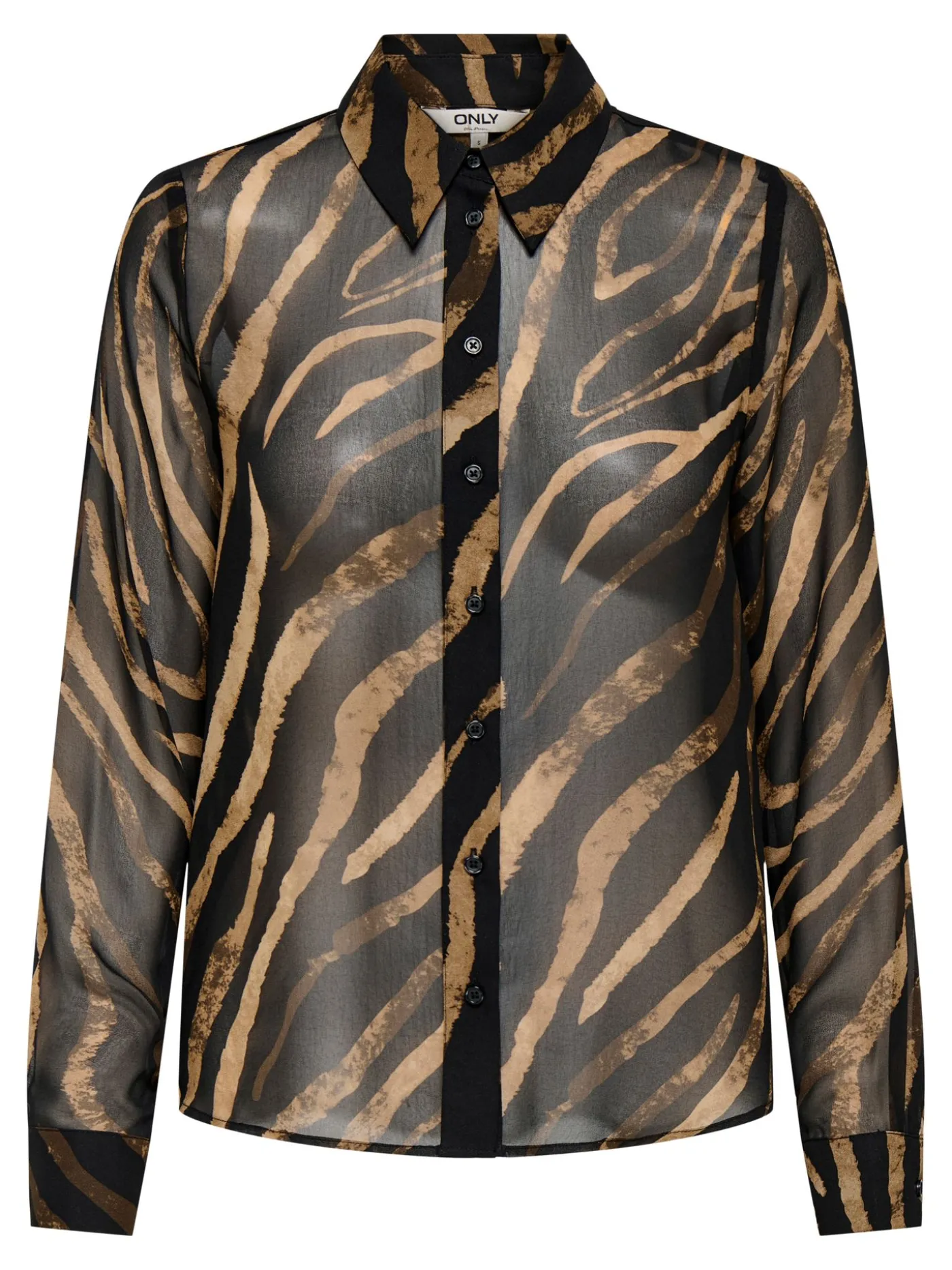 Deze losvallende blouse van Only combineert elegantie met een trendy look. Het doorschijnende zwarte materiaal is subtiel versierd met bruine strepen voor een speels effect. De lichte stof voelt zacht aan op de huid en valt soepel over het lichaam. Dankzij de relaxte pasvorm draag je de blouse comfortabel de hele dag. Perfect te combineren met jeans, rokken of shorts voor een stijlvolle, casual outfit.