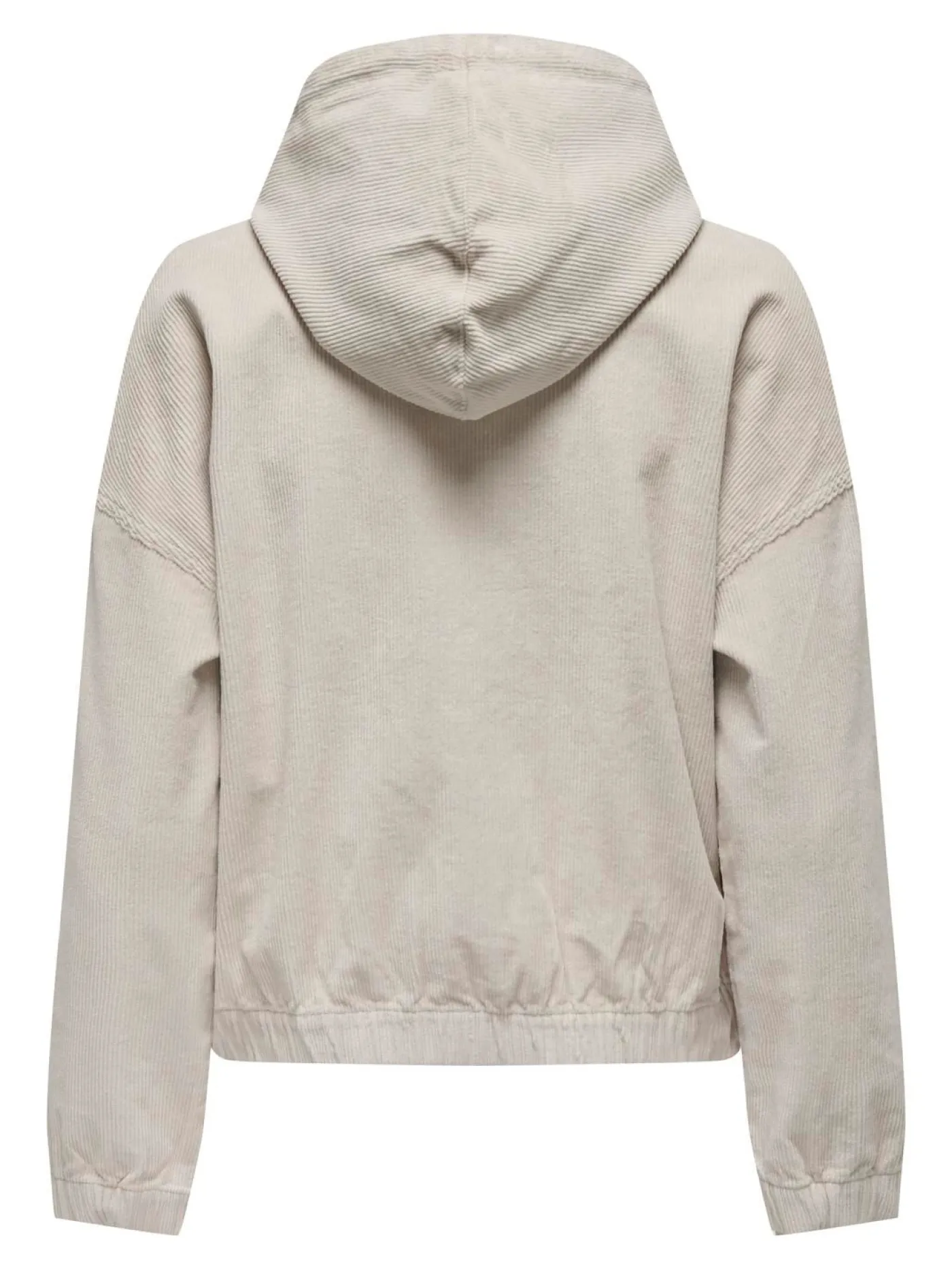Deze zomerjas is van de nieuwe collectie van Only. Hij is gemaakt van een ribstof, heeft een ritssluiting en een capuchon met trekkoord. Ook aan de onderkant heeft de jas een trekkoord waarmee je de jas kunt aantrekken. De jas heeft aan de voorkant twee klepzakken.