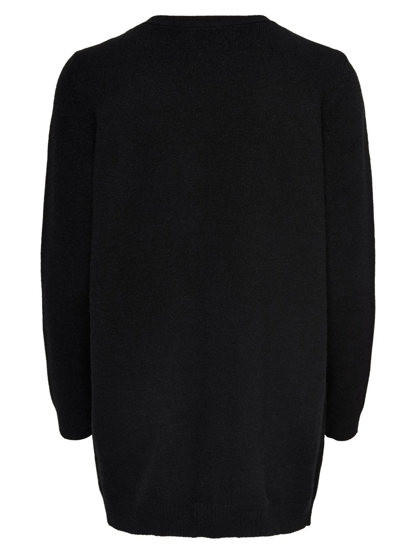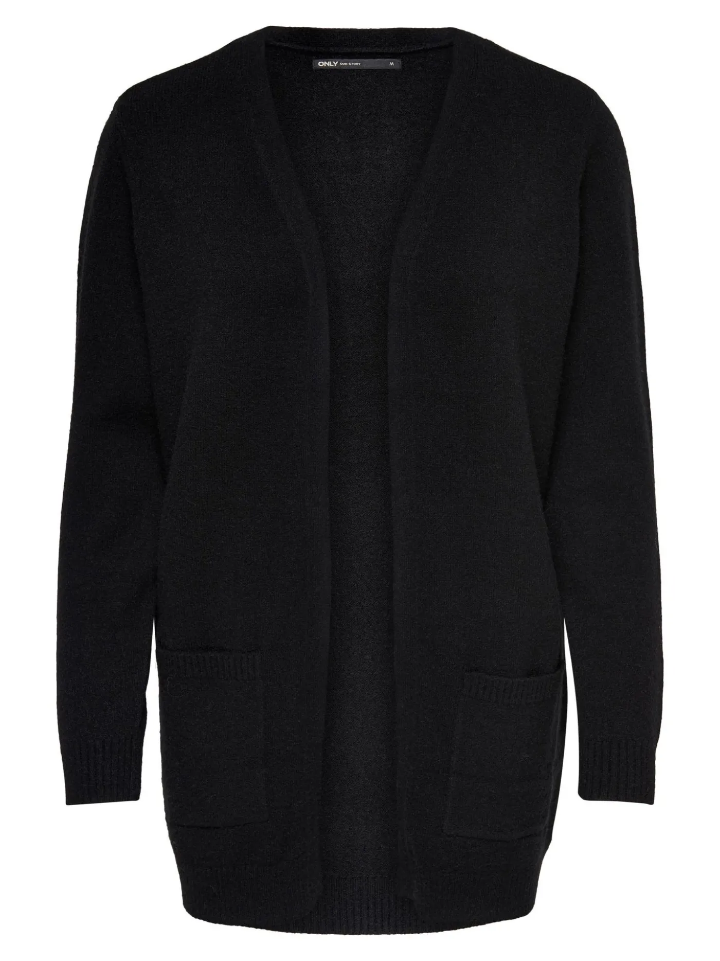 Dit fijn gebreide vest voor dames van Only is gemaakt van een viscosemix. Het model heeft een openvallende hals en lange mouwen. Het vest is zwart en heeft twee steekzakken.