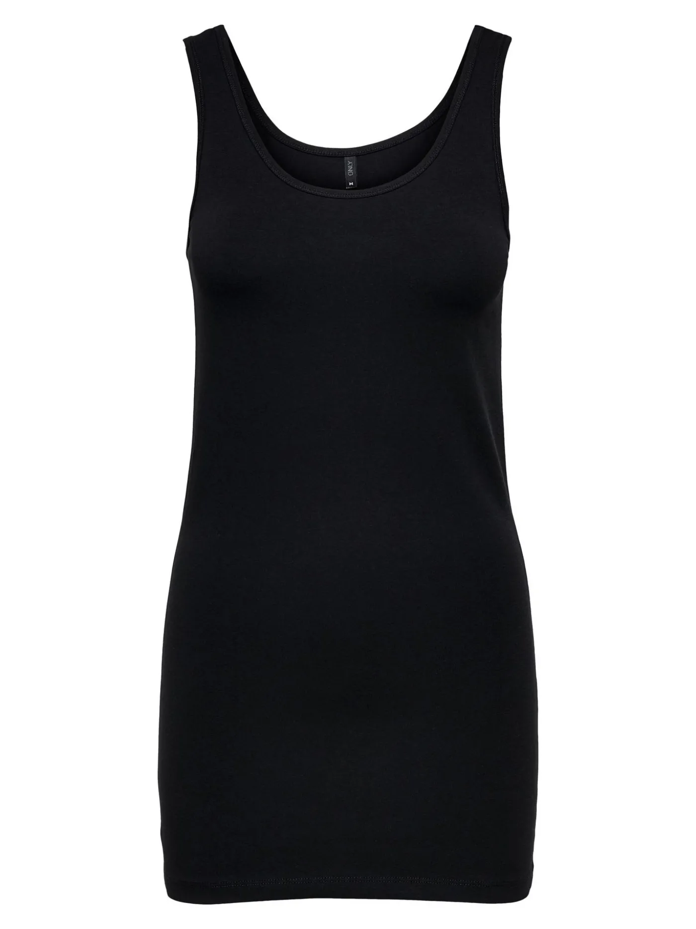Deze tanktop van Only is ideaal om in je kast te hebben. De top heeft een ronde hals en is extra lang. Je kan hem zowel onder een trui of jasje dragen als extra laag of gewoon op een jeans voor een casual fit.