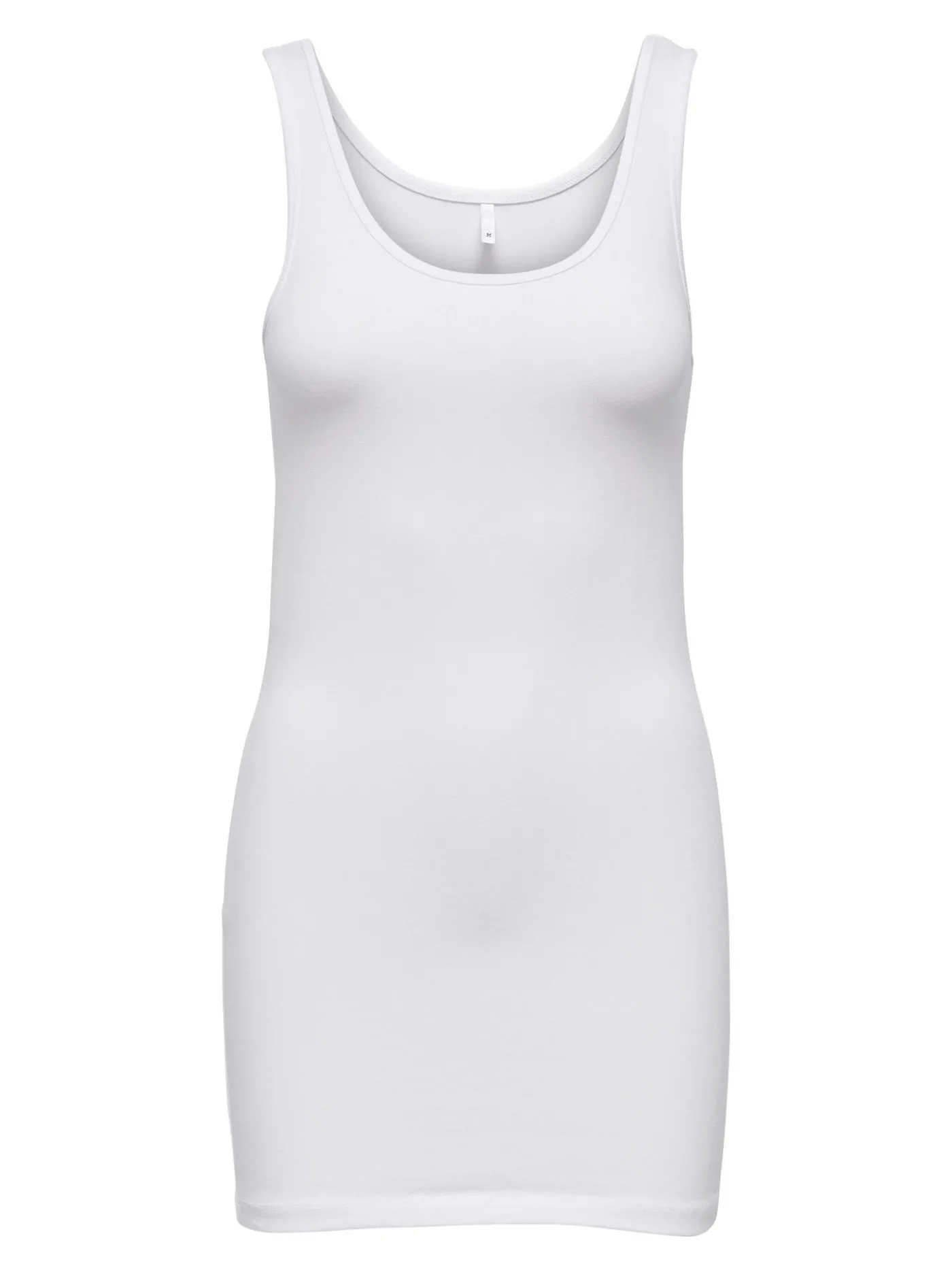 Deze tanktop van Only is ideaal om in je kast te hebben. De top heeft een ronde hals en is extra lang. Je kan hem zowel onder een trui of jasje dragen als extra laag of gewoon op een jeans voor een casual fit.
