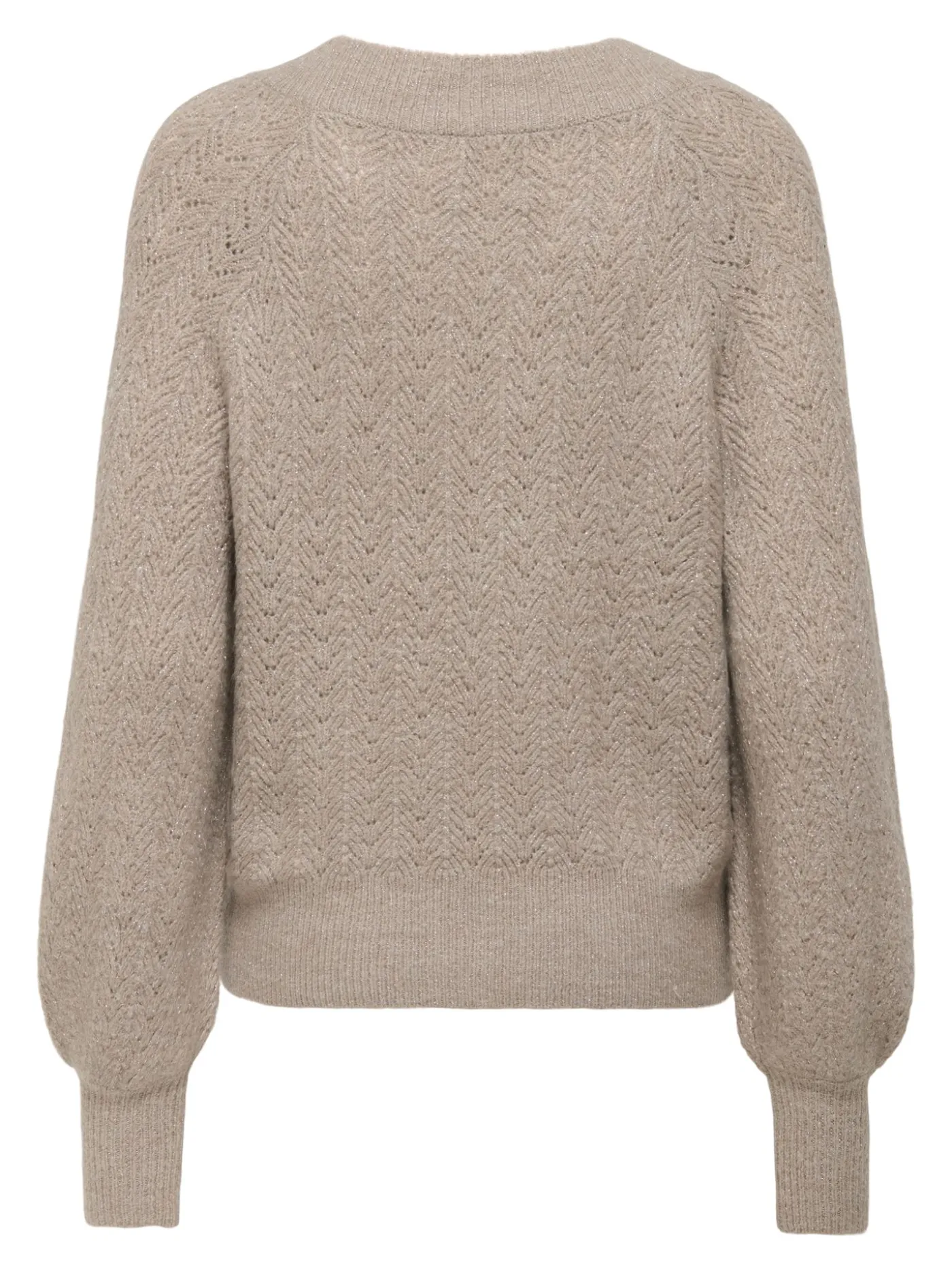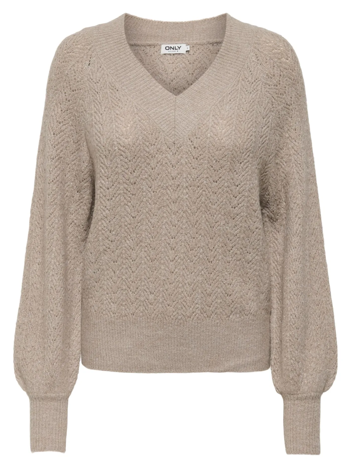 Deze trui van ONLY heeft een elegante en feestelijke uitstraling dankzij de subtiele glitters die over de hele trui zijn verwerkt. De zachte stof voelt comfortabel aan en maakt hem perfect voor zowel alledaags gebruik als speciale gelegenheden. De V-hals geeft het ontwerp een vrouwelijke en verfijnde touch. Dankzij de tijdloze pasvorm is de trui makkelijk te combineren met zowel jeans als rokjes. Een stijlvolle keuze voor wie houdt van een beetje sparkle.