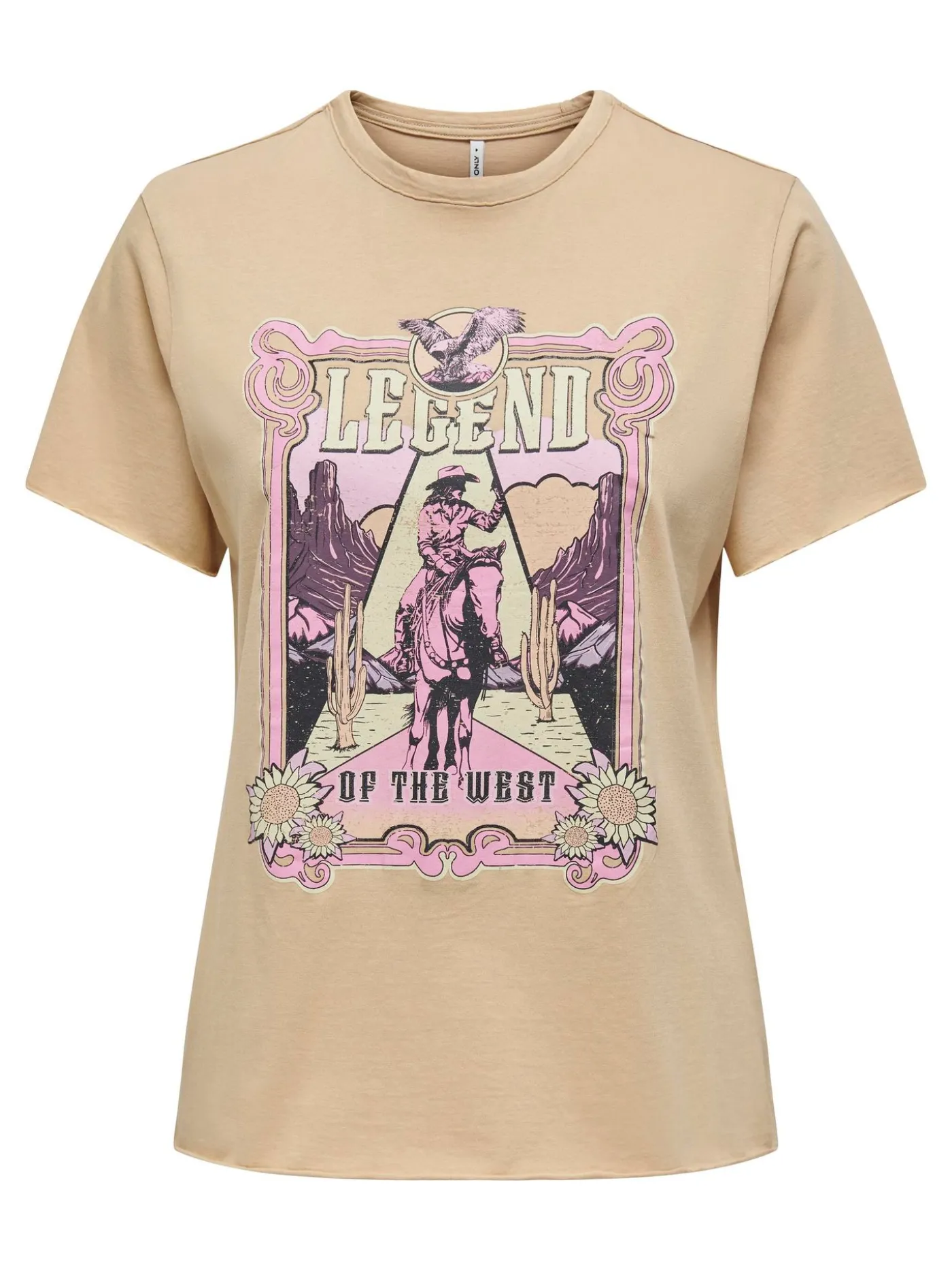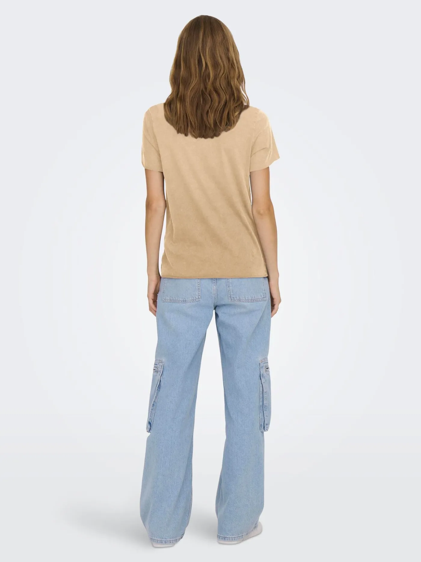 Kleurrijk shirt van het merk Only met een ronde hals en korte mouwen. De letters in de print hebben glitters wat voor een extra leuk detail zorgt. Het shirt is trendy te combineren met een lichte wassing jeans met bijbehorende sneakers. Het model is gemaakt uit 100% biologisch katoen.