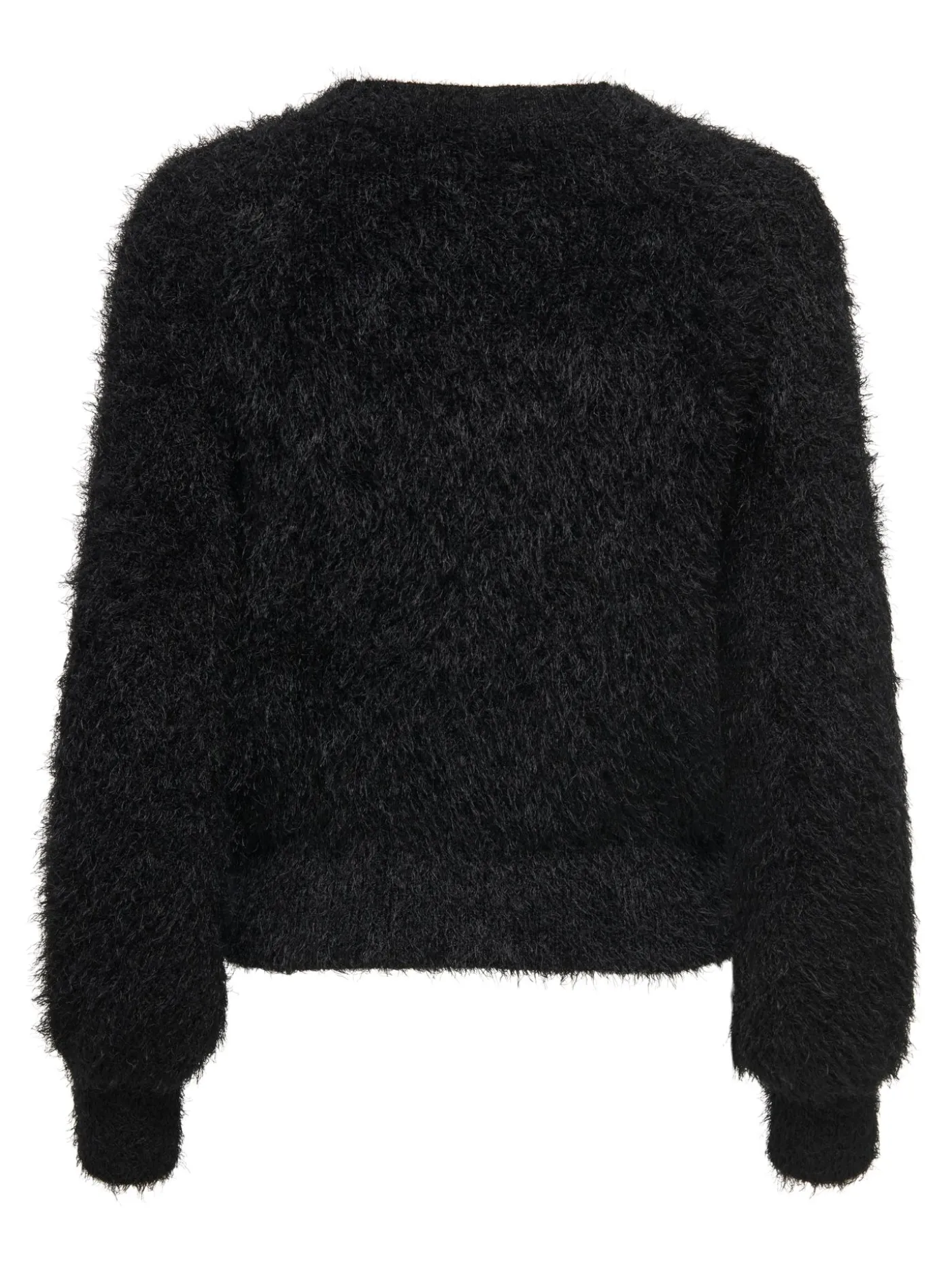 Deze zwarte fluffy trui voor dames heeft een heerlijk zachte buitenkant en een losvallende fit voor optimaal comfort. De warme en cozy stof maakt de trui perfect voor koude dagen, terwijl het stijlvolle design makkelijk te combineren is met jeans, pantalons of rokken. Een zachte, trendy basic voor elke garderobe.