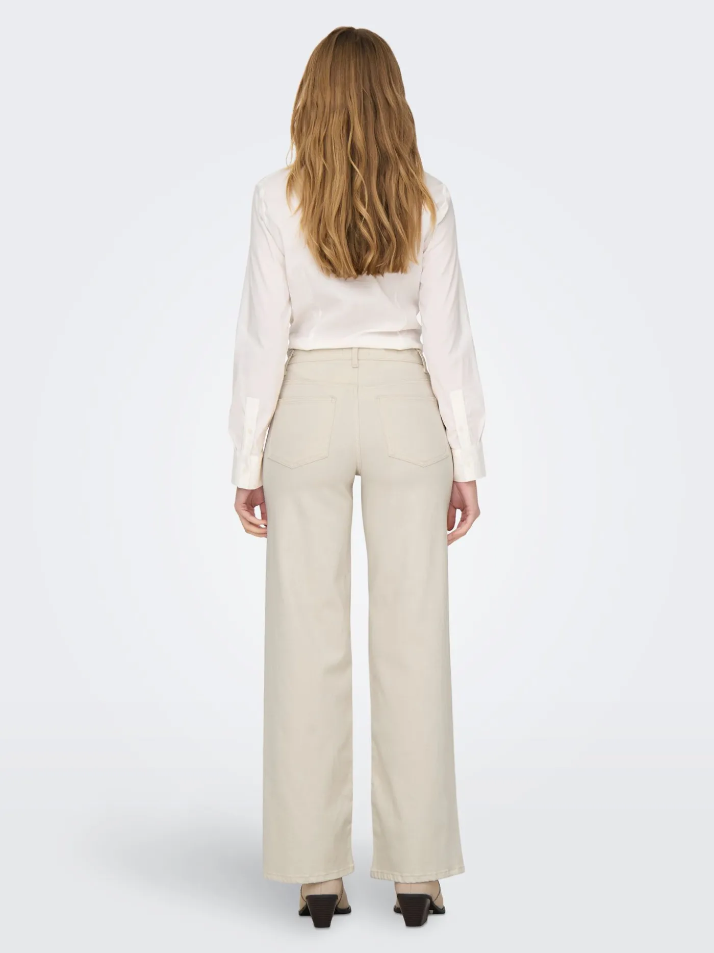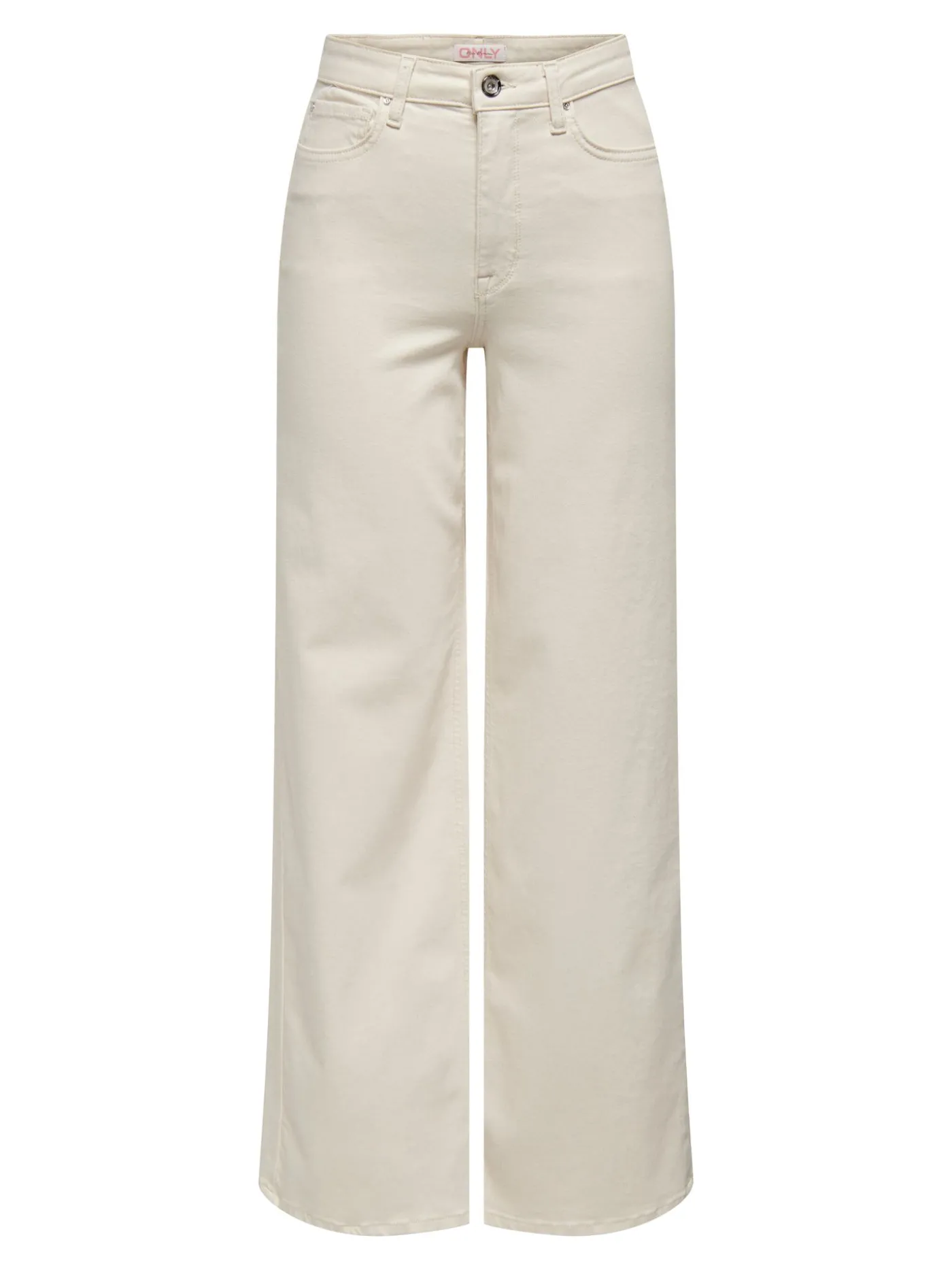 Creme kleurige broek van het merk Only. Het model is straight en is Highwaist. De jeans heeft een beetje stretch en heeft twee zakken aan de voorzijde en de achterzijde.