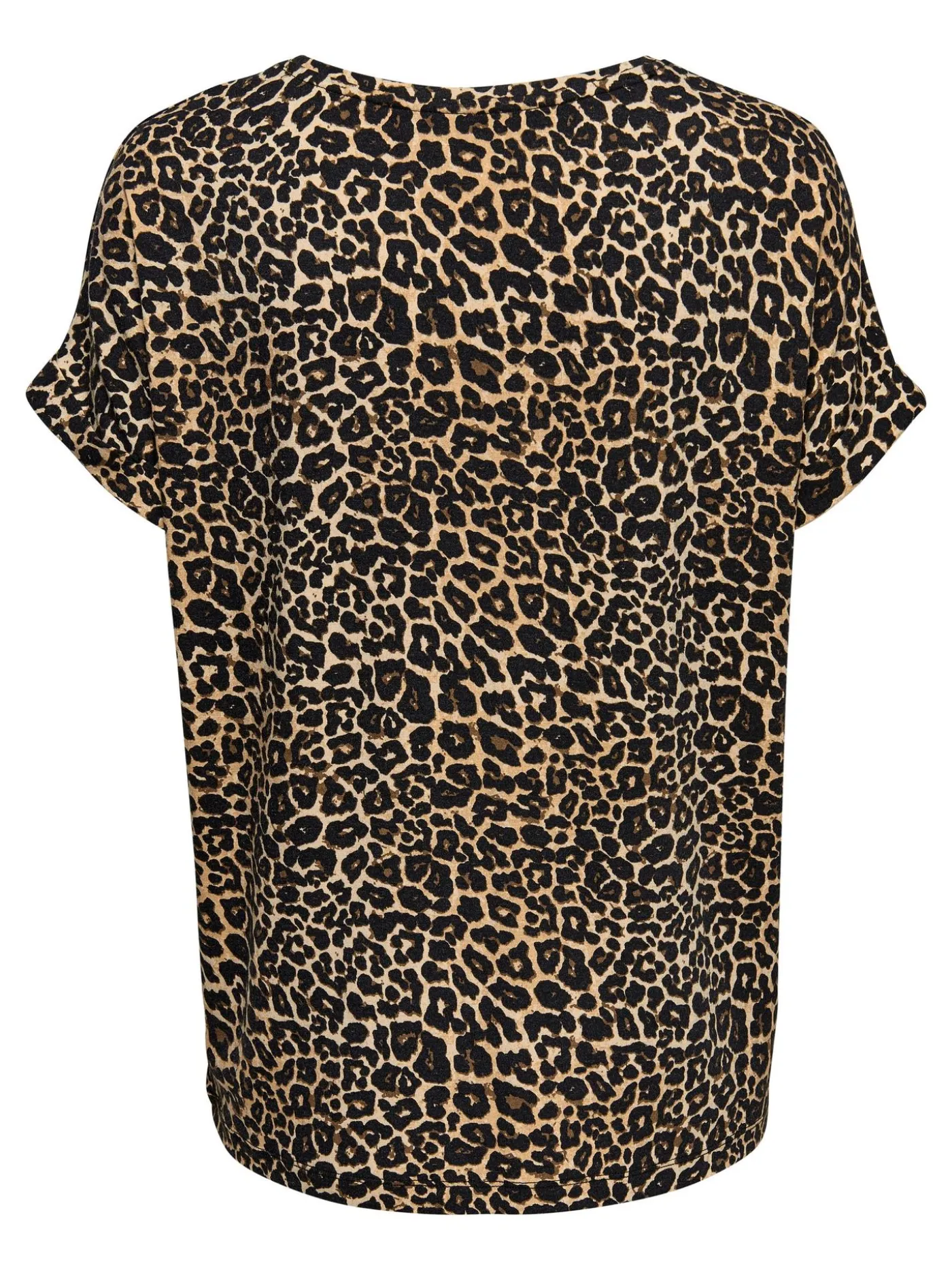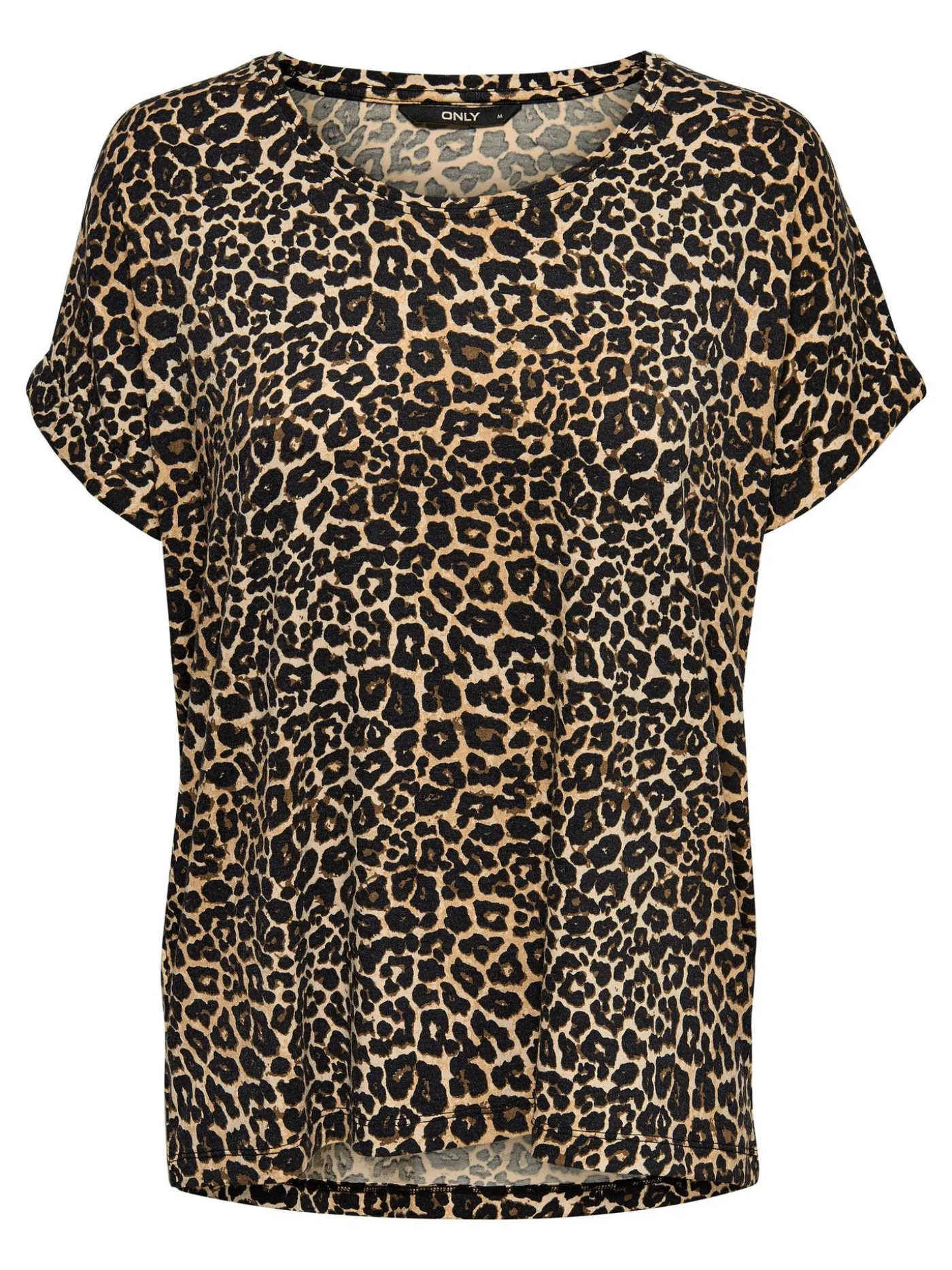 Deze top van de Only met panter print bevat veel stretch. De top heeft korte omgeslagen mouwen en een ronde hals. Combineer deze top bijvoorbeeld met een flared jeans van de Only.