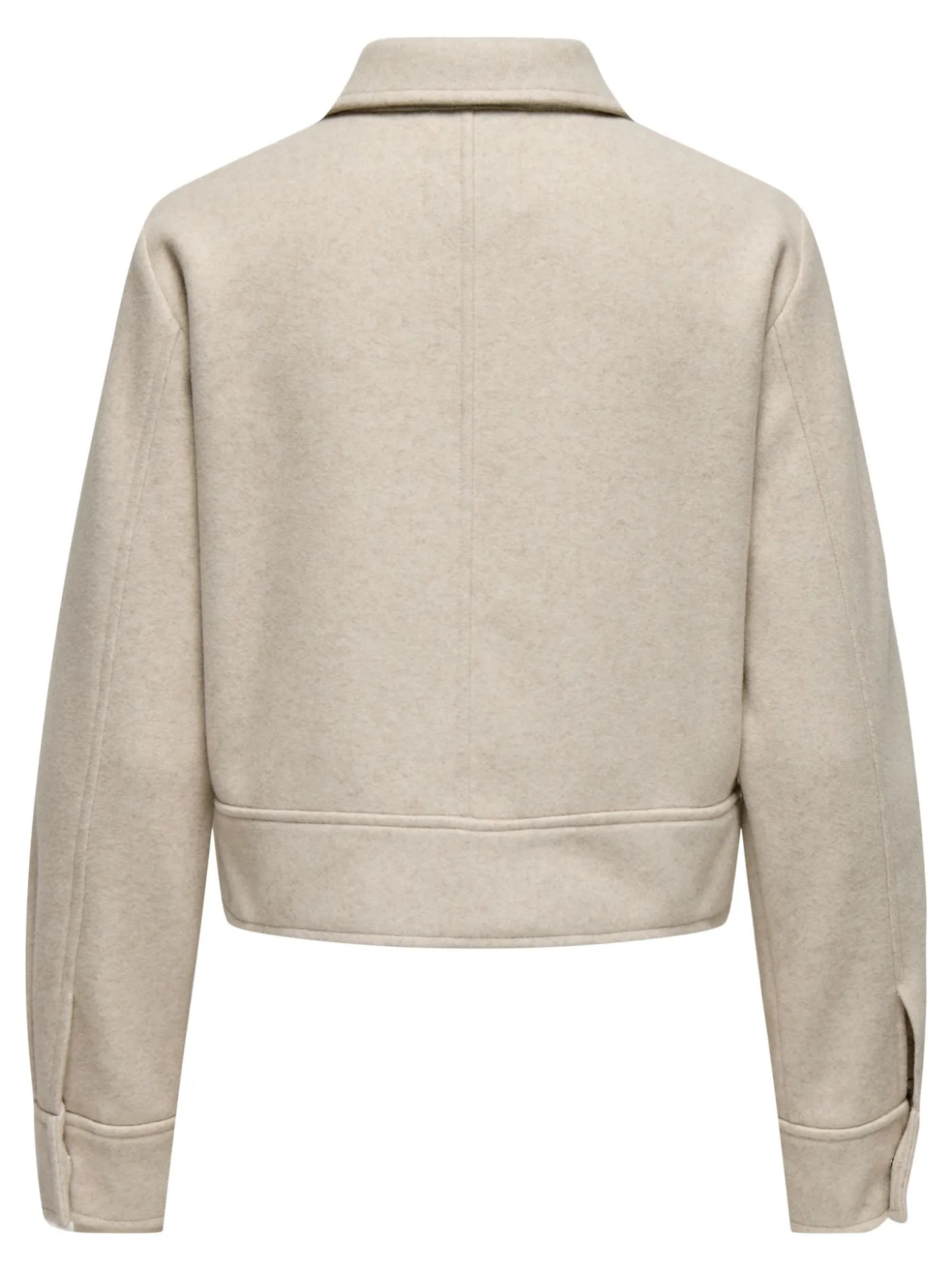 Dit toffe jasje is van het merk Only. De jas heeft een beige kleur heeft een rits en heeft twee borst zakken. Het is een super item voor komend najaar.