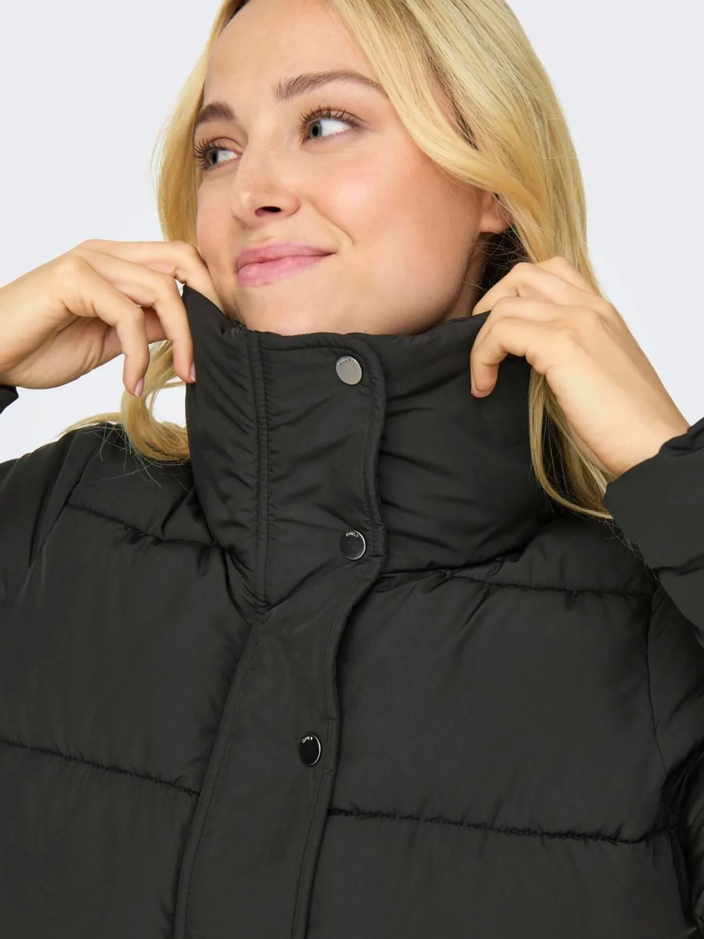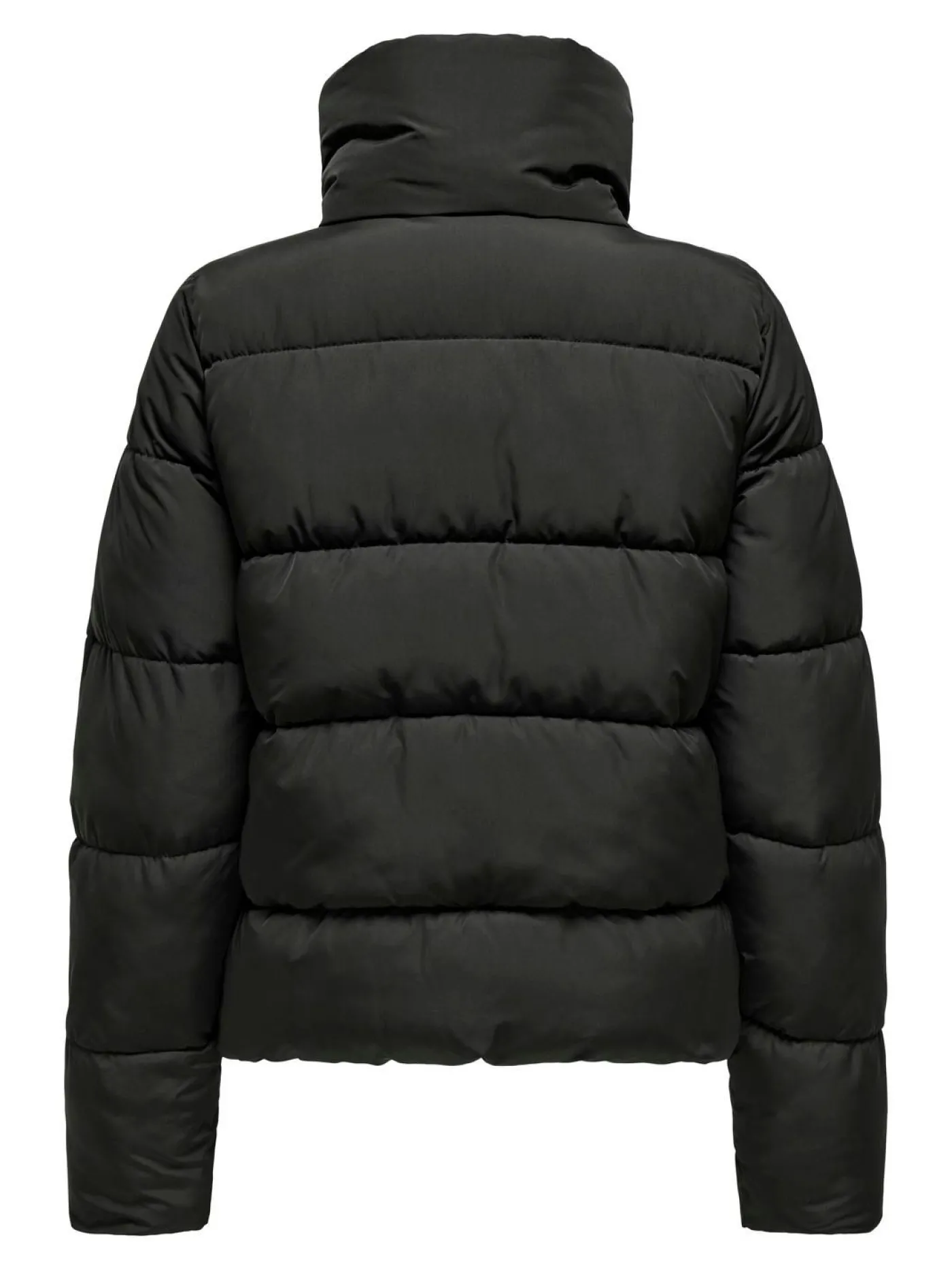 Opzoek naar een basic zwarte winterjas? dan is dit wat voor jou! Zwarte jas van het merk only. Deze jas heeft een pufferstructuur en sluit zich met knoop en rits sluiting. De jas heeft twee zakken.