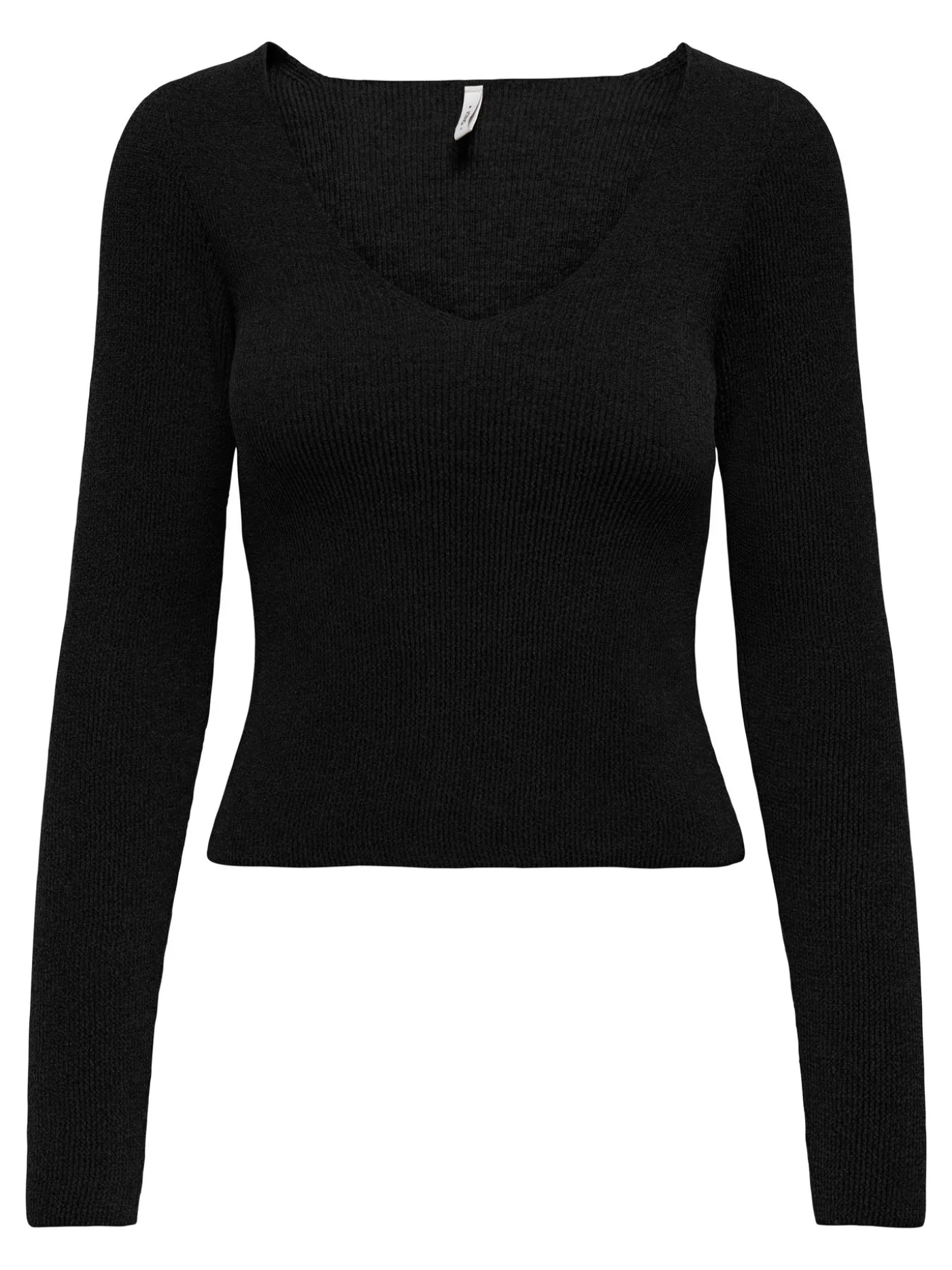 Zwarte glittertrui van de Only. Deze trui geeft een feestelijke uitstraling dus perfect voor de feestdagen. De trui heeft een rekbare stof met glitters. Combineer dit met een pantalon voor een casual fit.