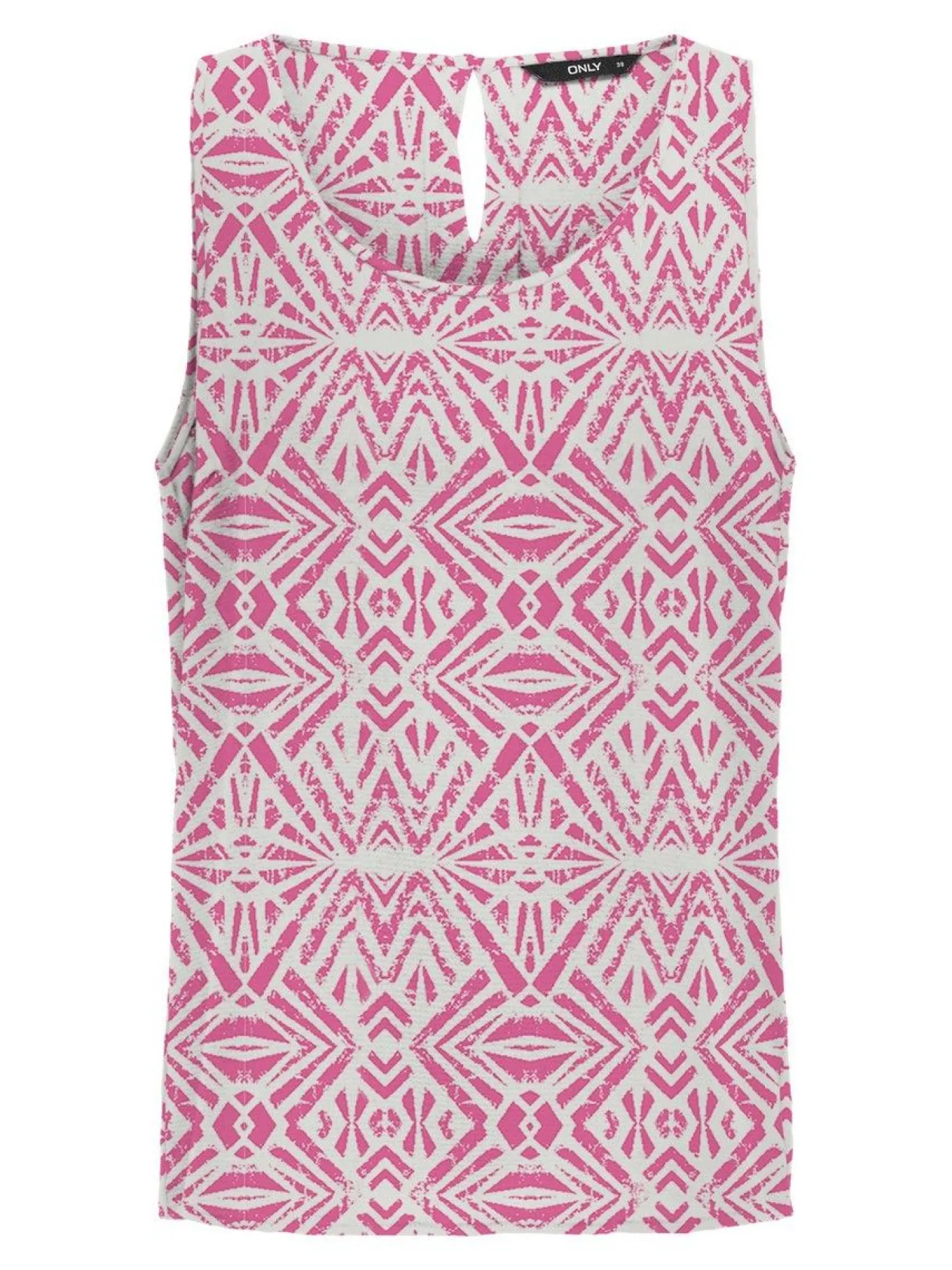 Los vallende roze top met all over print van Only. Dit item heeft een ronde hals en in de nek een knoopje. Deze zomerse top is eindeloos te combineren met bijvoorbeeld een straight jeans of een jeans short.