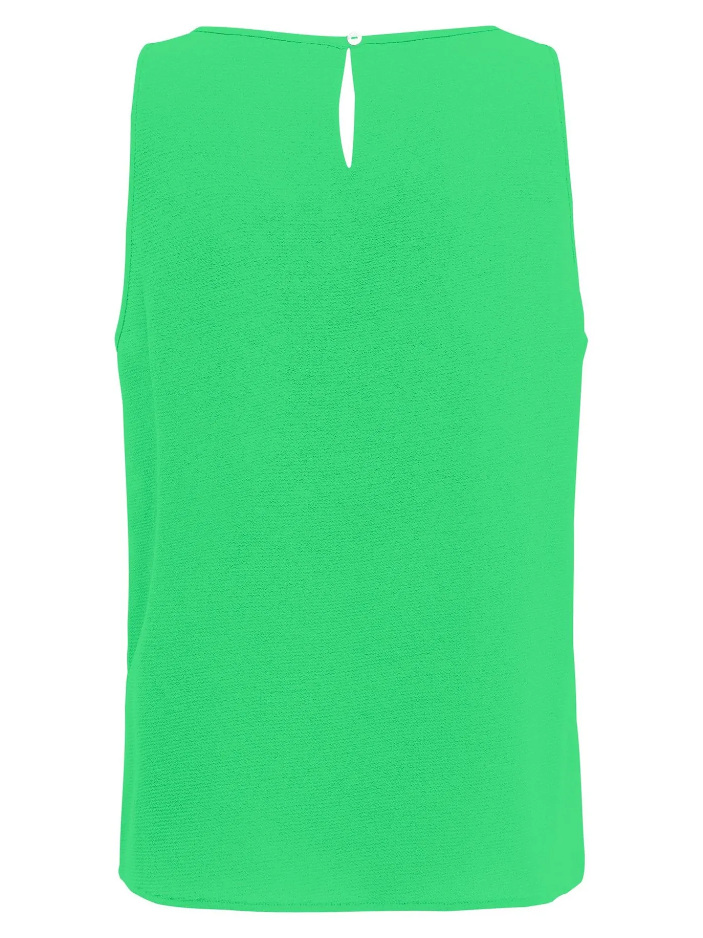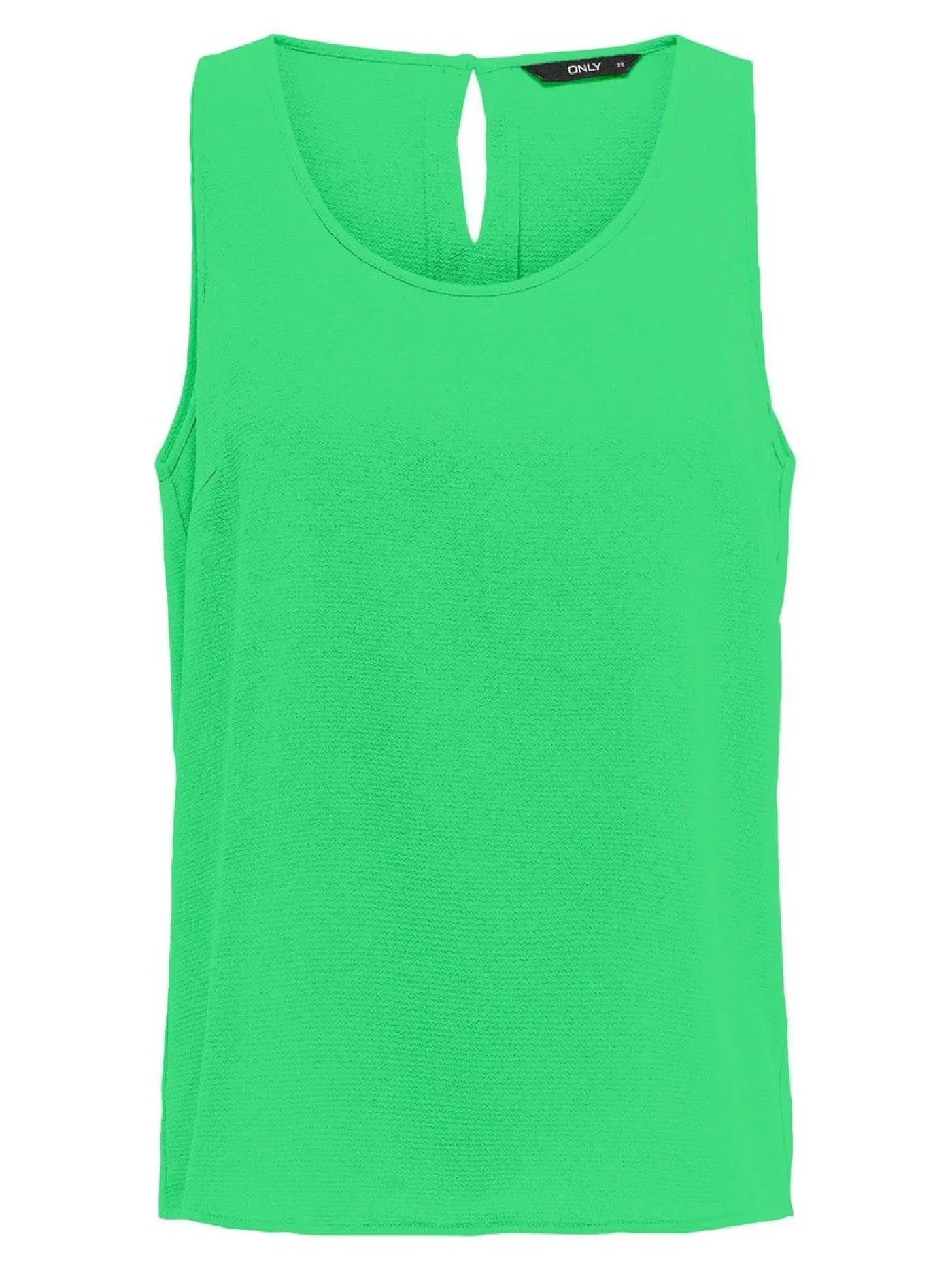 Groene los vallende mouwloze top van Only. Dit item heeft een ronde hals en in de nek een knoopje. Deze zomerse top is eindeloos te combineren met bijvoorbeeld een straight jeans of een jeans short.
