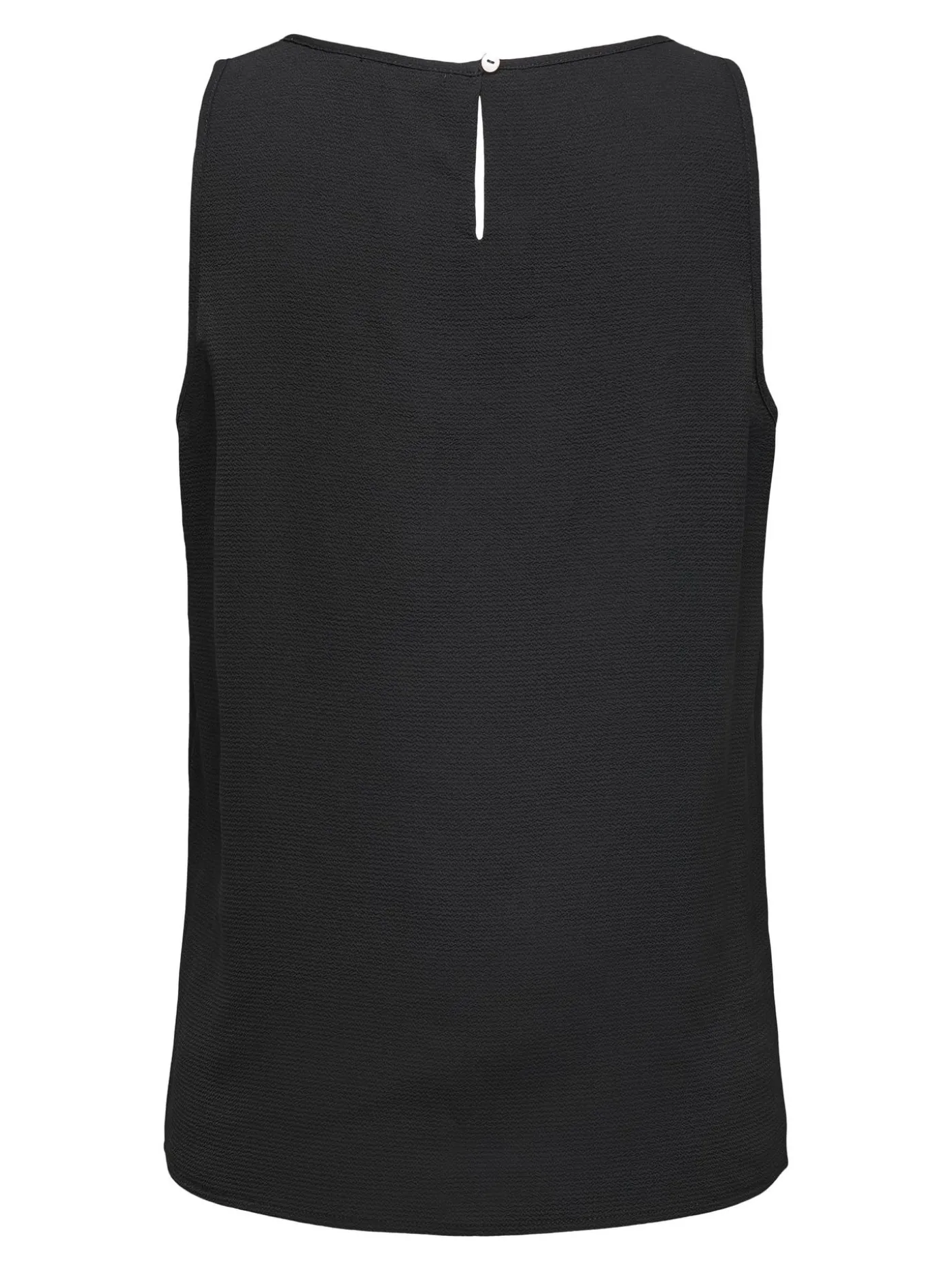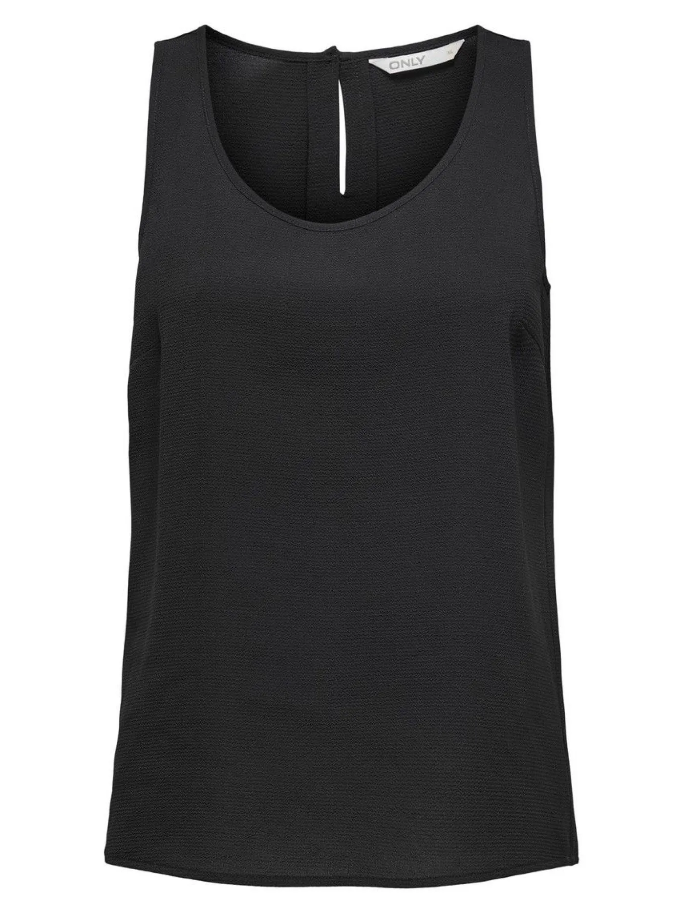 Zwarte los vallende mouwloze top van Only. Dit item heeft een ronde hals en in de nek een knoopje. Deze zomerse top is eindeloos te combineren met bijvoorbeeld een straight jeans of een jeans short.