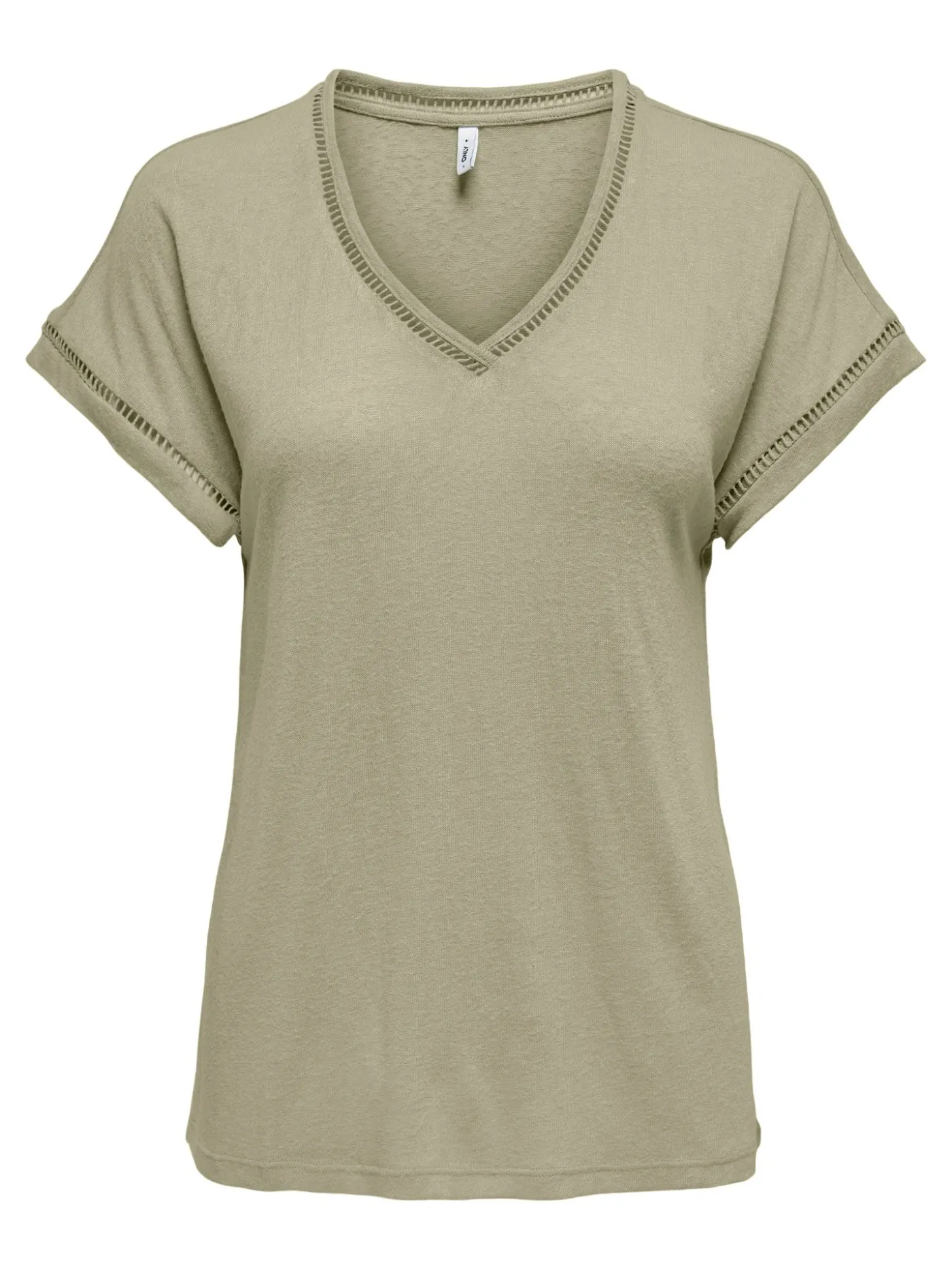 Olijfgroene top van het merk Only. Dit item heeft open gehaakte randjes en is voorzien van korte mouwen en een v-halsje. De top draagt heerlijk luchtig en is dus een echte zomer musthave!